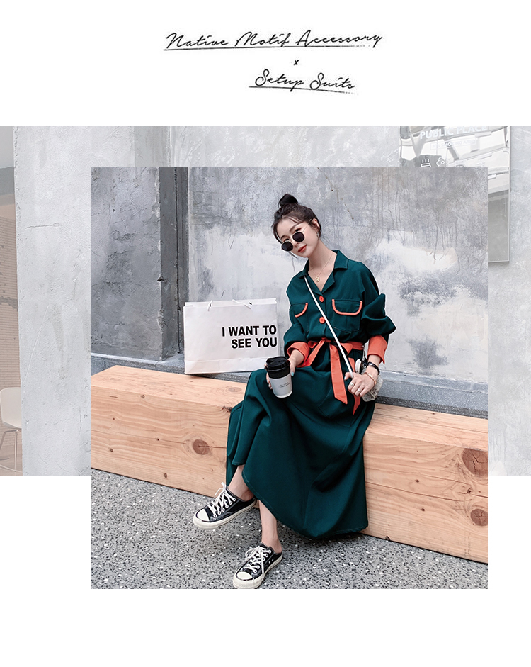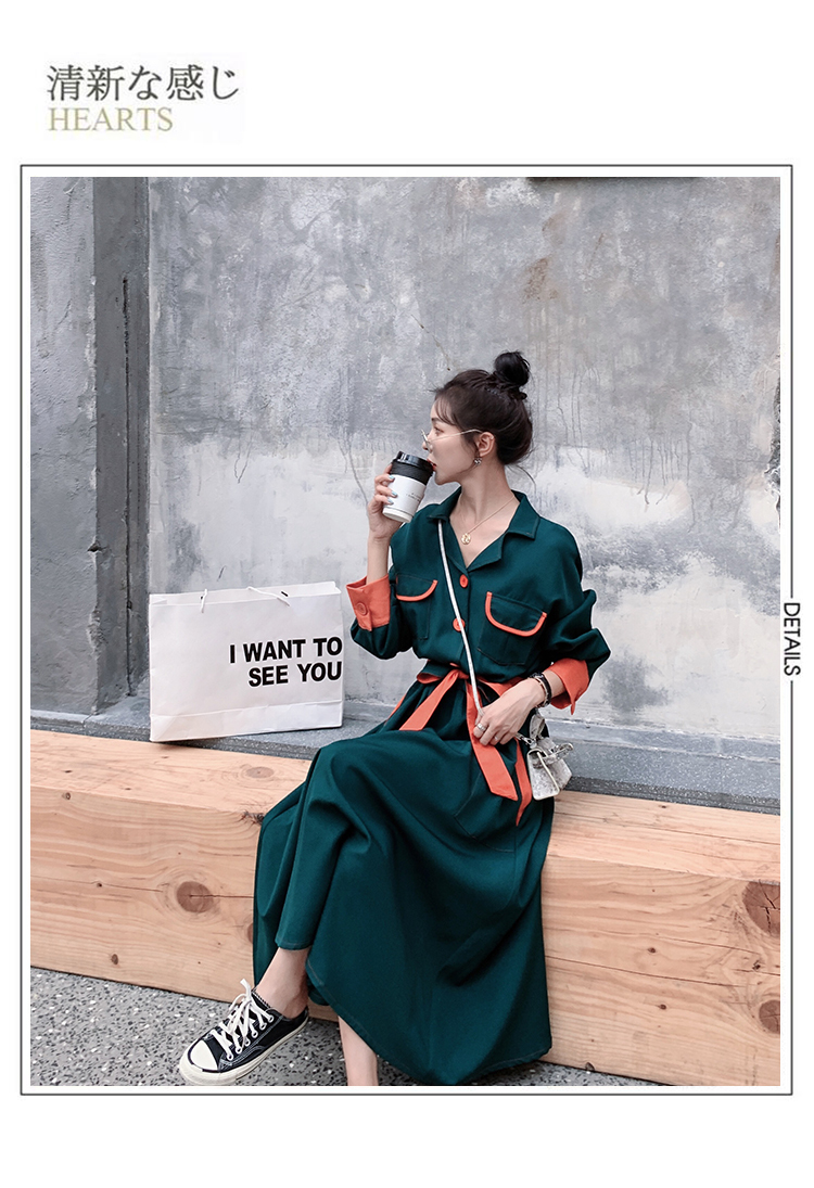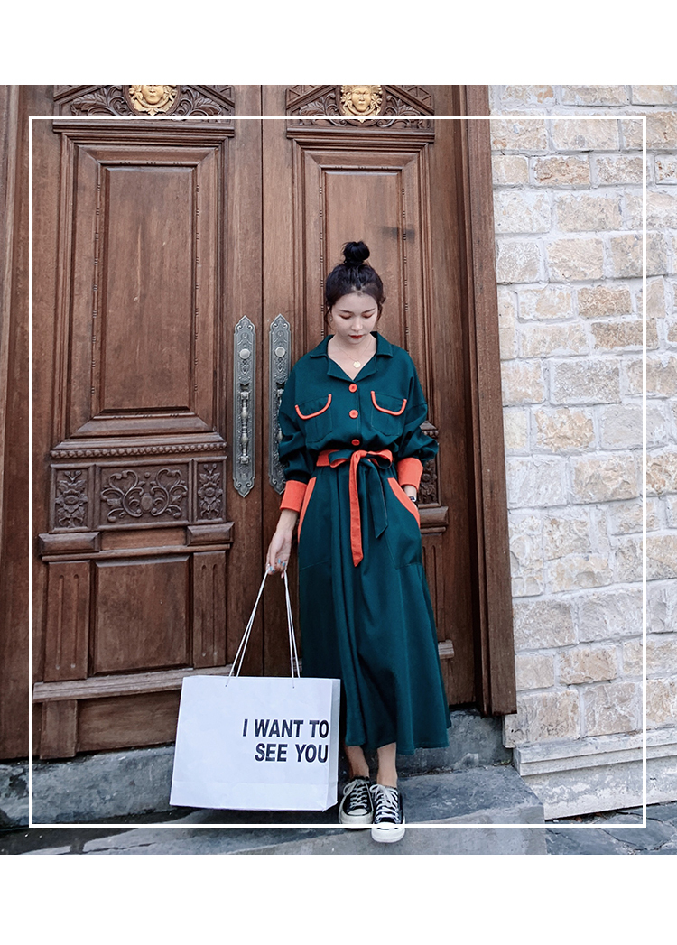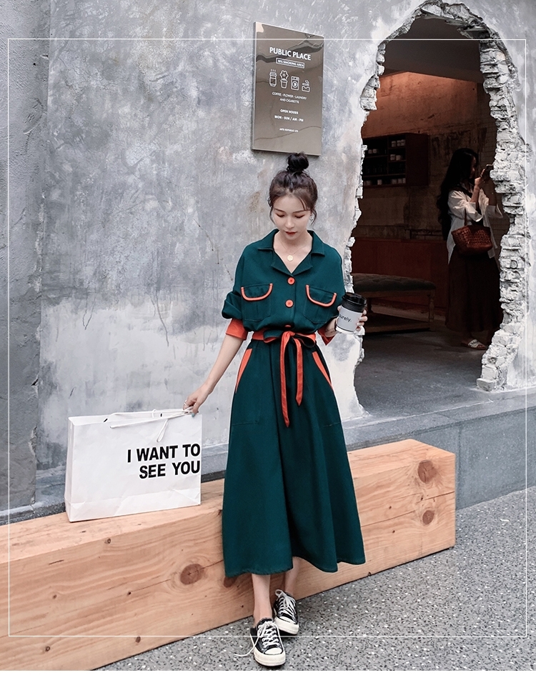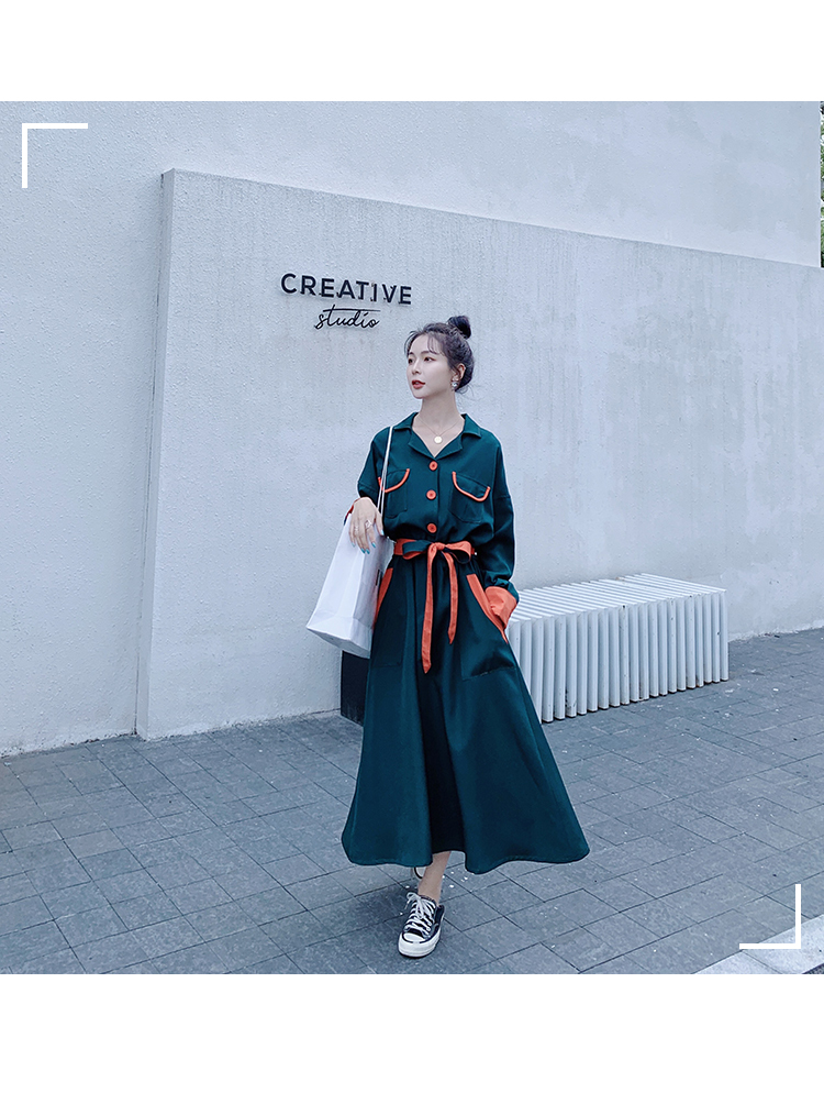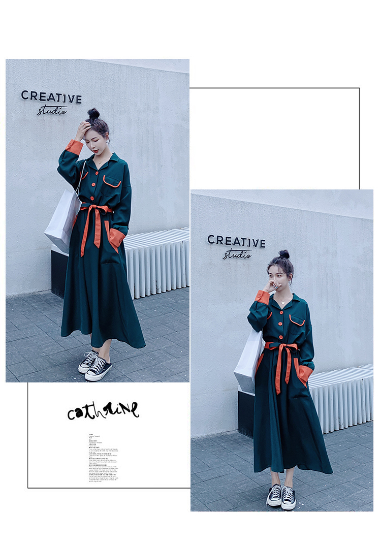 獨家訂製│韓系氣質感撞色收腰繫帶雪紡連衣裙(01H5554)