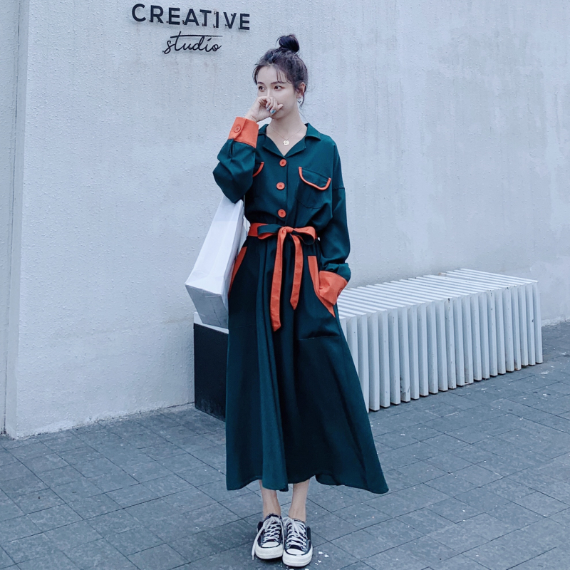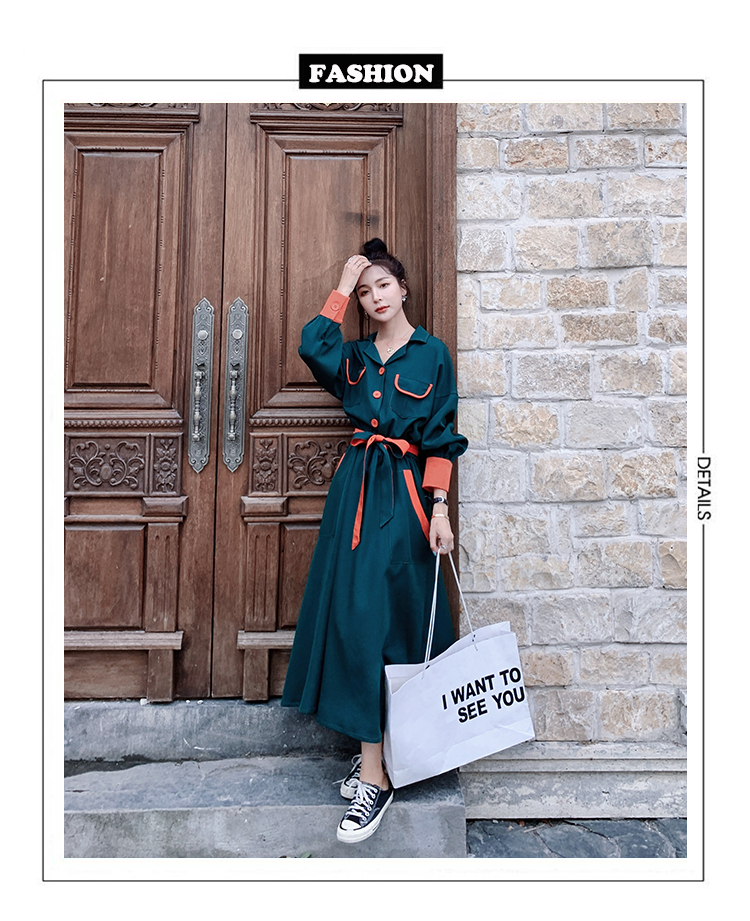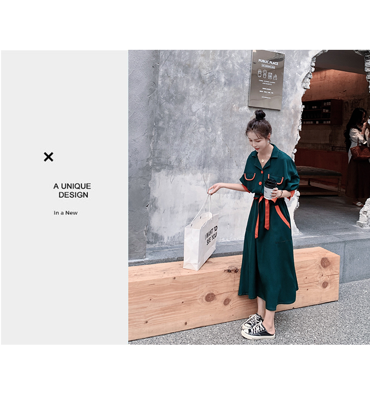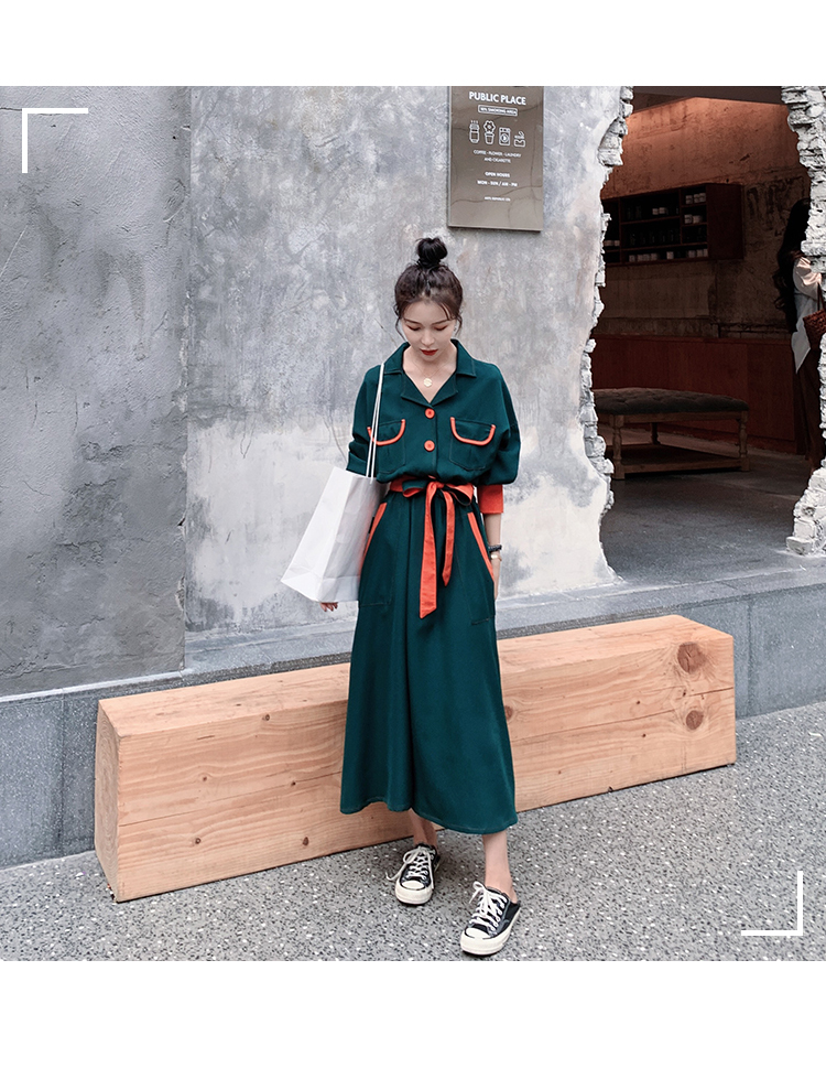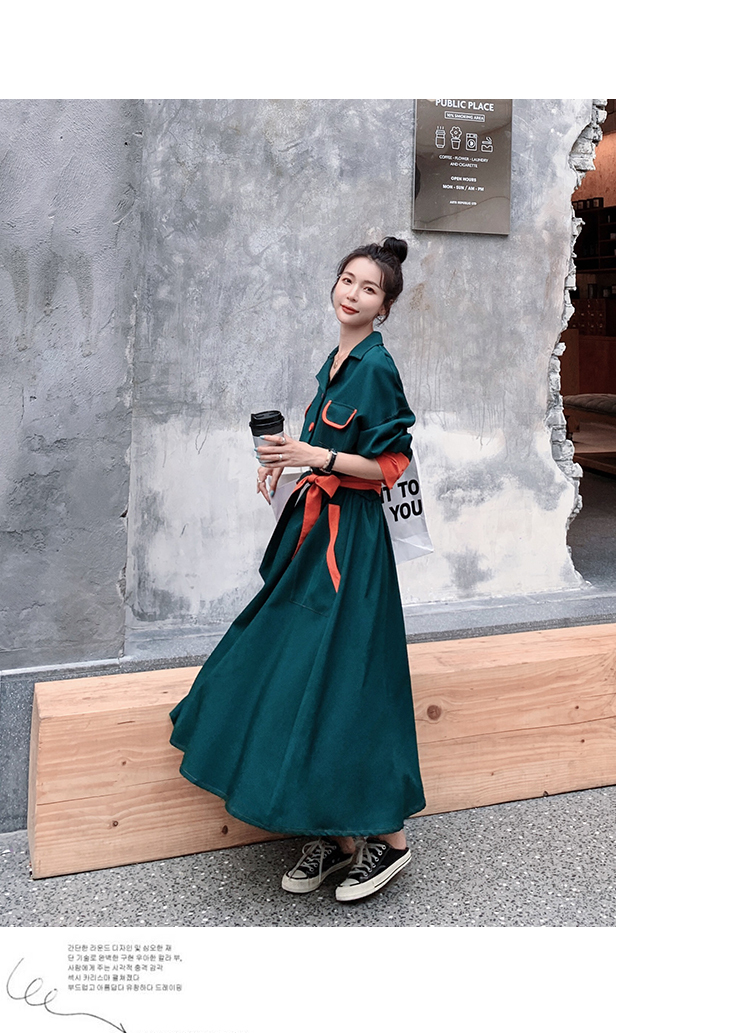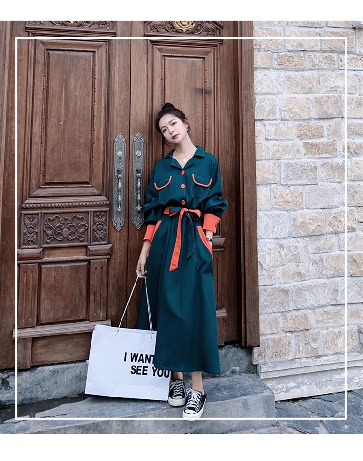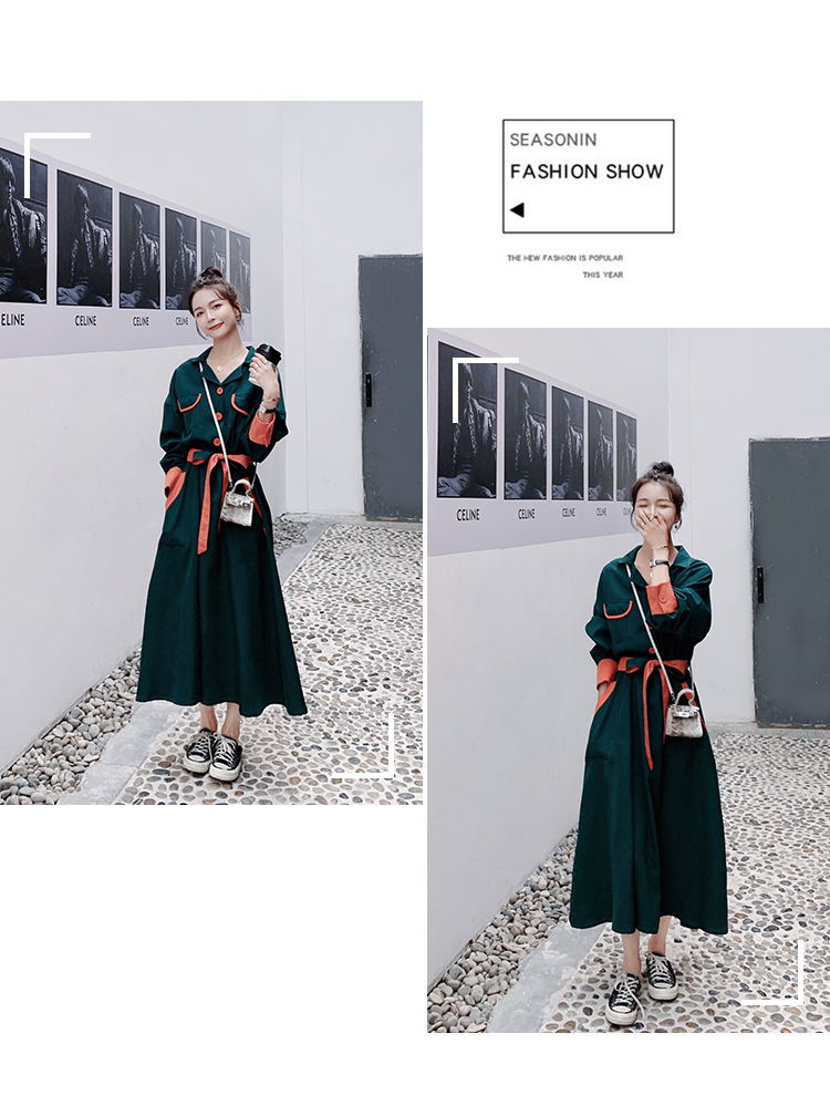 獨家訂製│韓系氣質感撞色收腰繫帶雪紡連衣裙(01H5554)