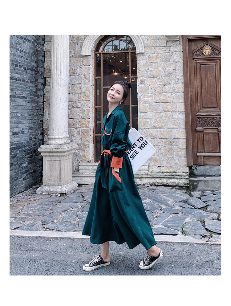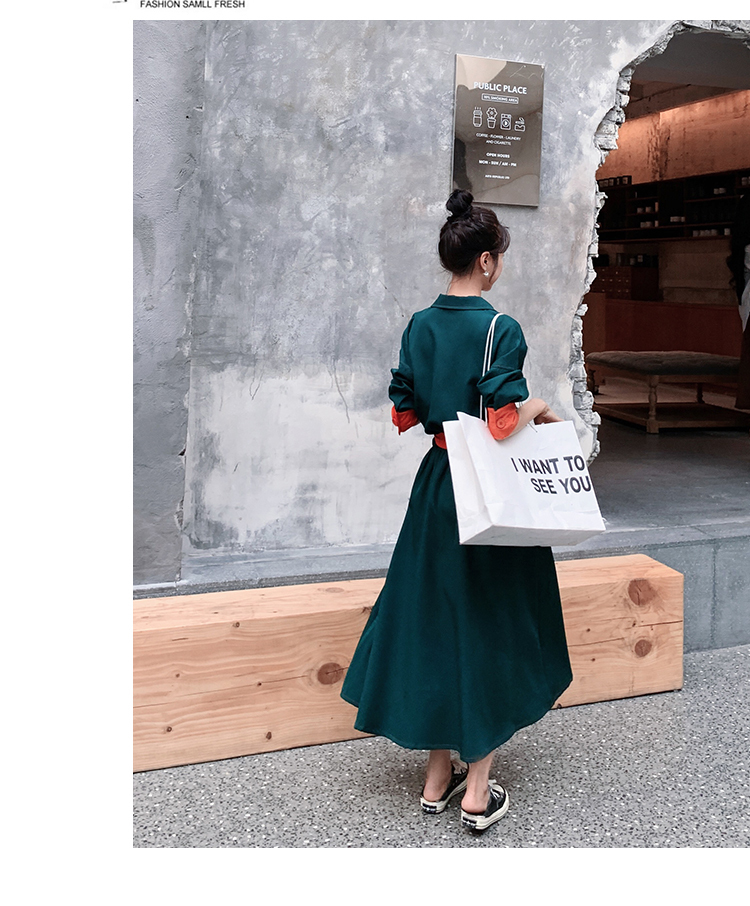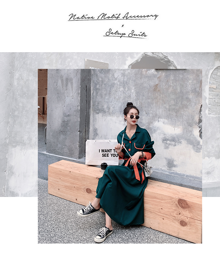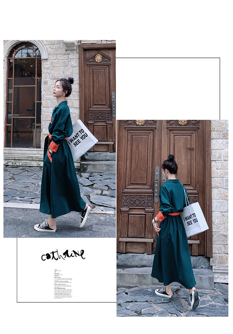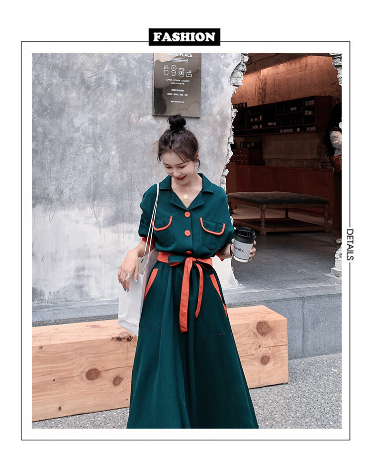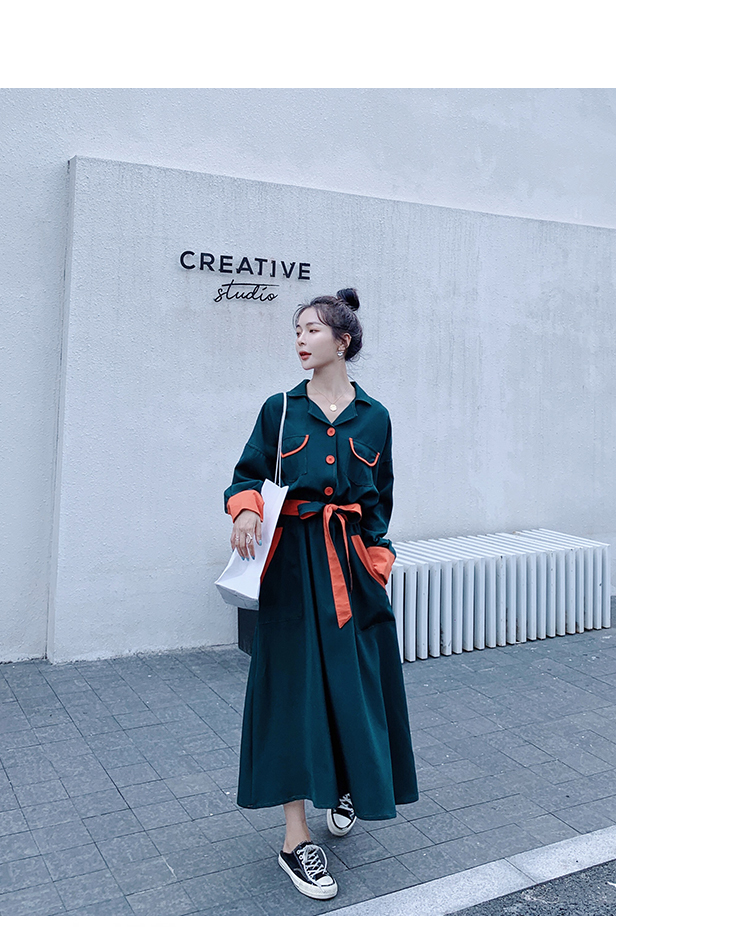 獨家訂製│韓系氣質感撞色收腰繫帶雪紡連衣裙(01H5554)