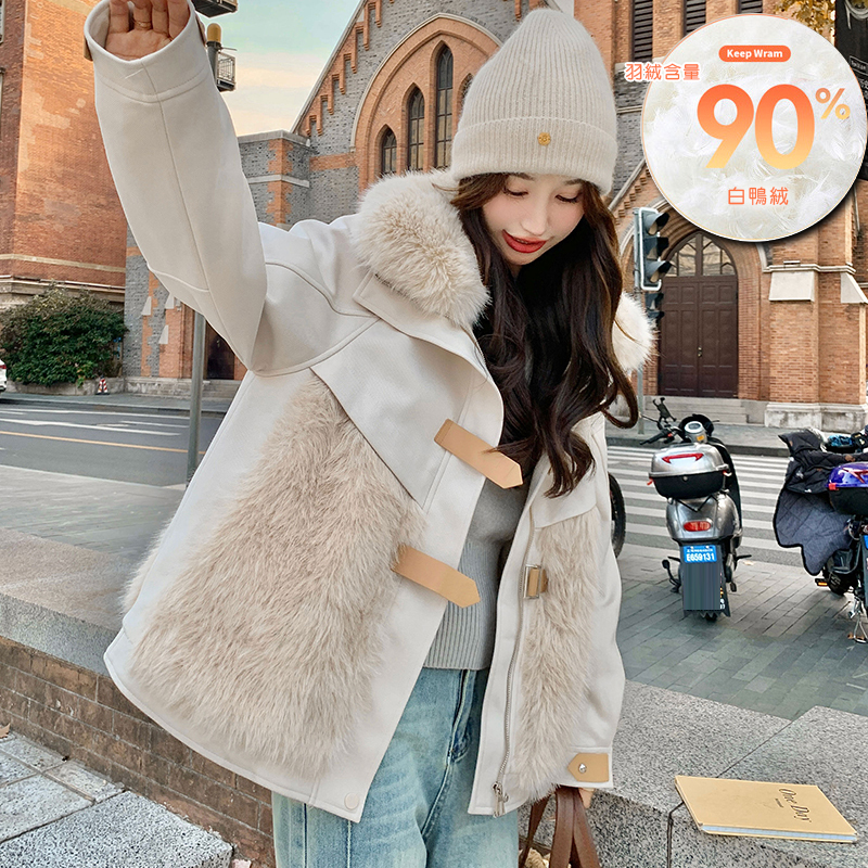 🔺面料:外層滌綸+仿貉子毛+內層填充:90%白鴨絨+仿貉子毛領(可拆)