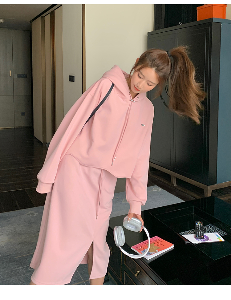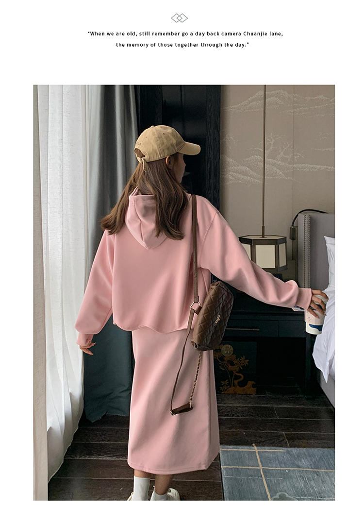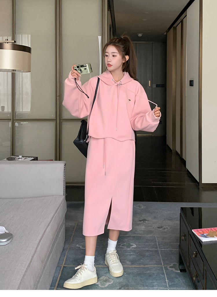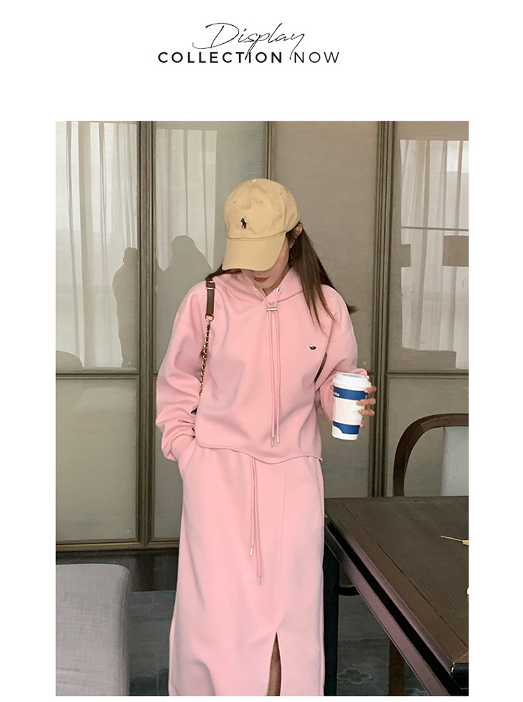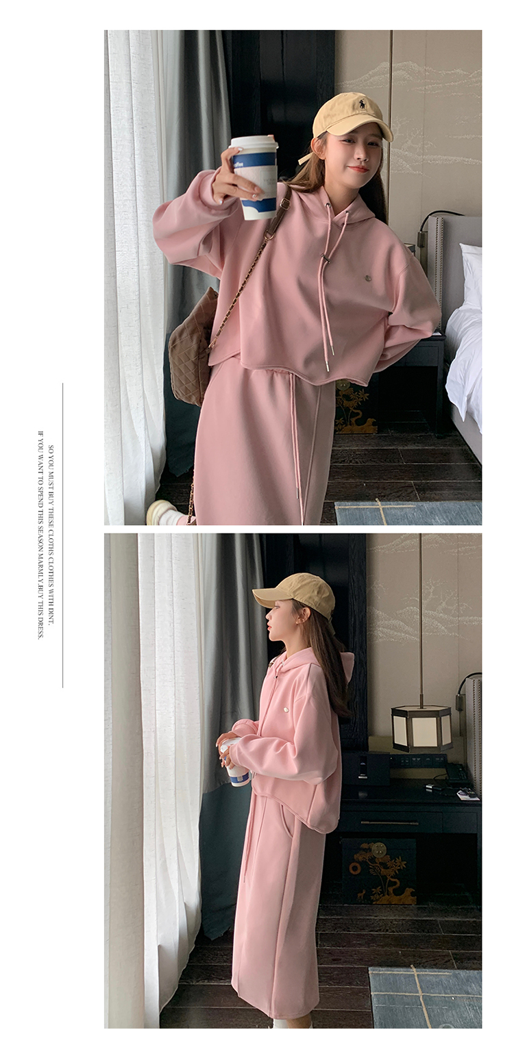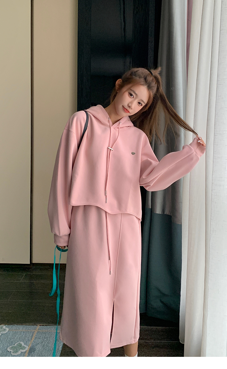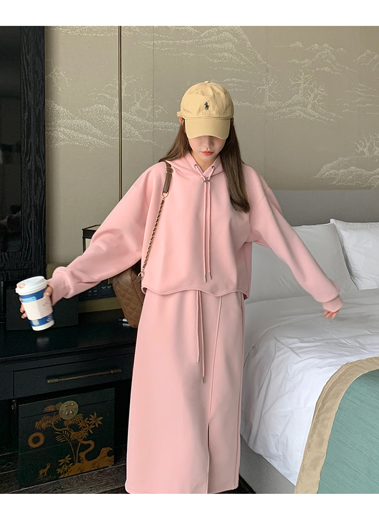 獨家訂製│韓系慵懶感連帽T恤+開叉A字裙兩件式套裝組-2色(01H5627)