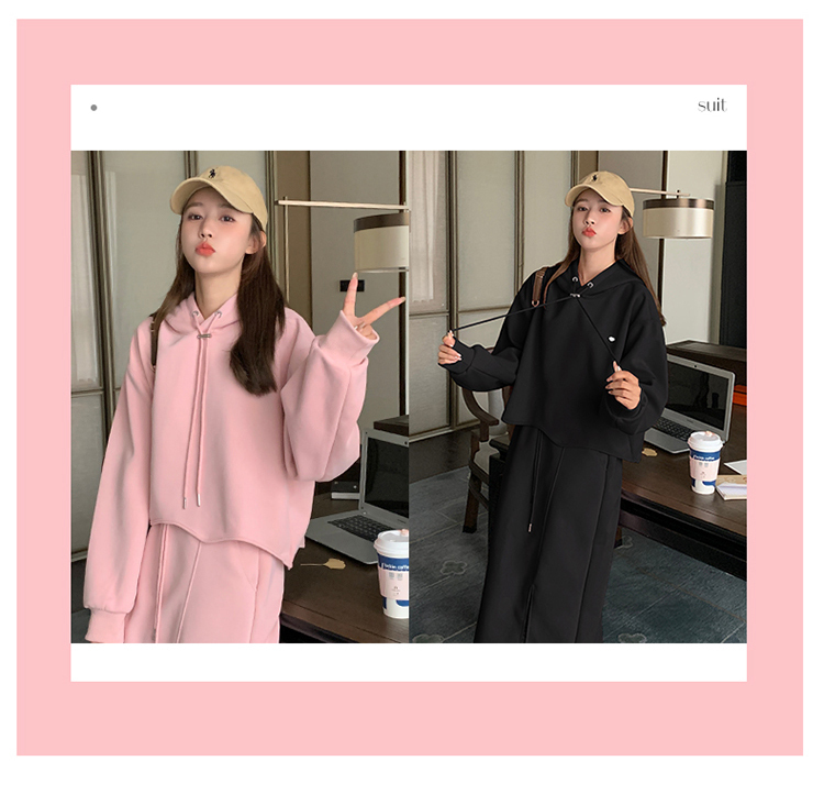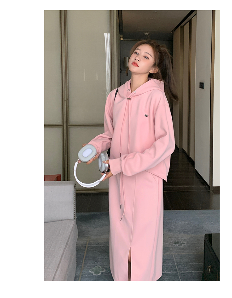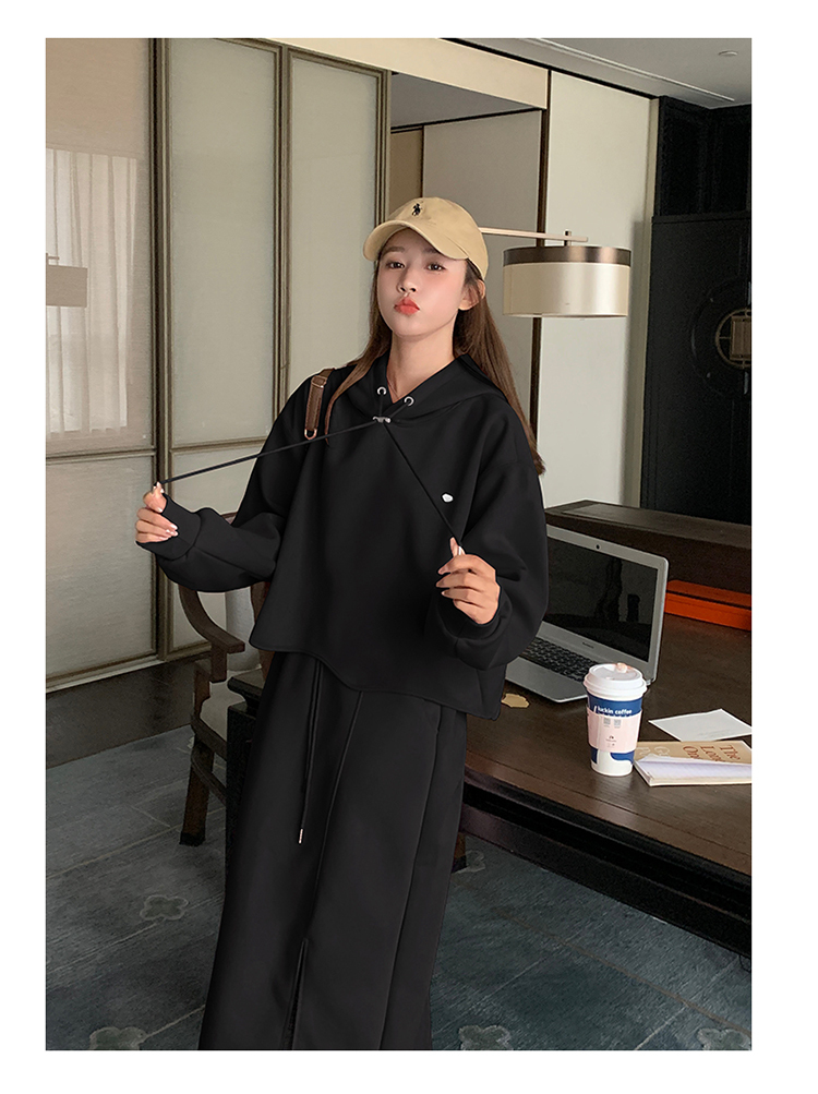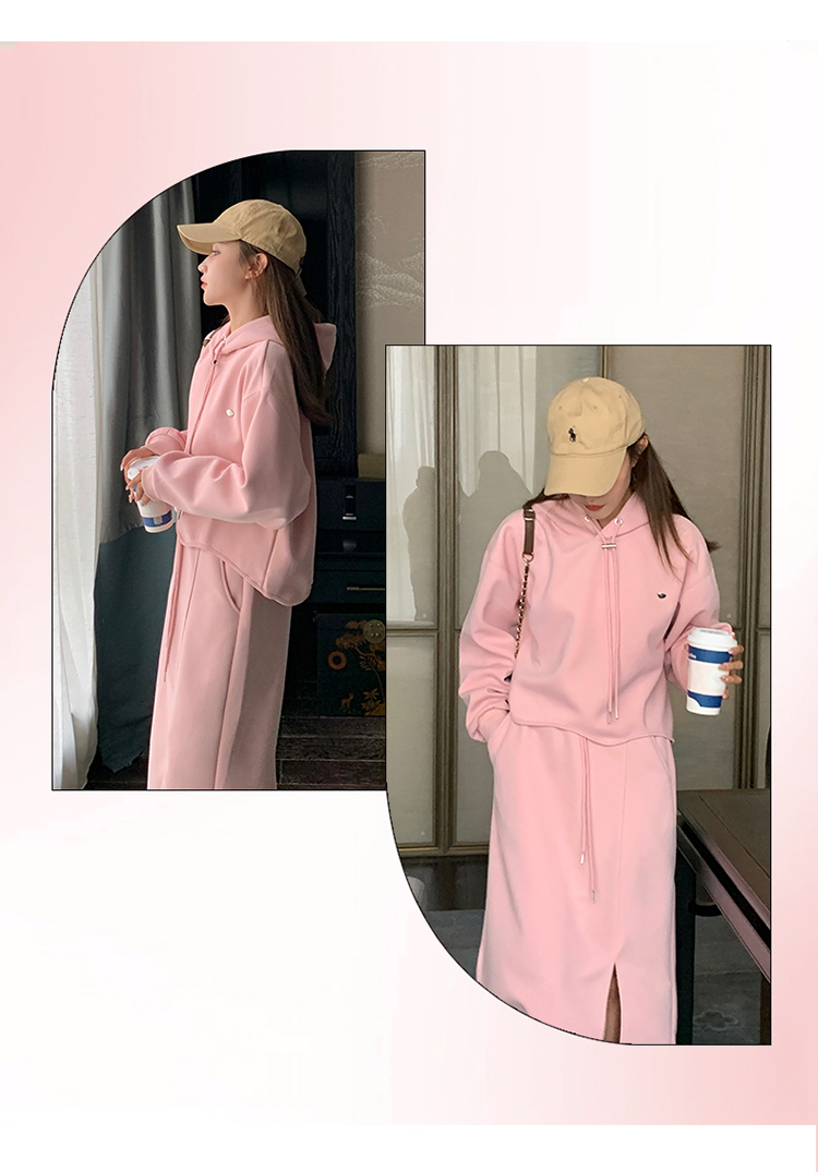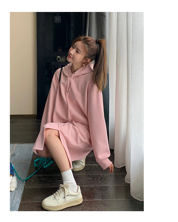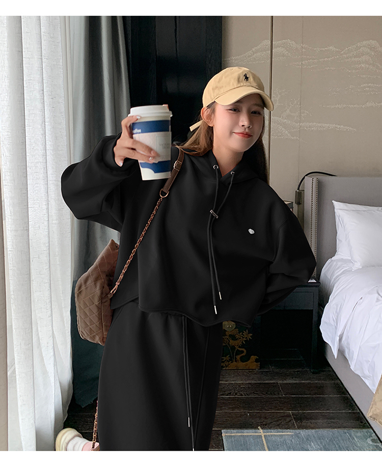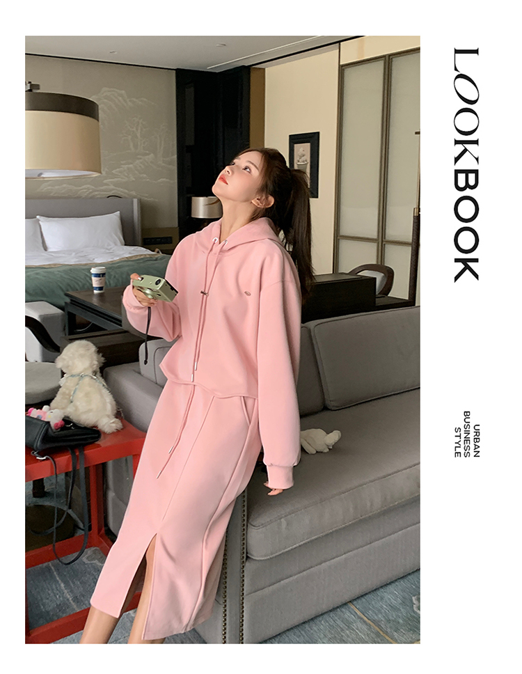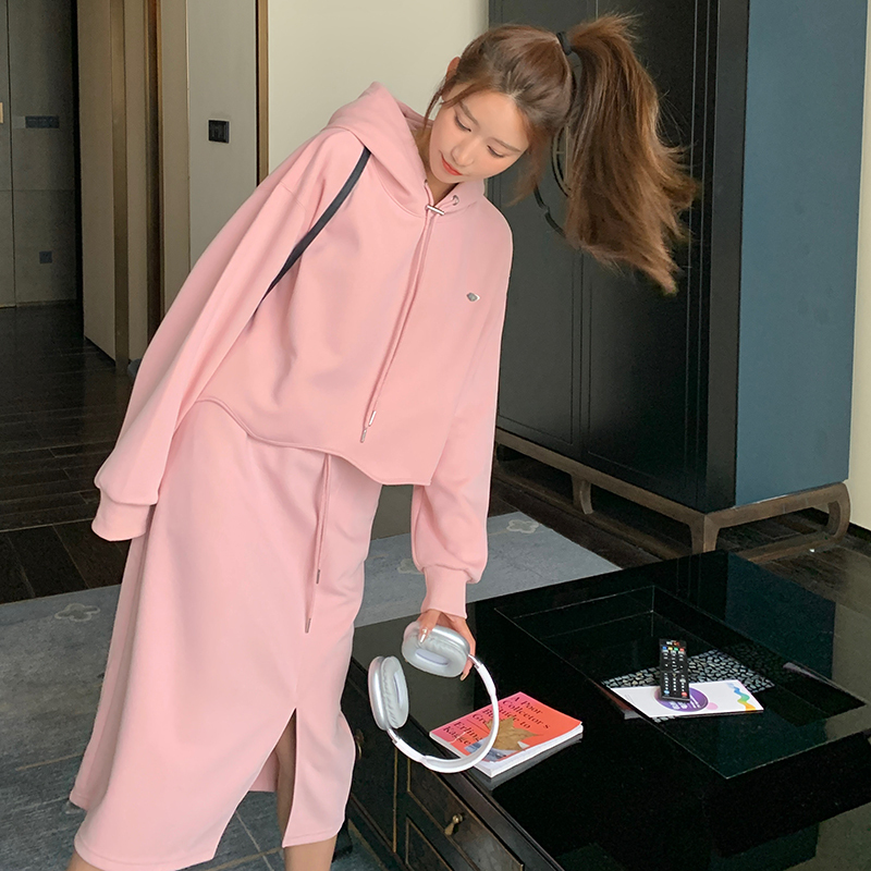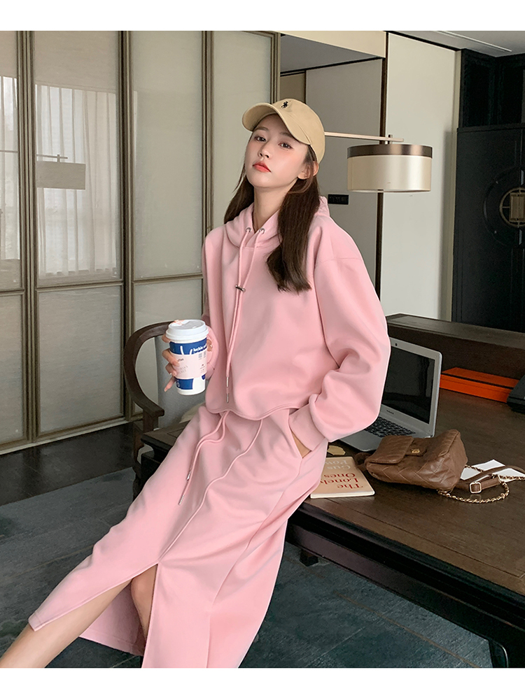 獨家訂製│韓系慵懶感連帽T恤+開叉A字裙兩件式套裝組-2色(01H5627)