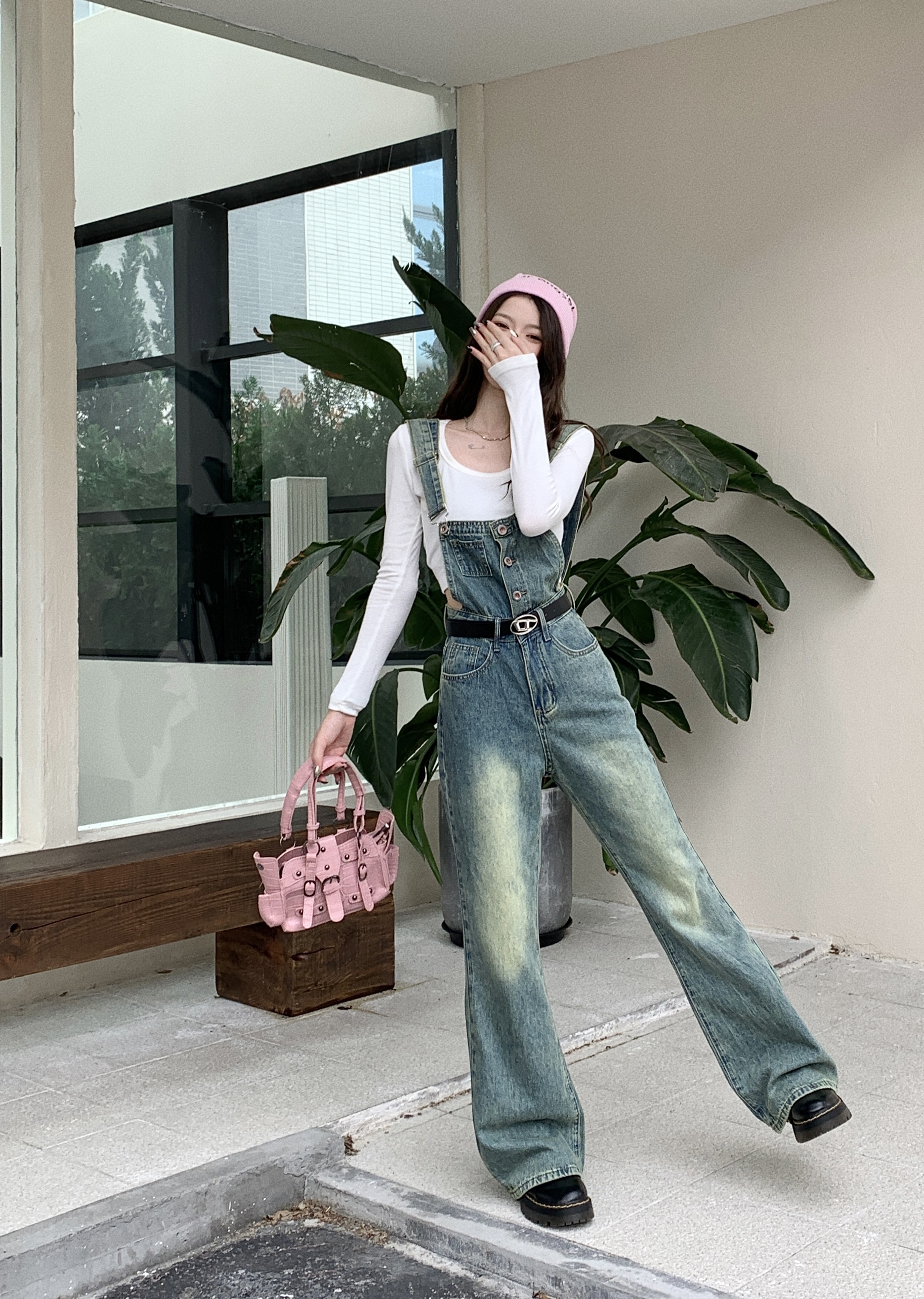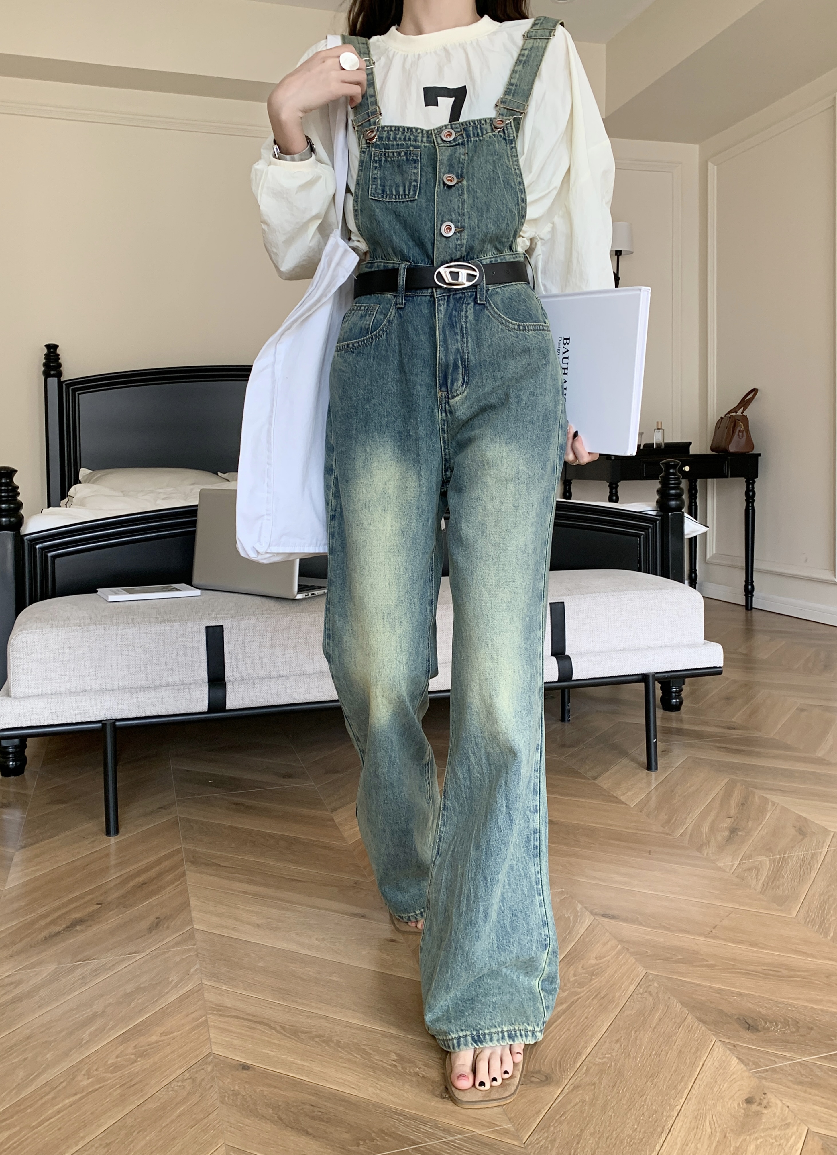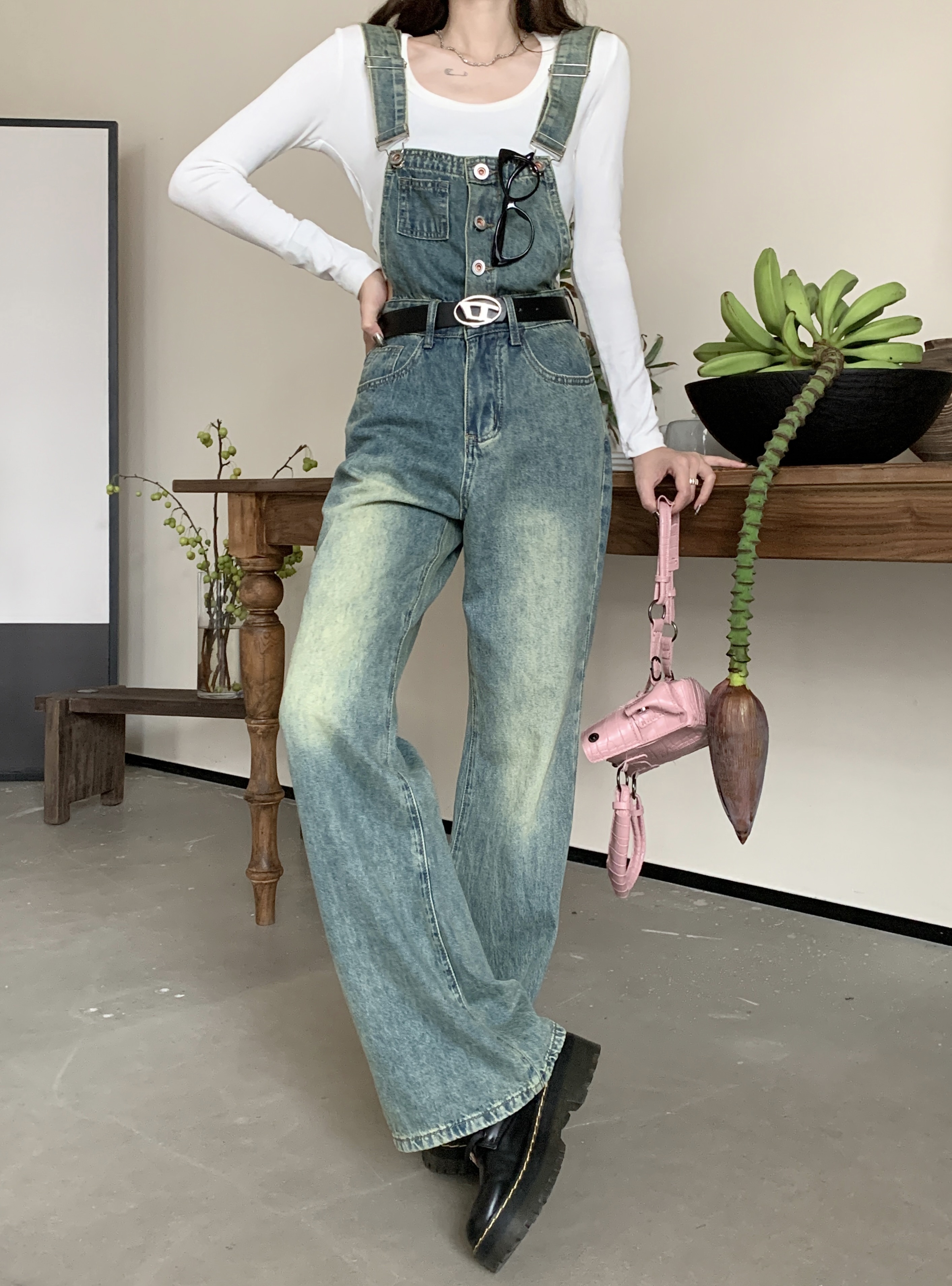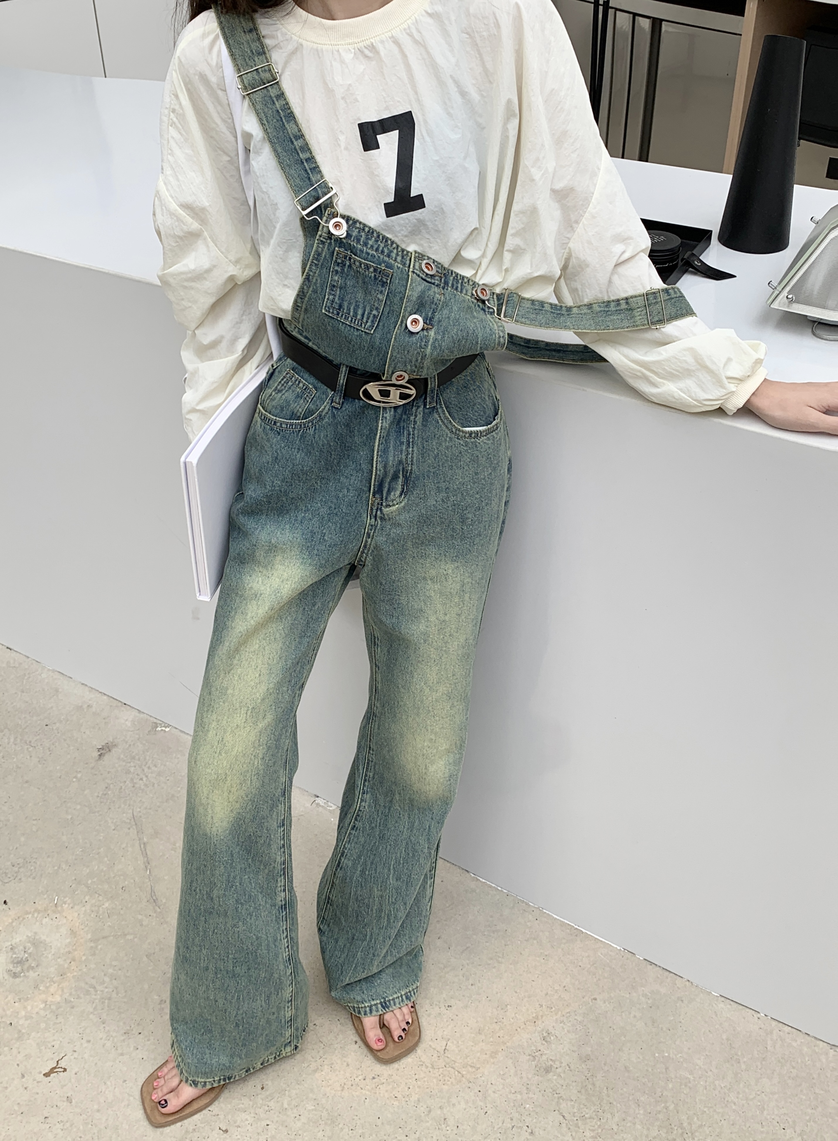 限量特惠|個性舒適水洗做舊牛仔吊帶褲(01H5784)