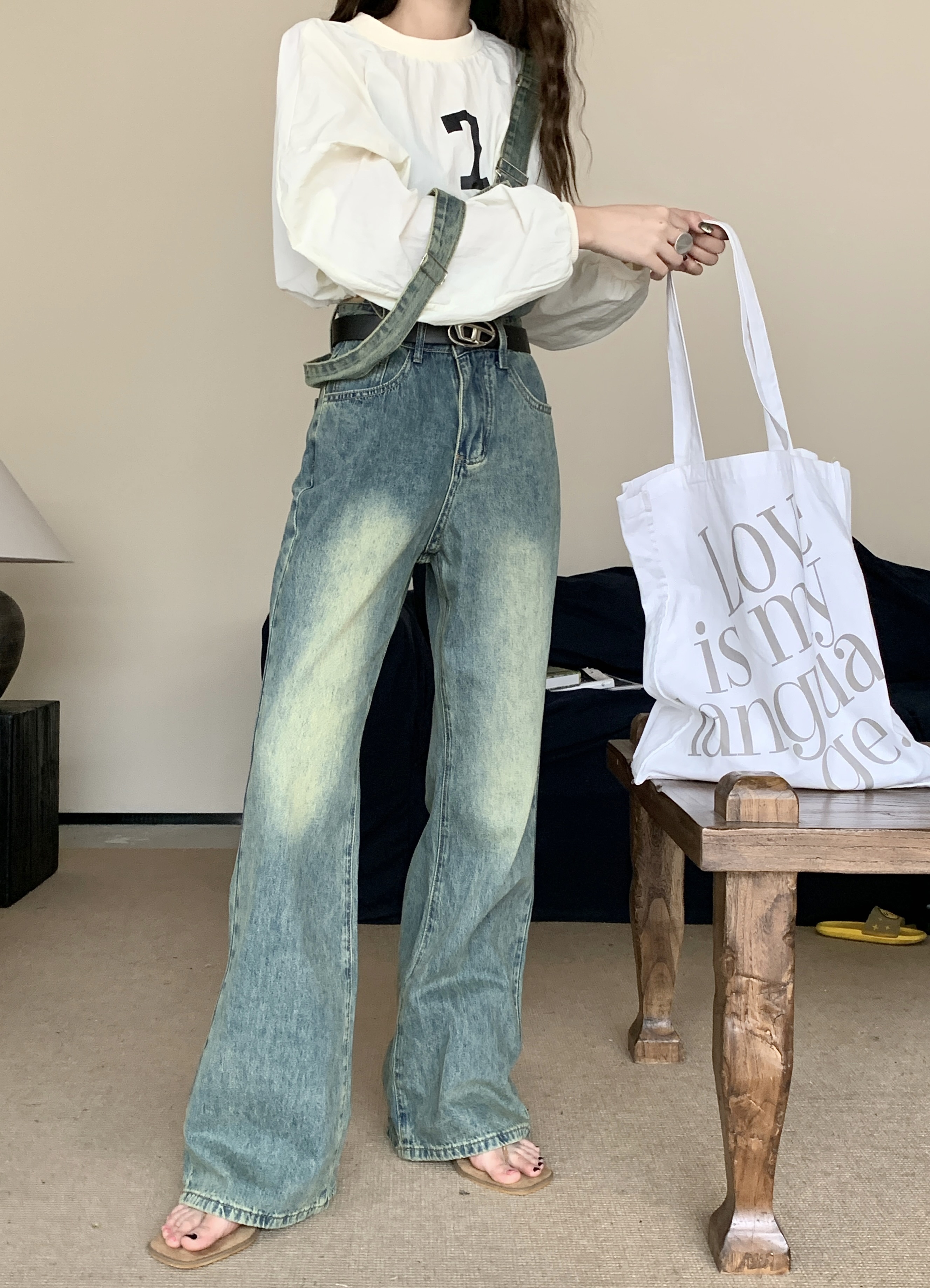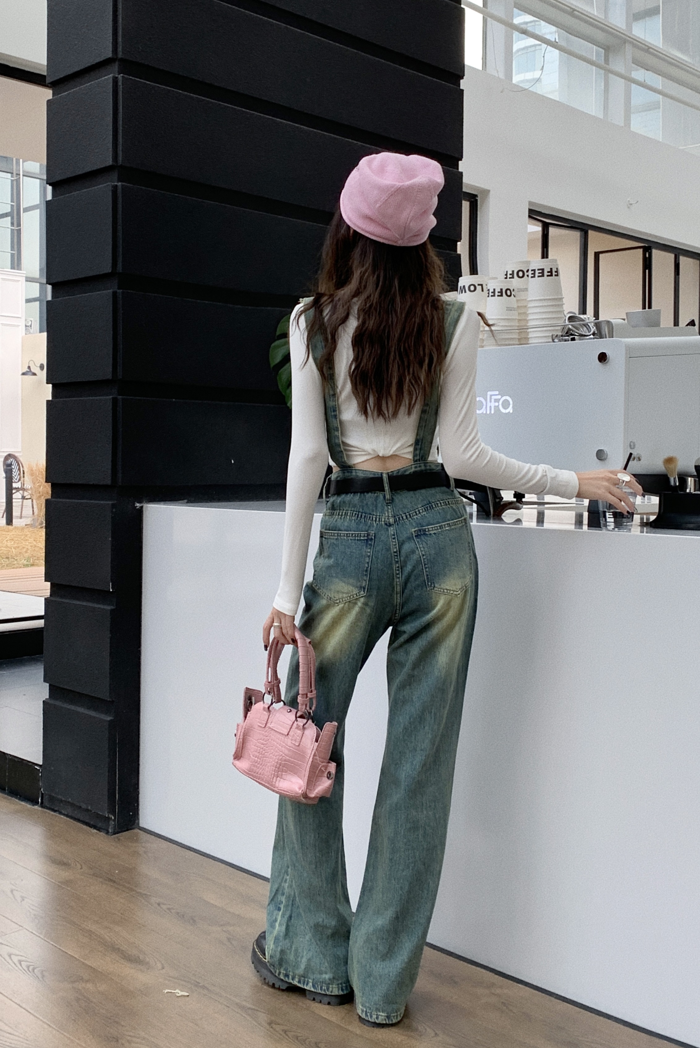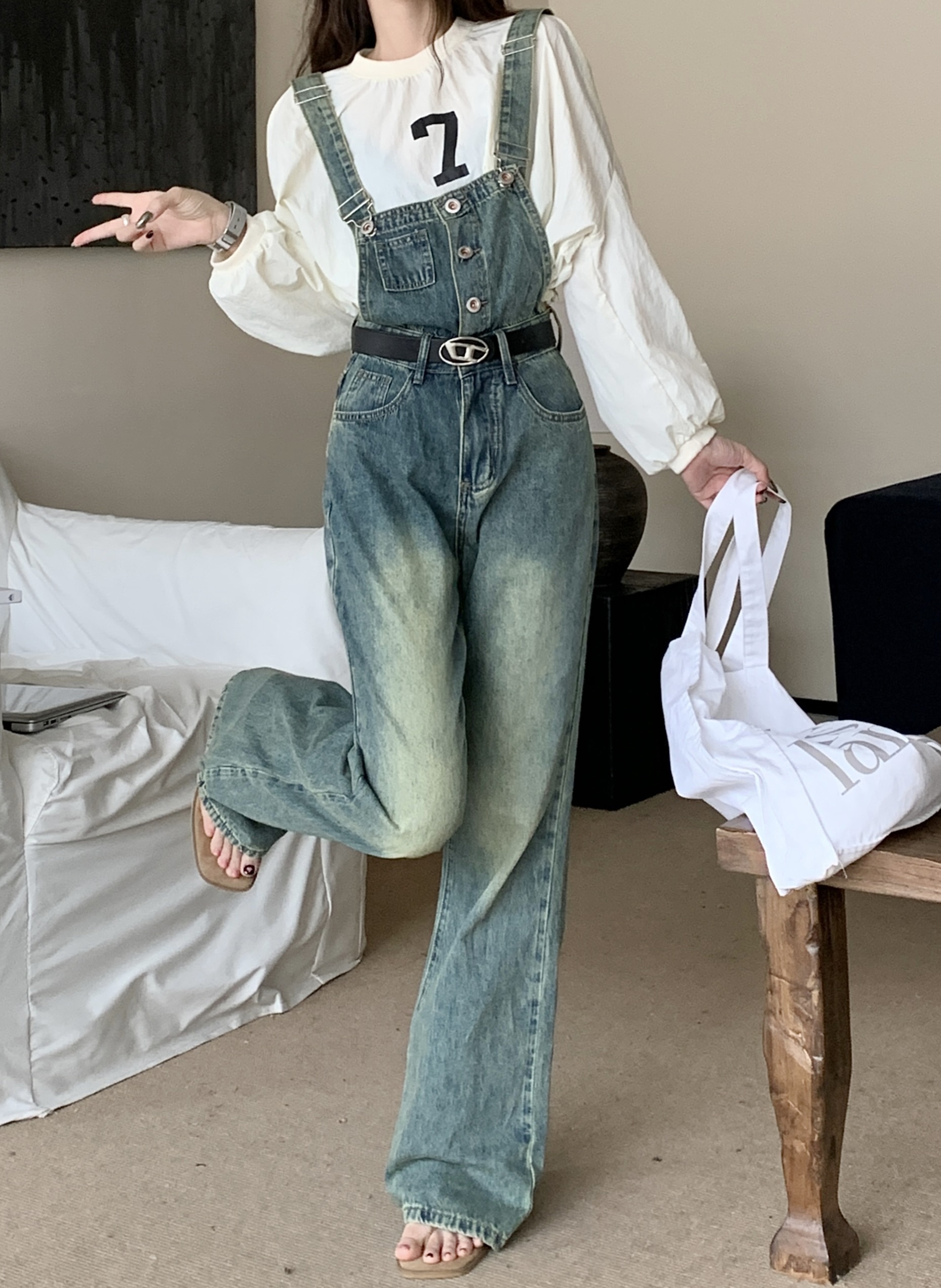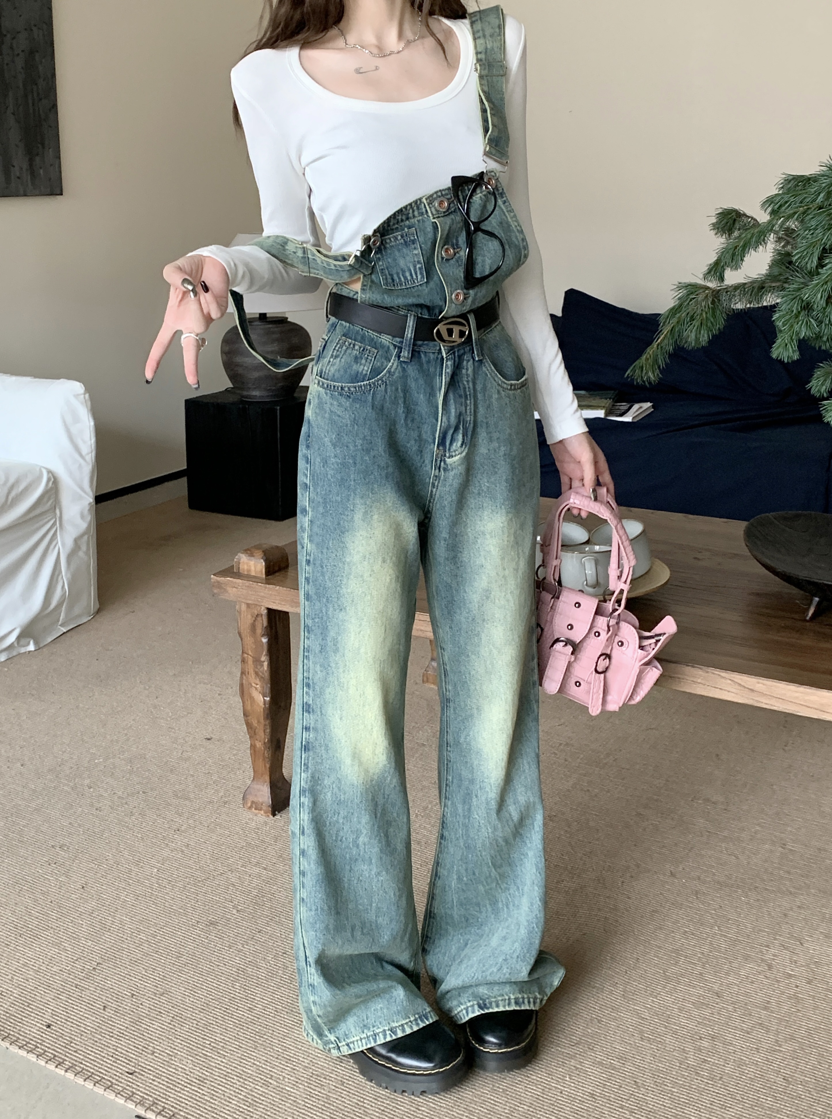 限量特惠|個性舒適水洗做舊牛仔吊帶褲(01H5784)