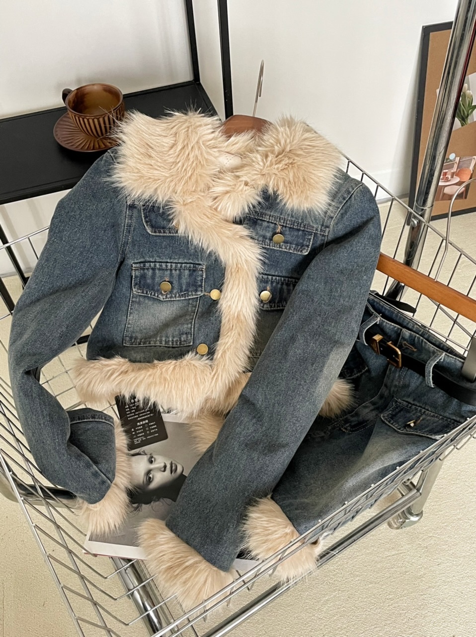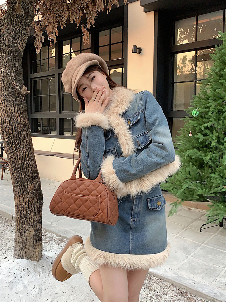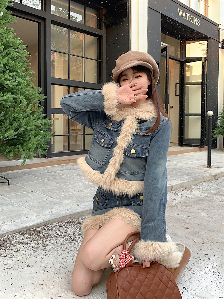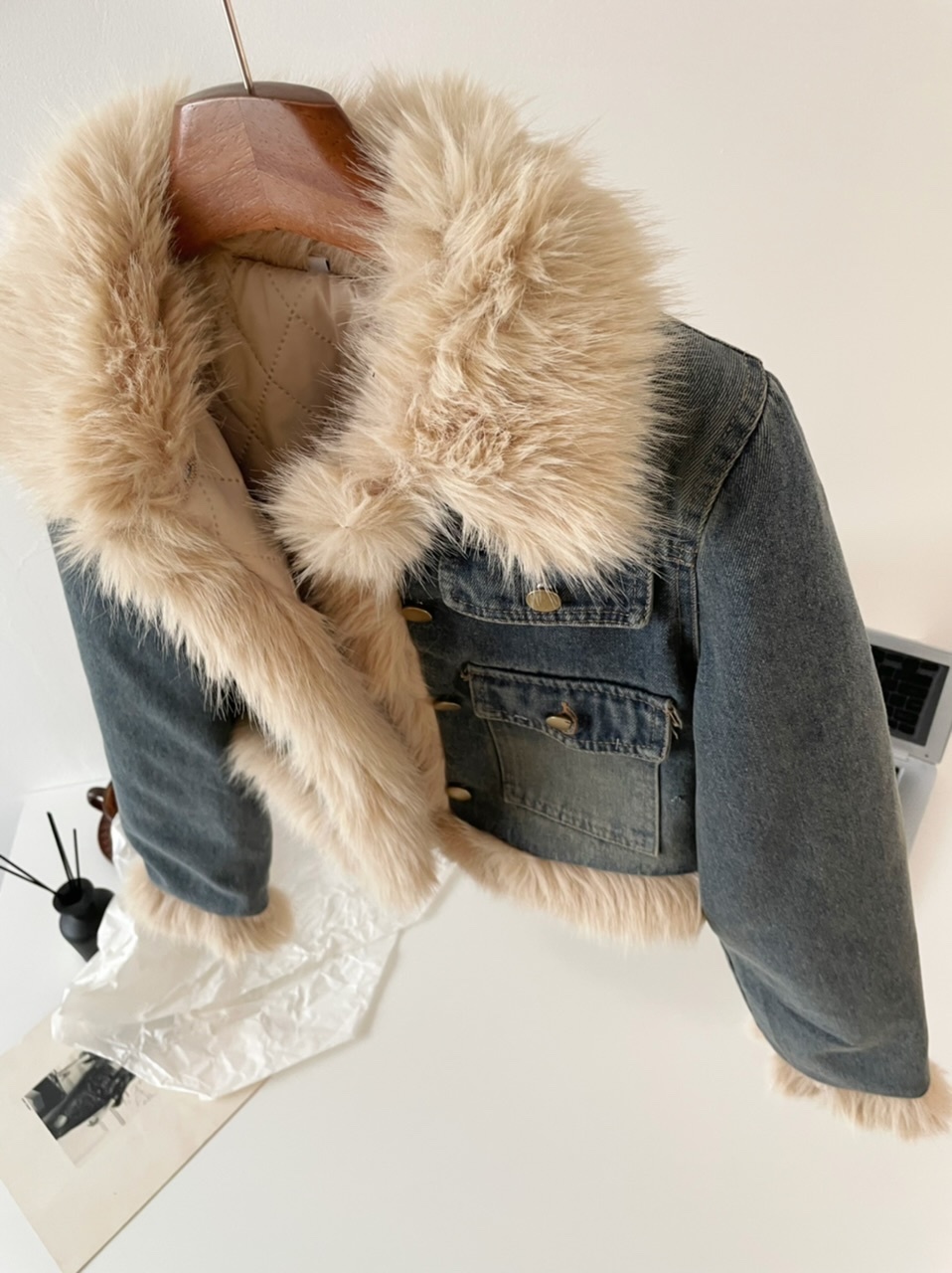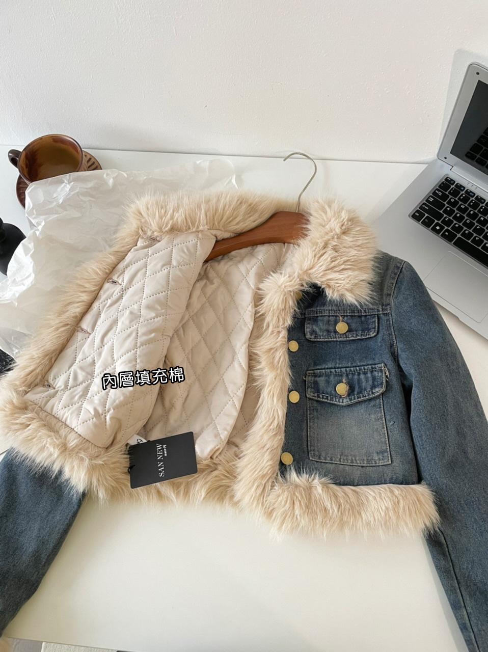 🔺面料:牛仔+仿貂絨+外套內裡填充棉