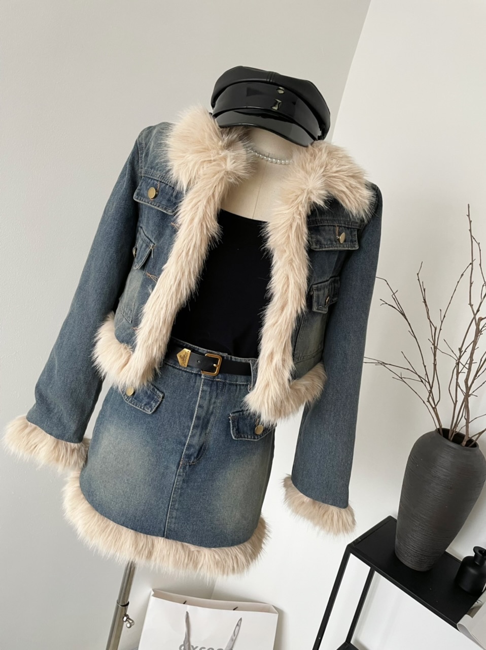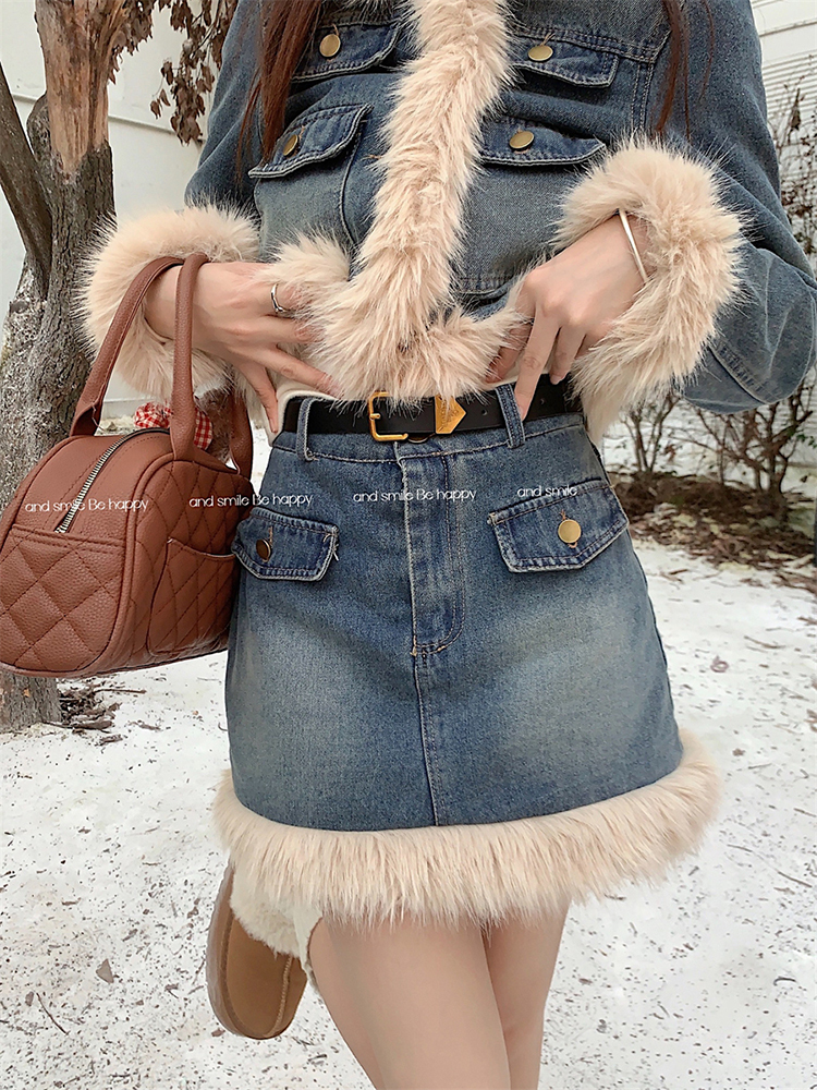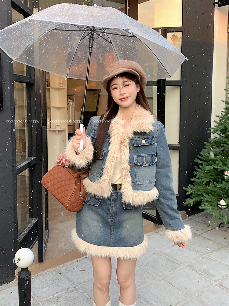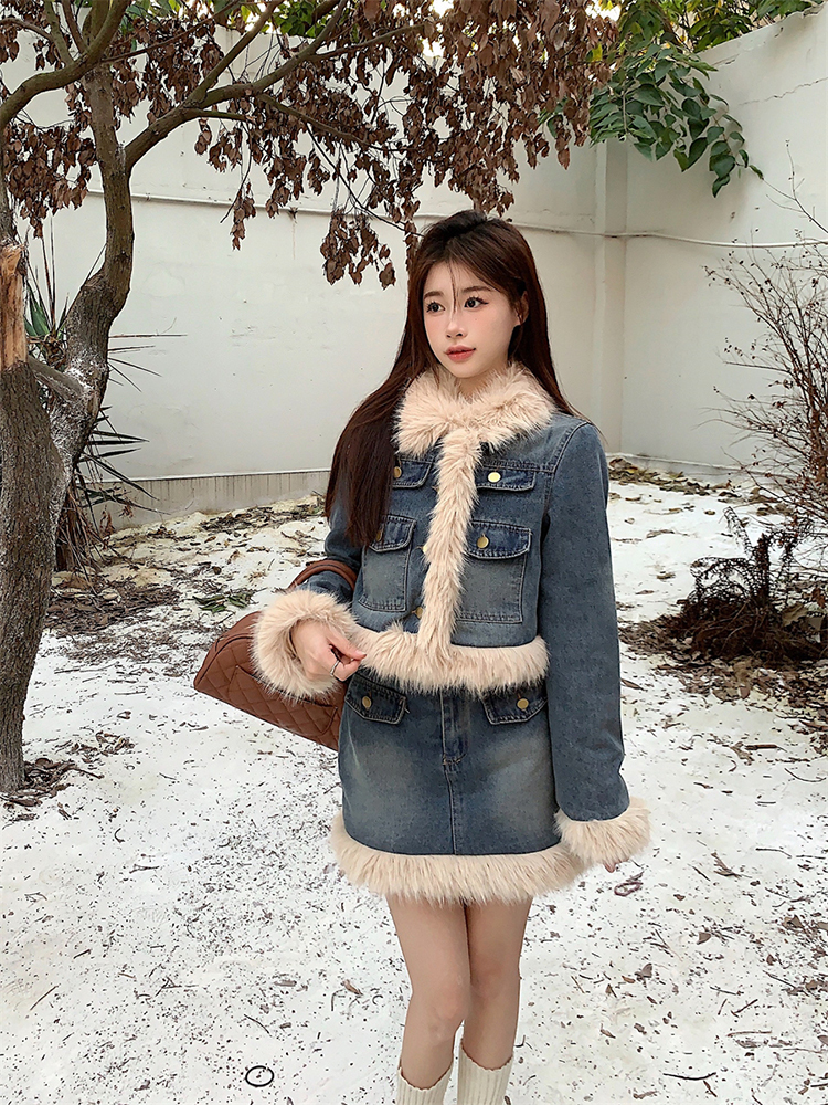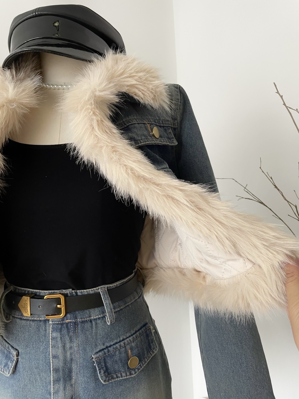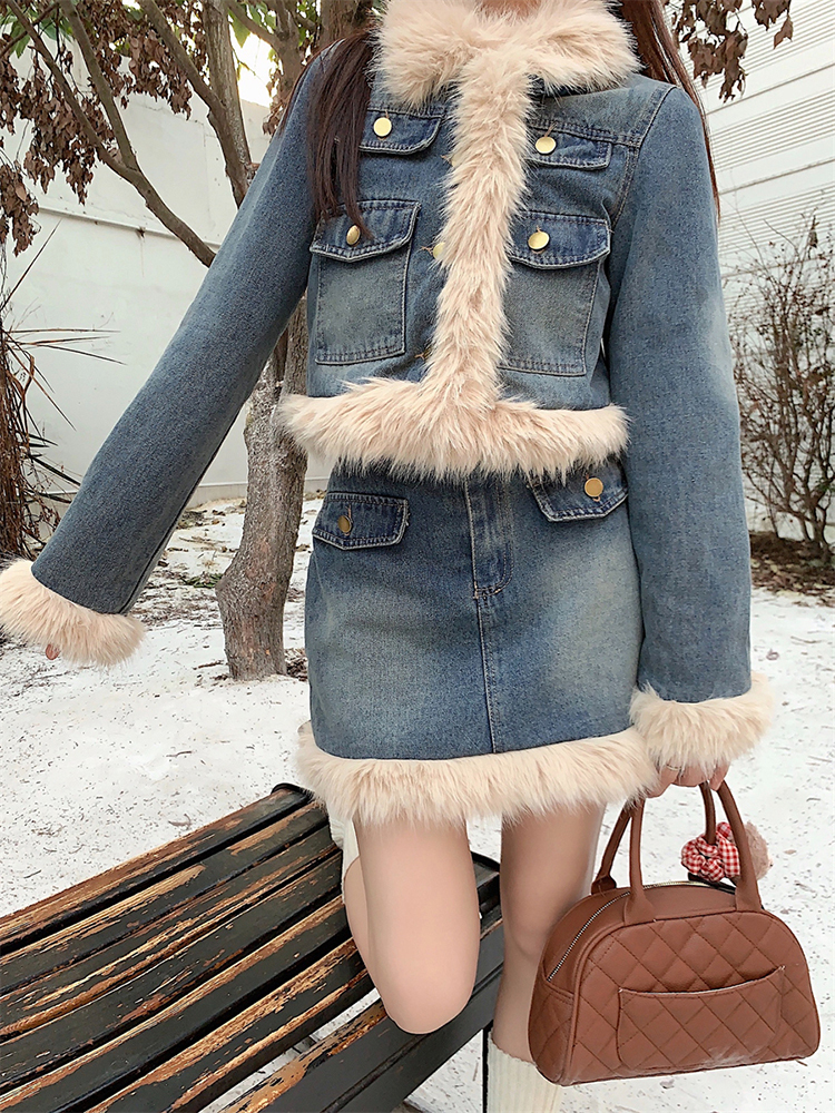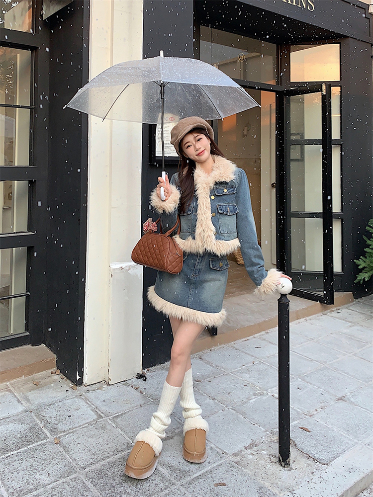 🔺面料:牛仔+仿貂絨+外套內裡填充棉