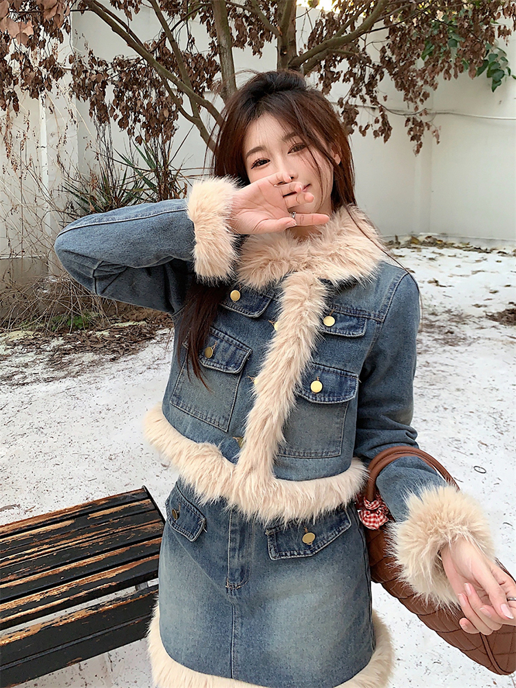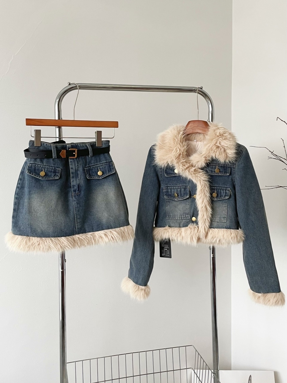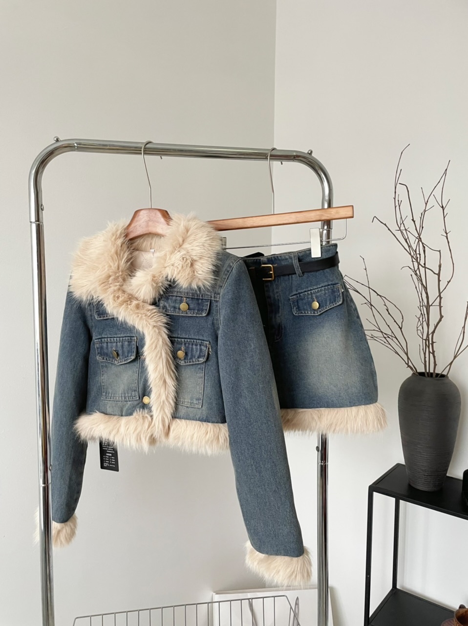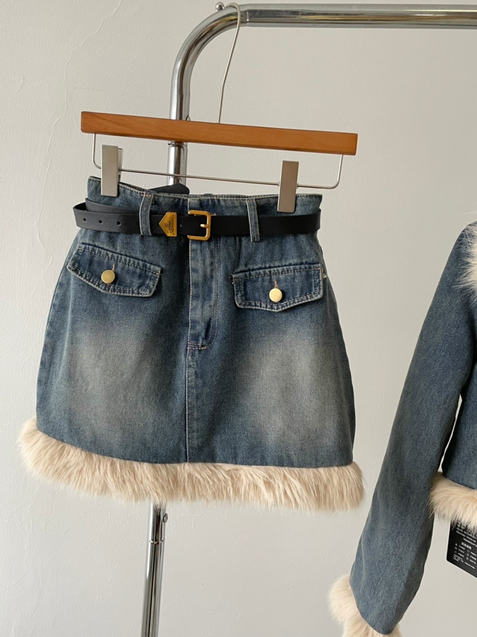🔺面料:牛仔+仿貂絨+外套內裡填充棉