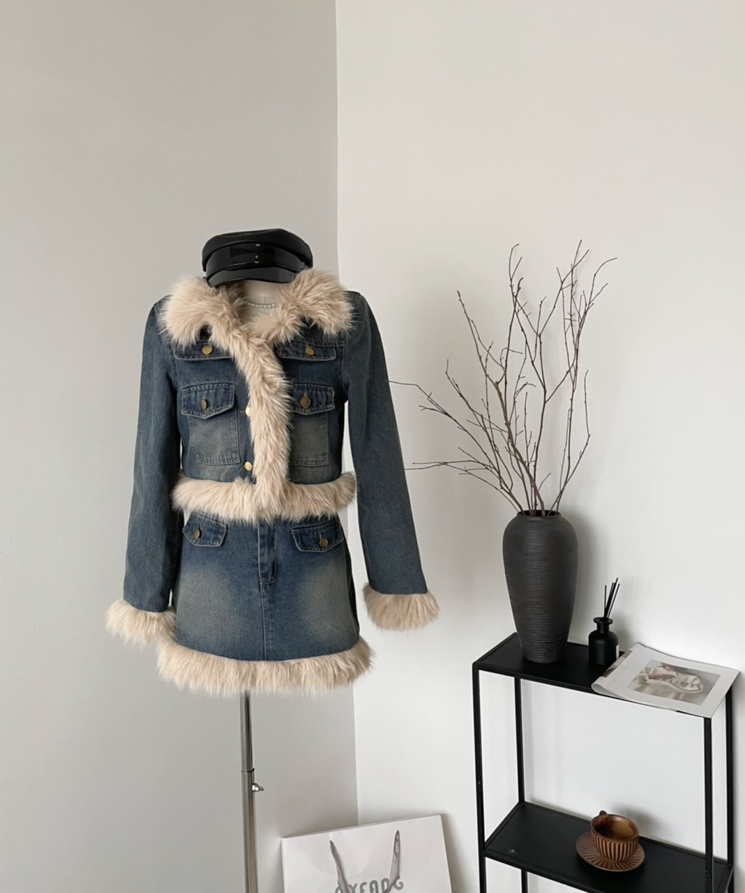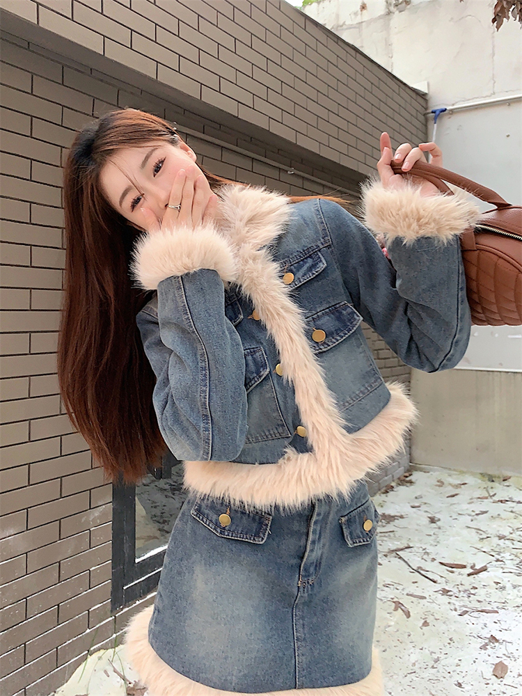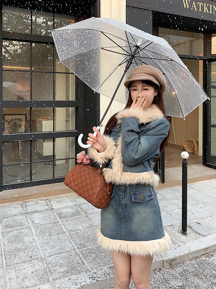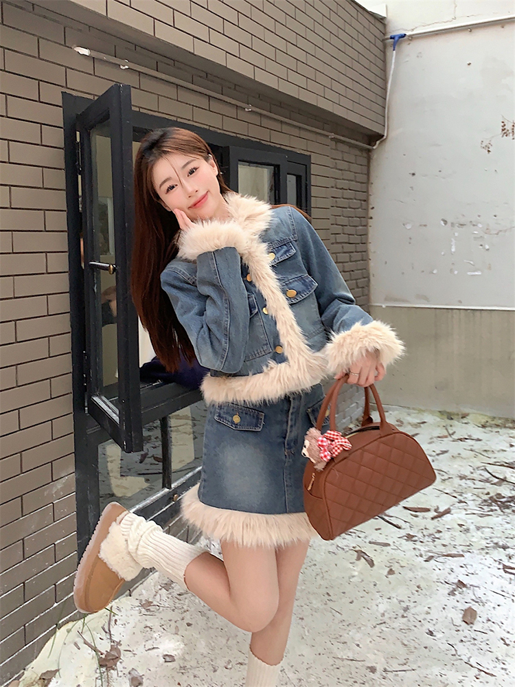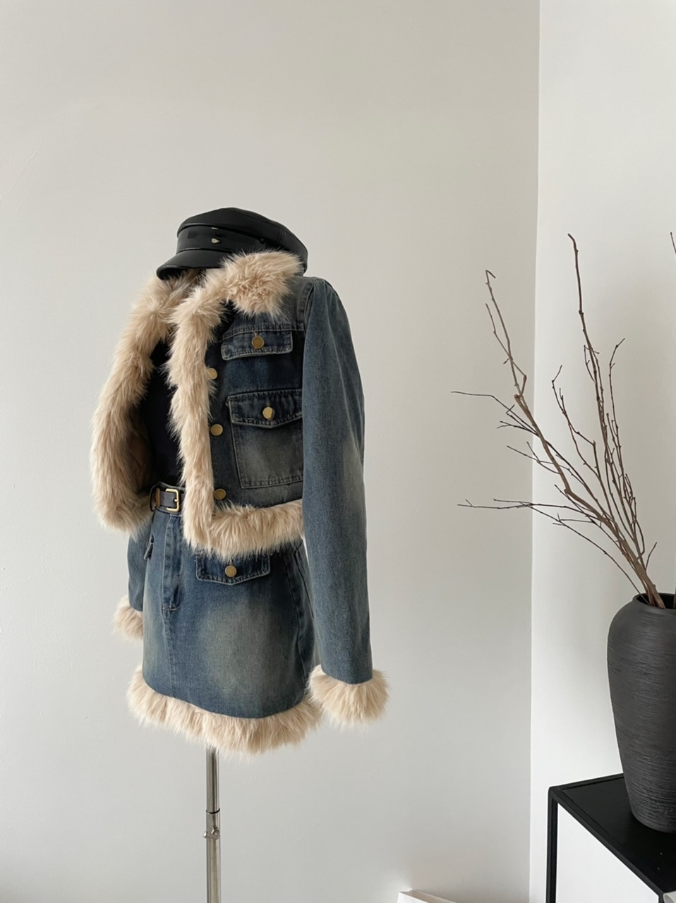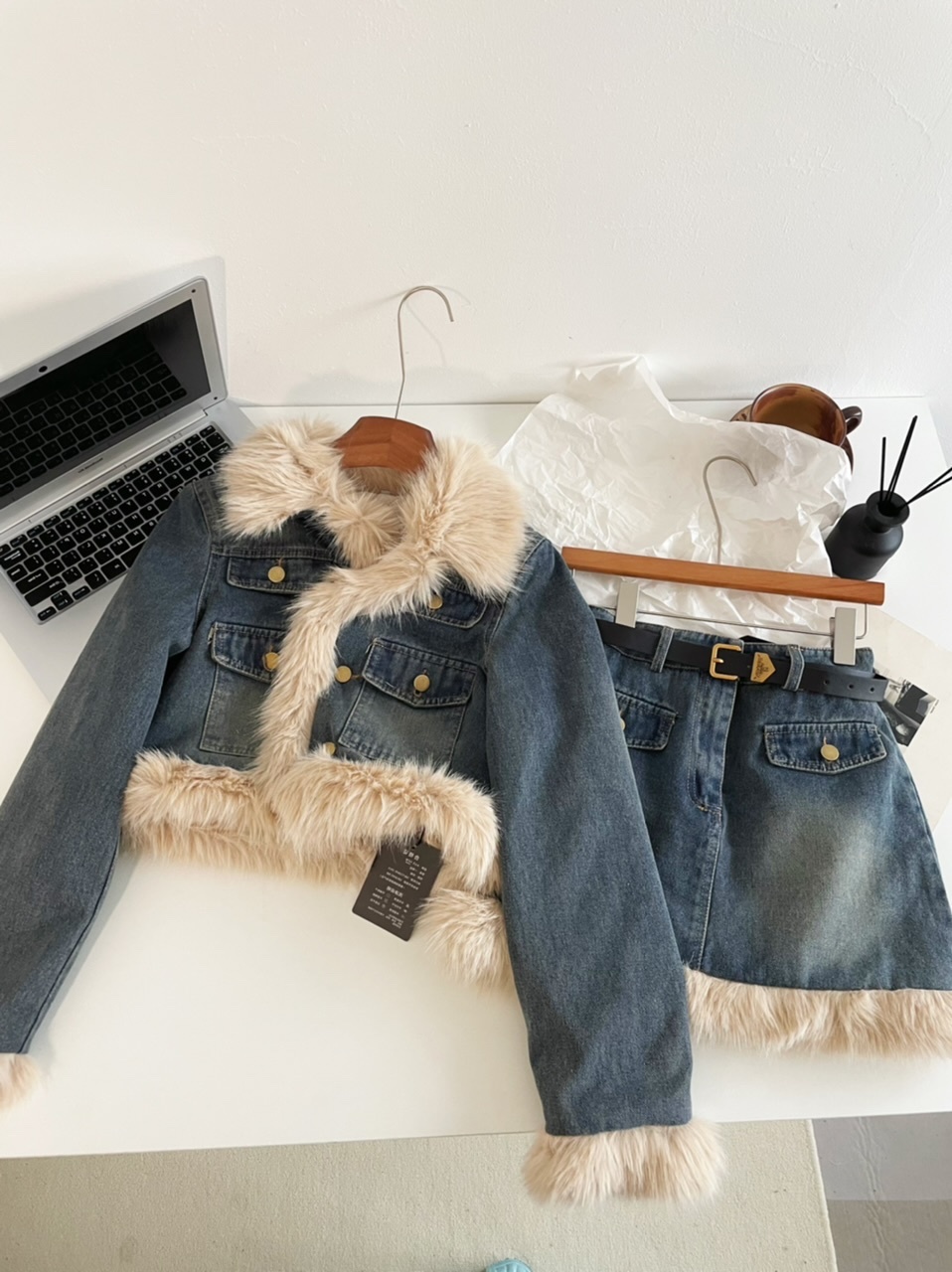 🔺面料:牛仔+仿貂絨+外套內裡填充棉