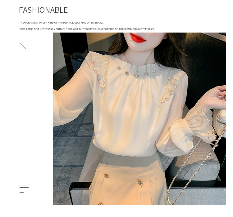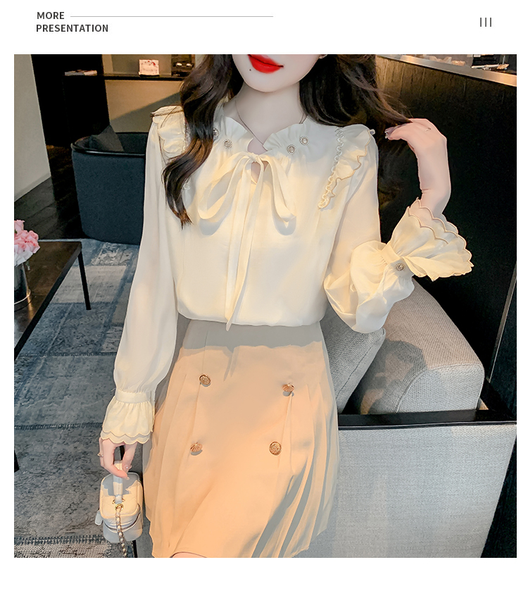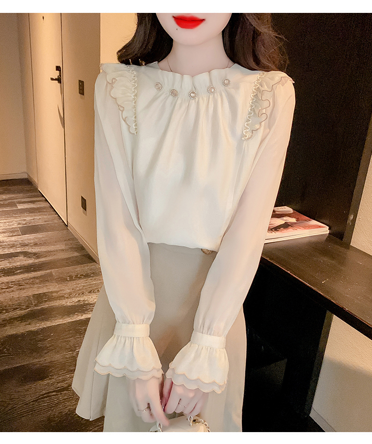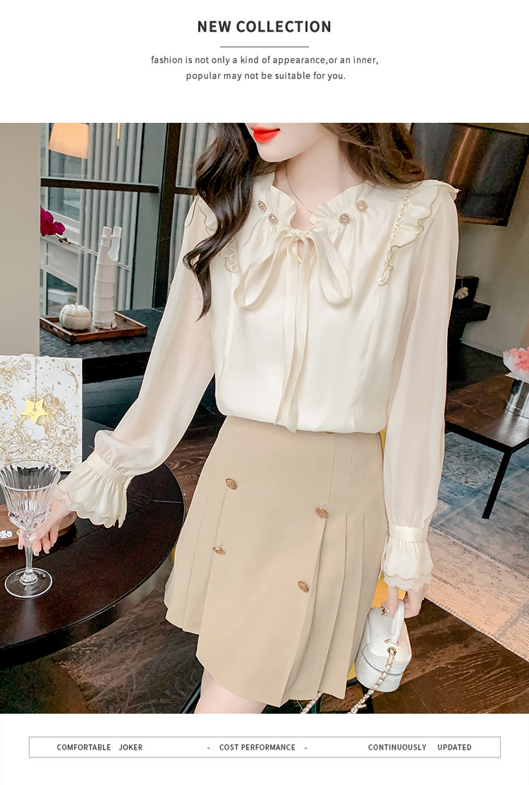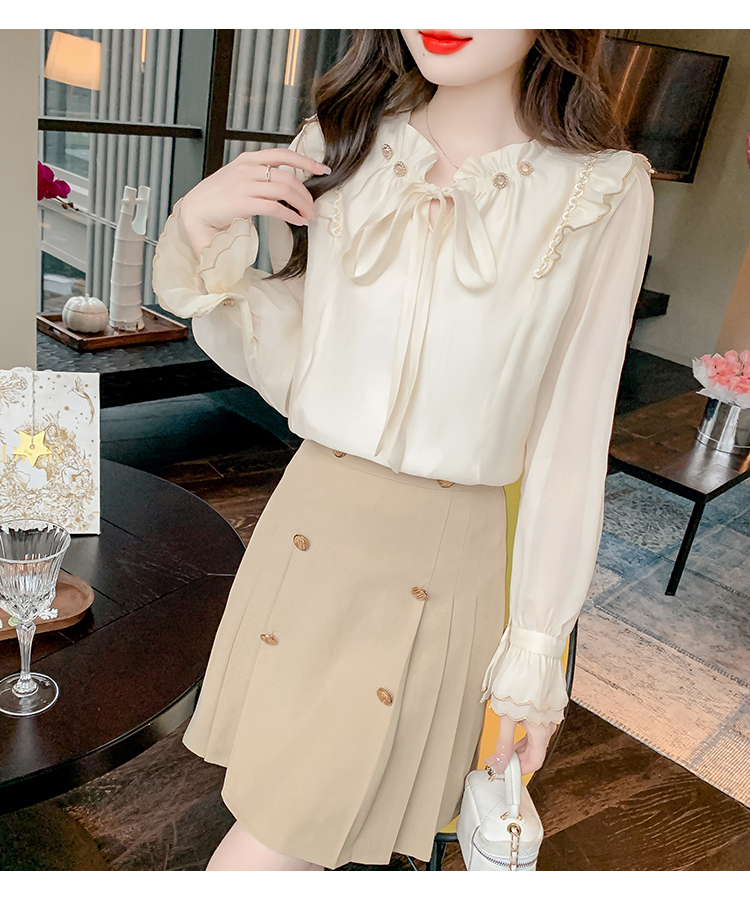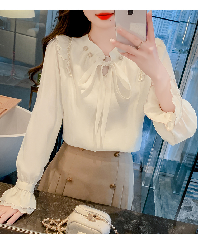 限量特惠|正反2穿 甜美花邊繫帶釘珠雪紡衫(01H5800)