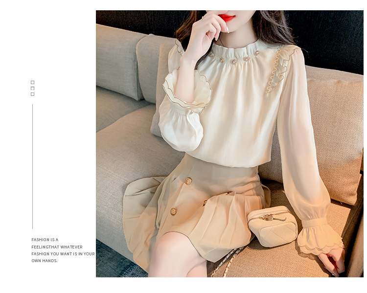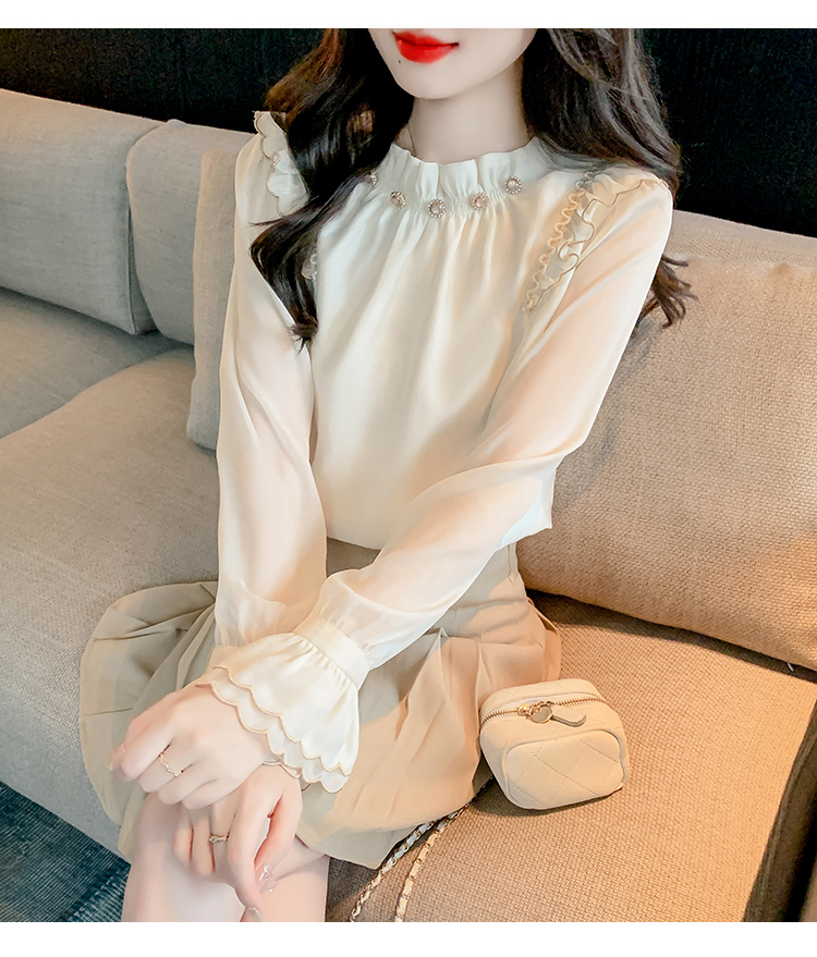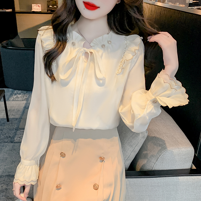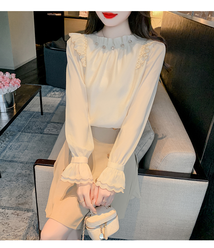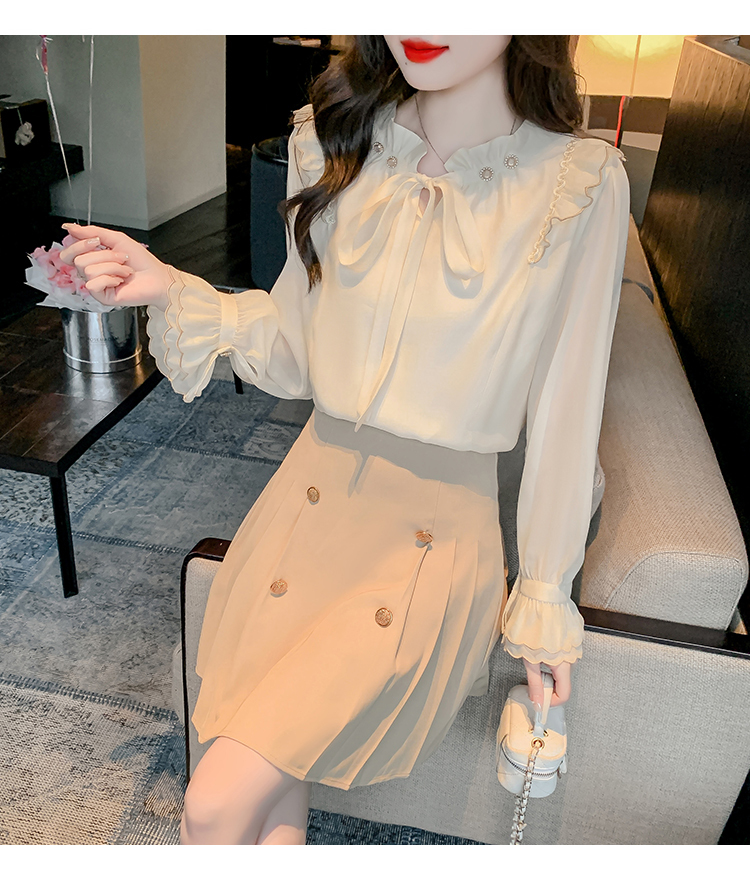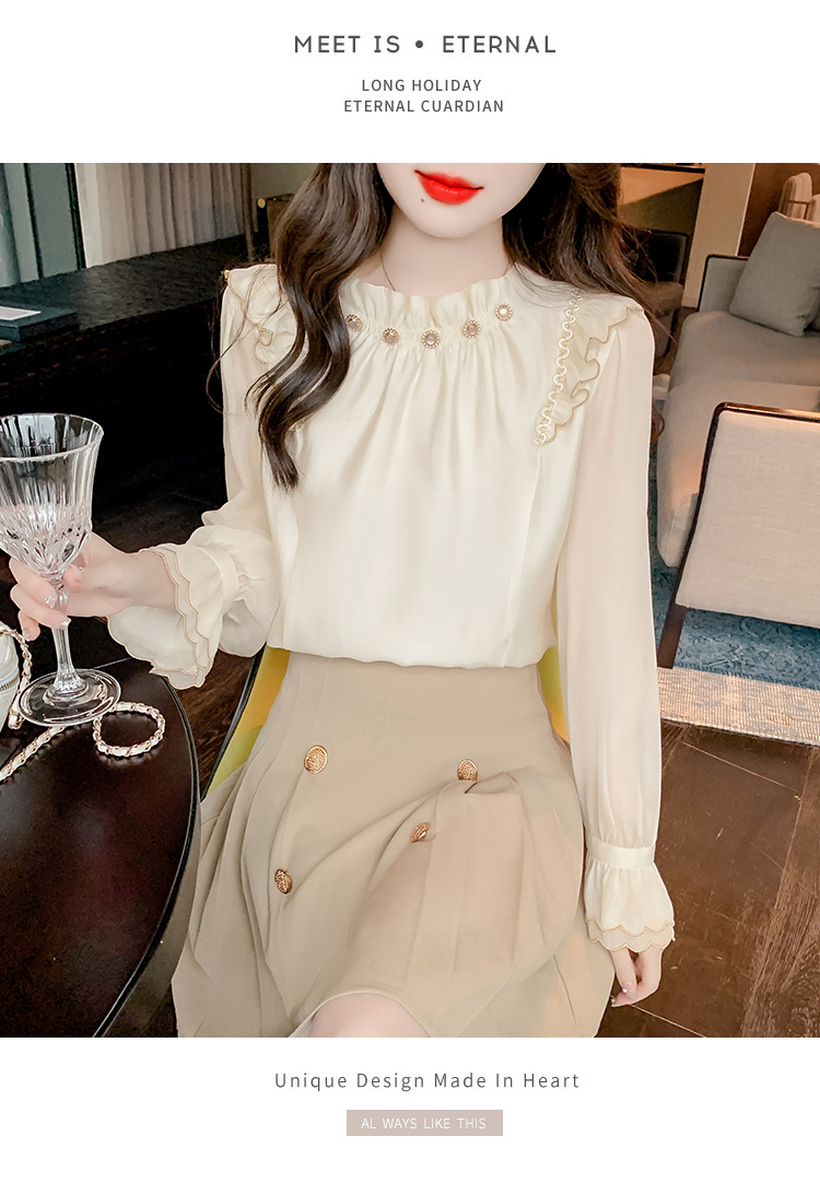 限量特惠|正反2穿 甜美花邊繫帶釘珠雪紡衫(01H5800)