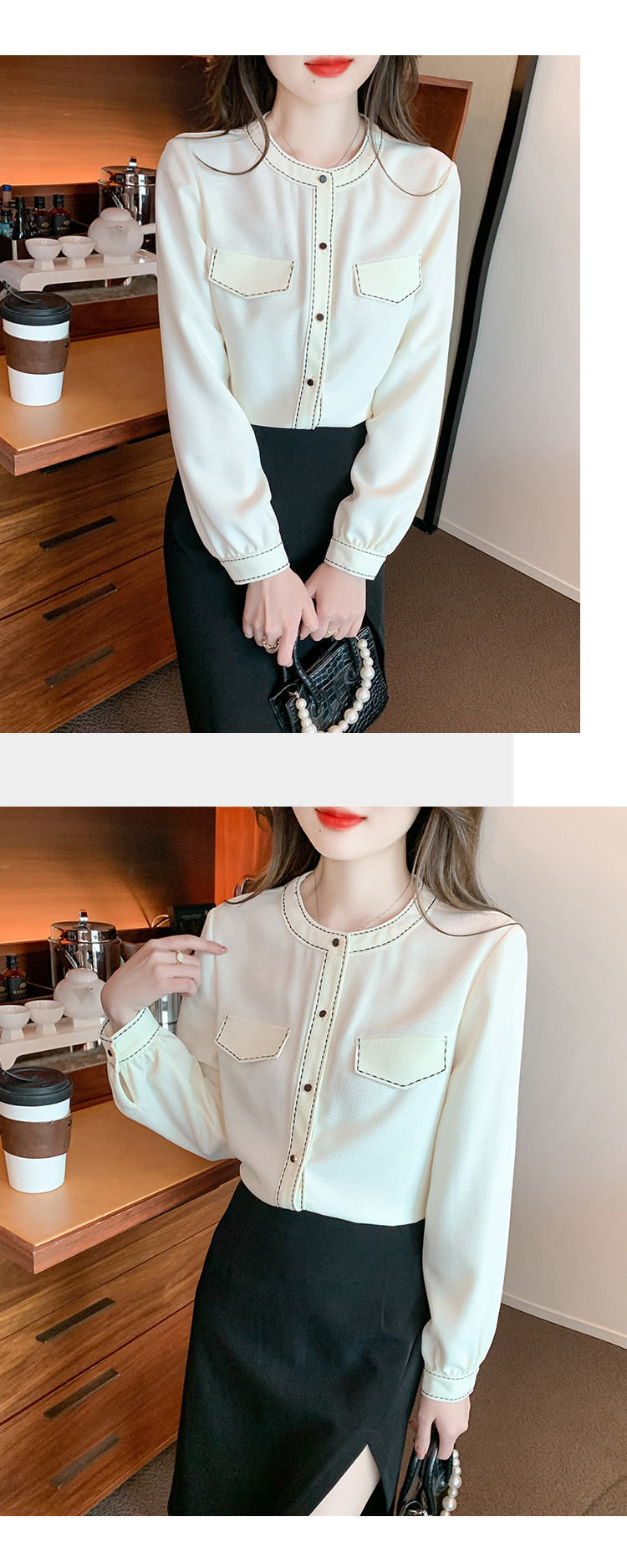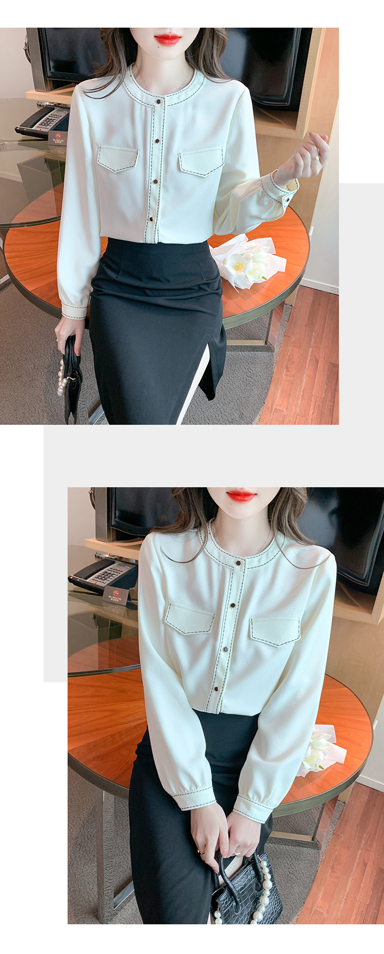 限量特惠|個性百搭假口袋造型雪紡衫(01H5804)