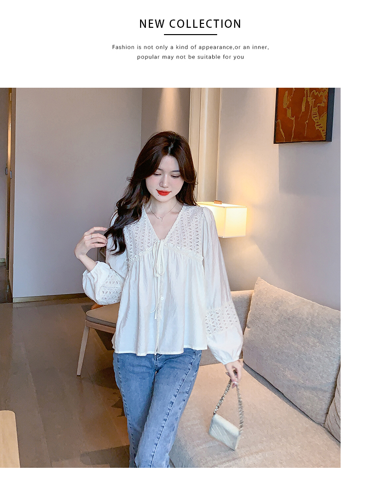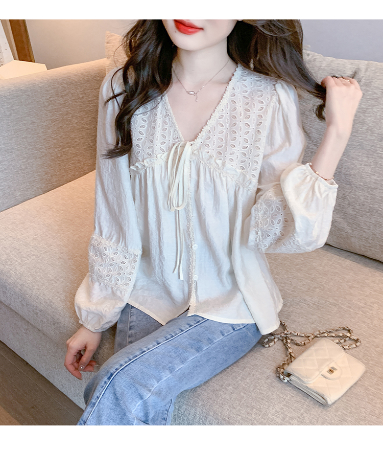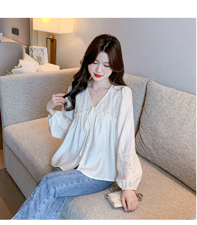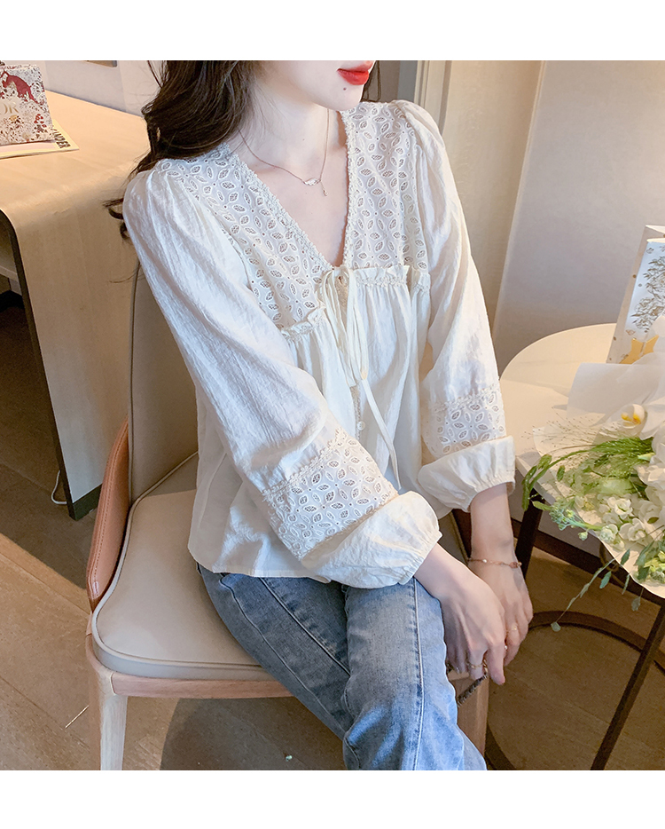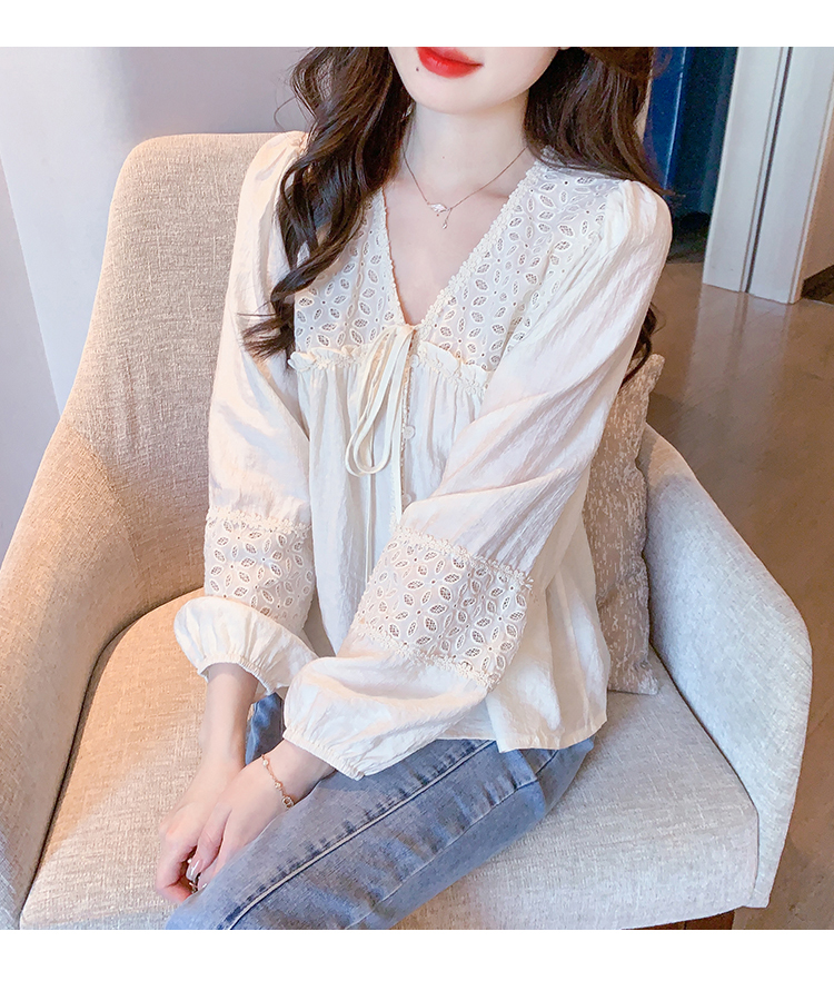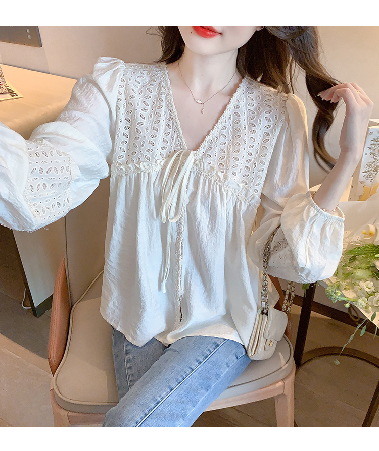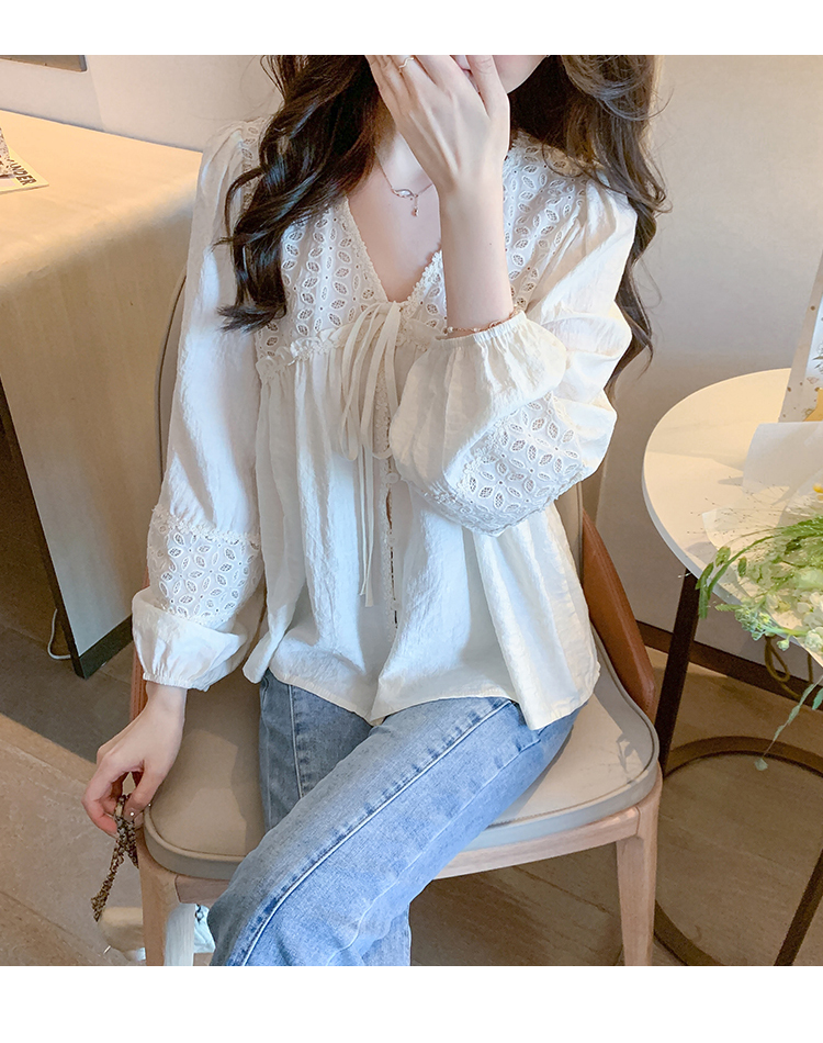 限量特惠|氣質甜美V領蕾絲鏤空繫帶娃娃衫(01H5826)