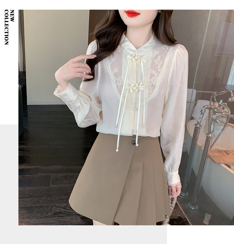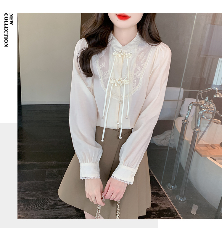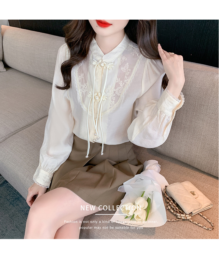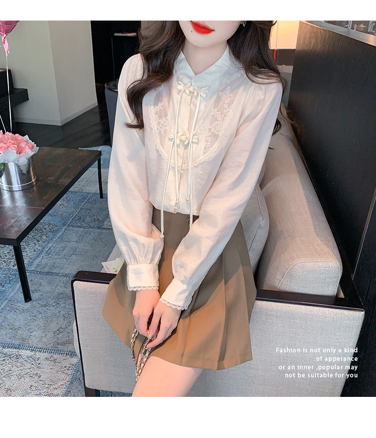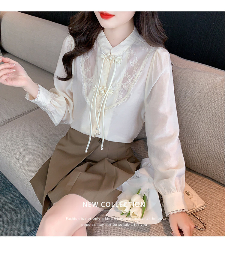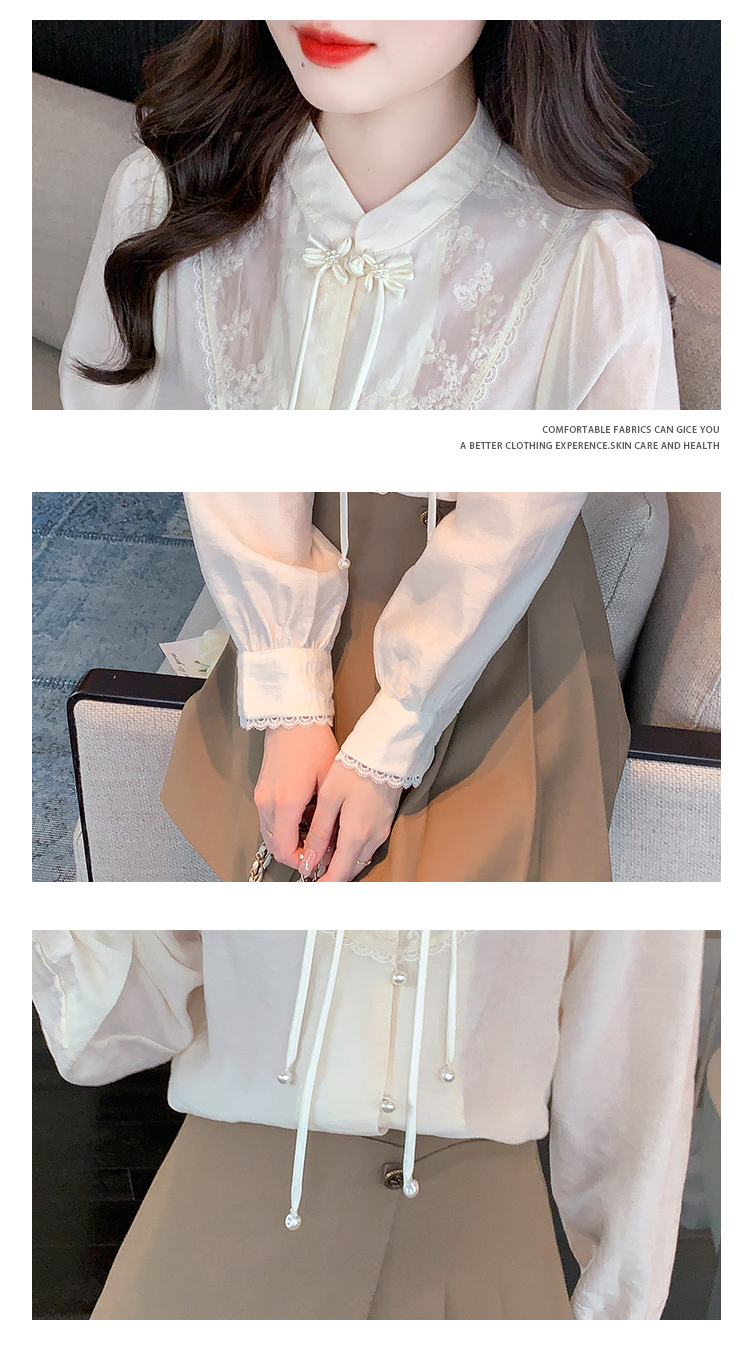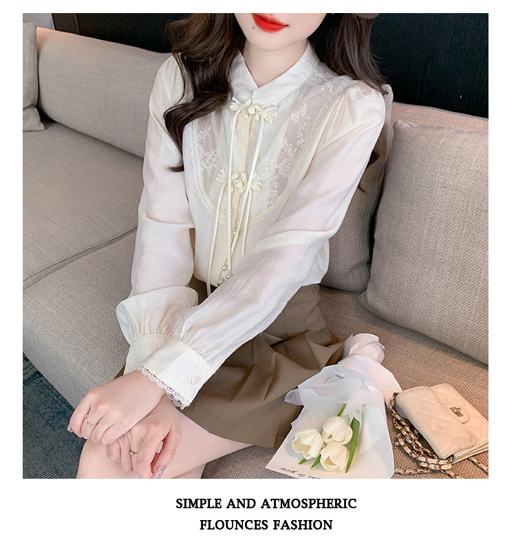 限量特惠|氣質甜美花邊刺繡盤釦造型雪紡衫(01H5832)