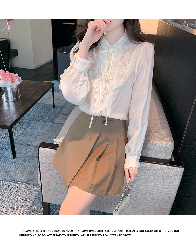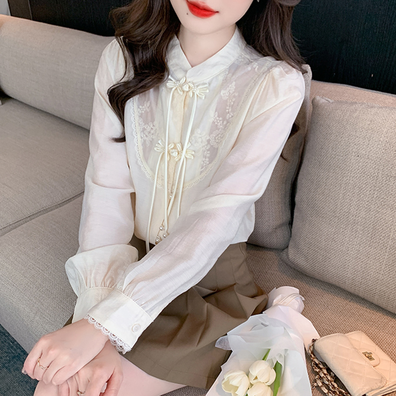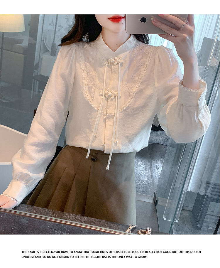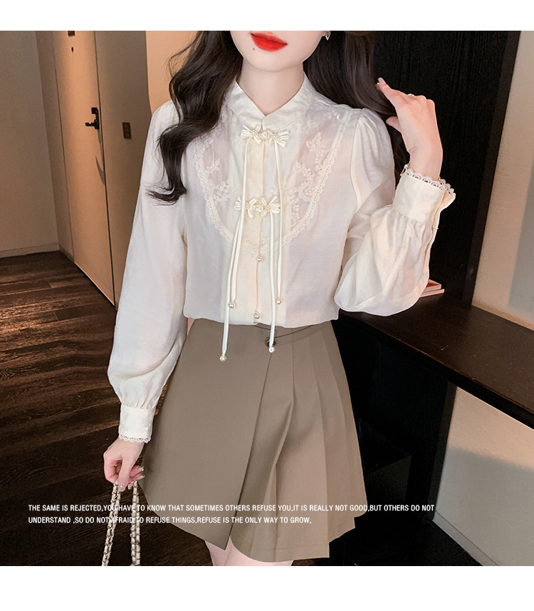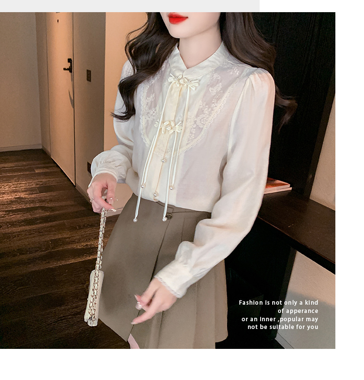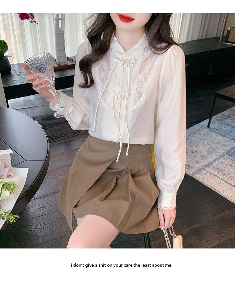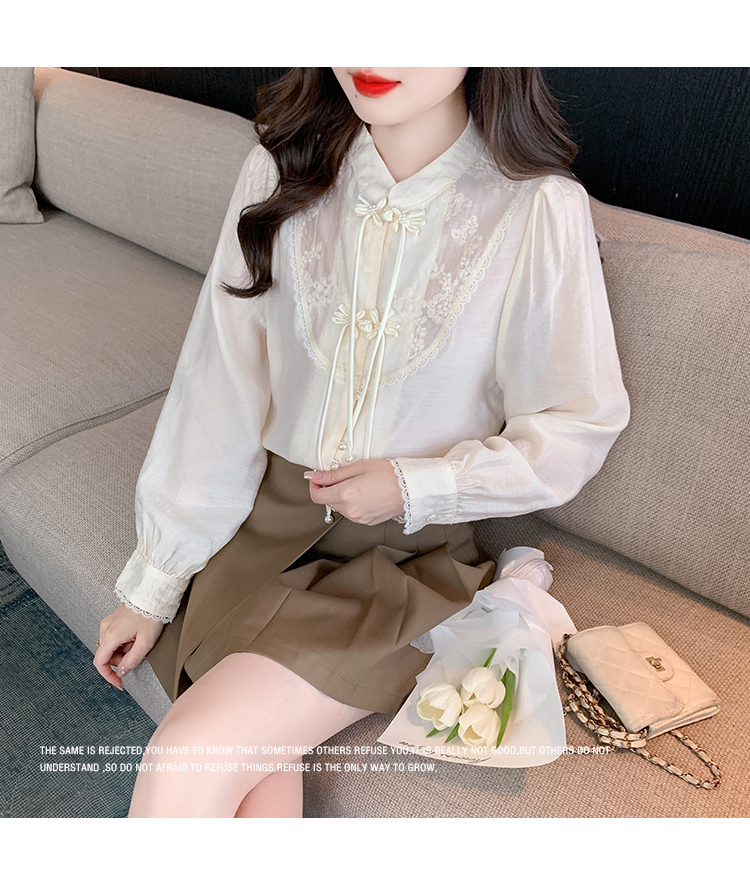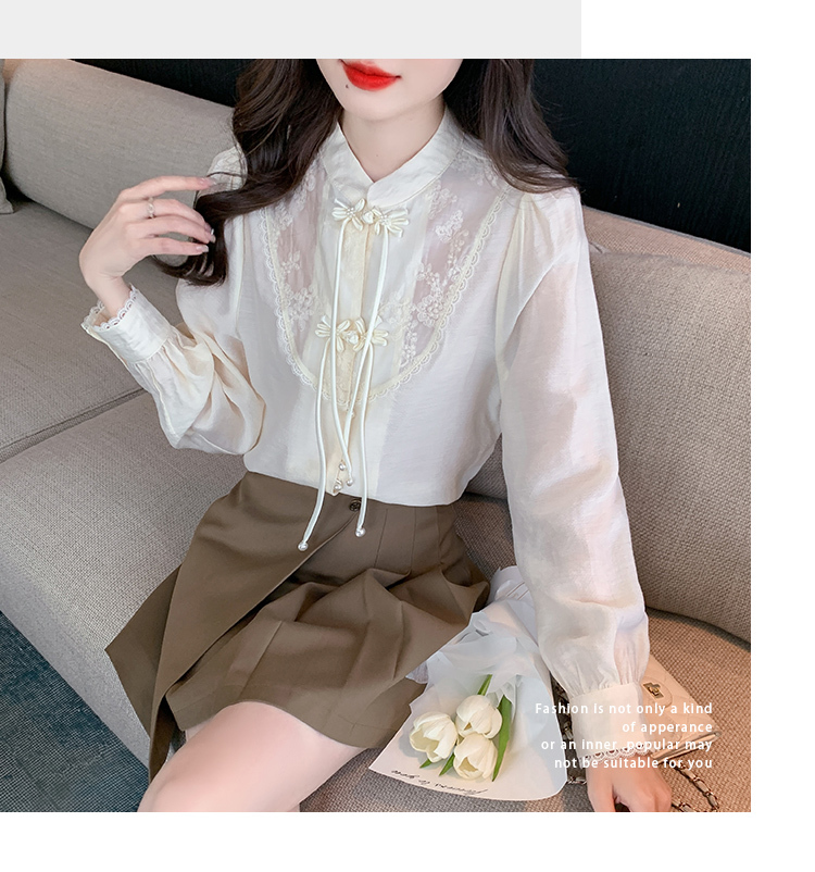 限量特惠|氣質甜美花邊刺繡盤釦造型雪紡衫(01H5832)