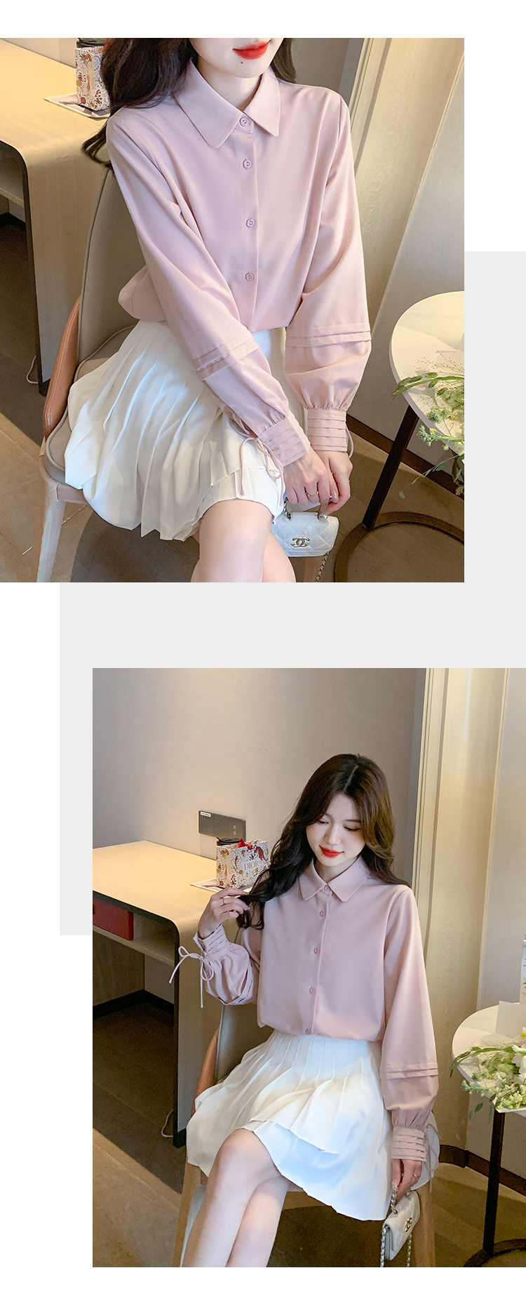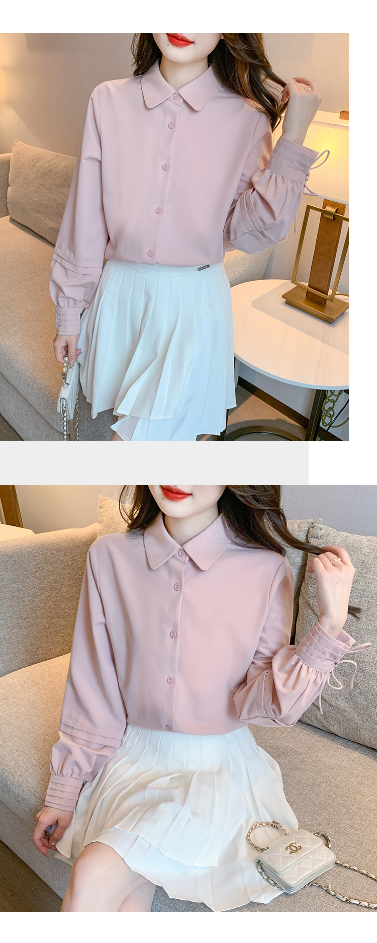 限量特惠|氣質知性百褶綁帶袖造型雪紡衫(01H5845)