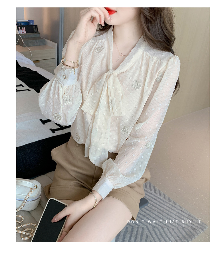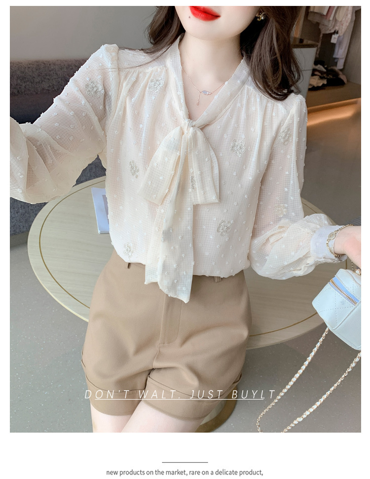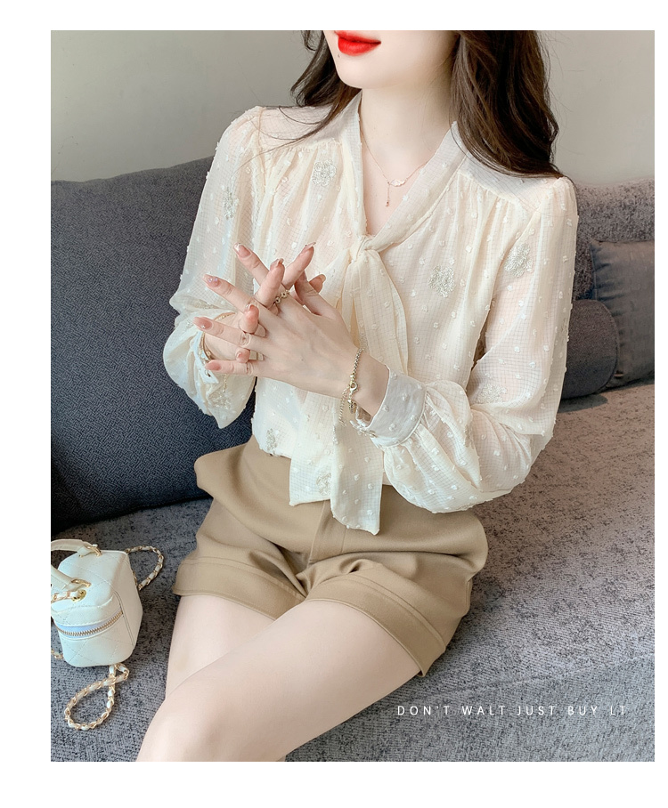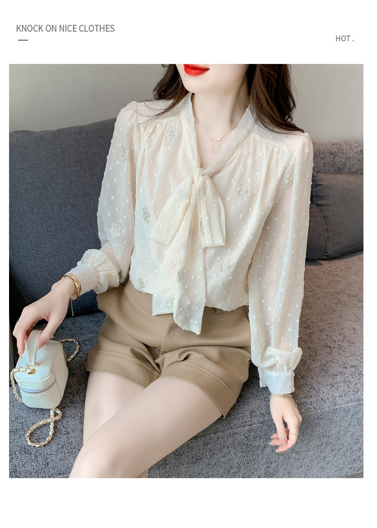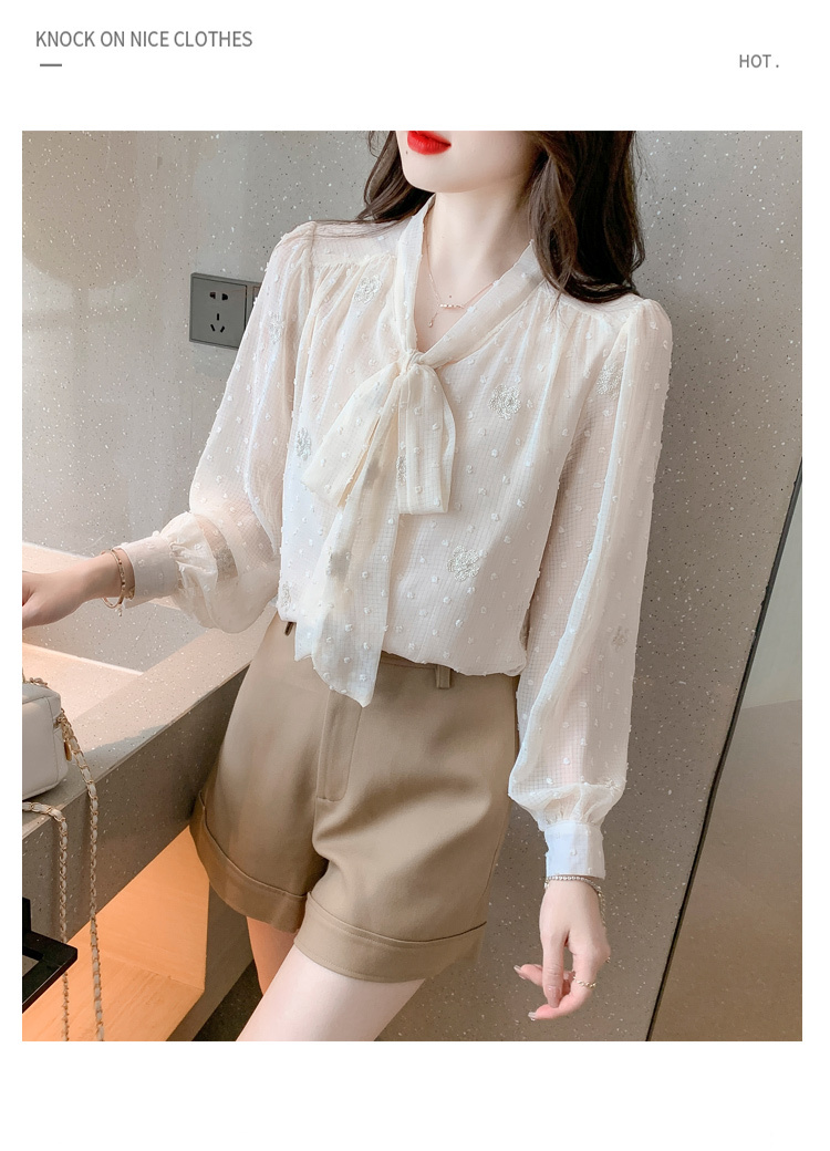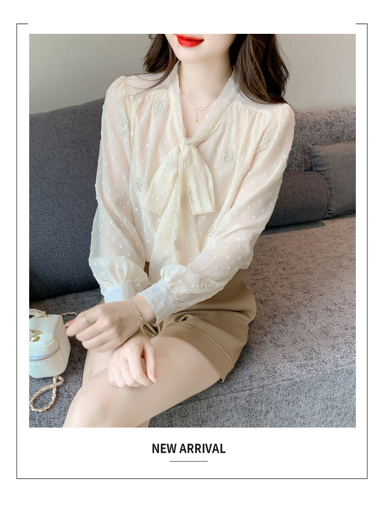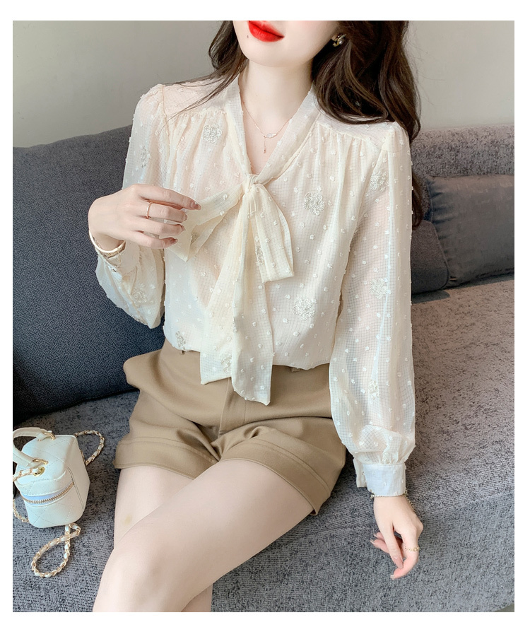 限量特惠|氣質系帶重工刺繡造型雪紡衫(01H5853)
