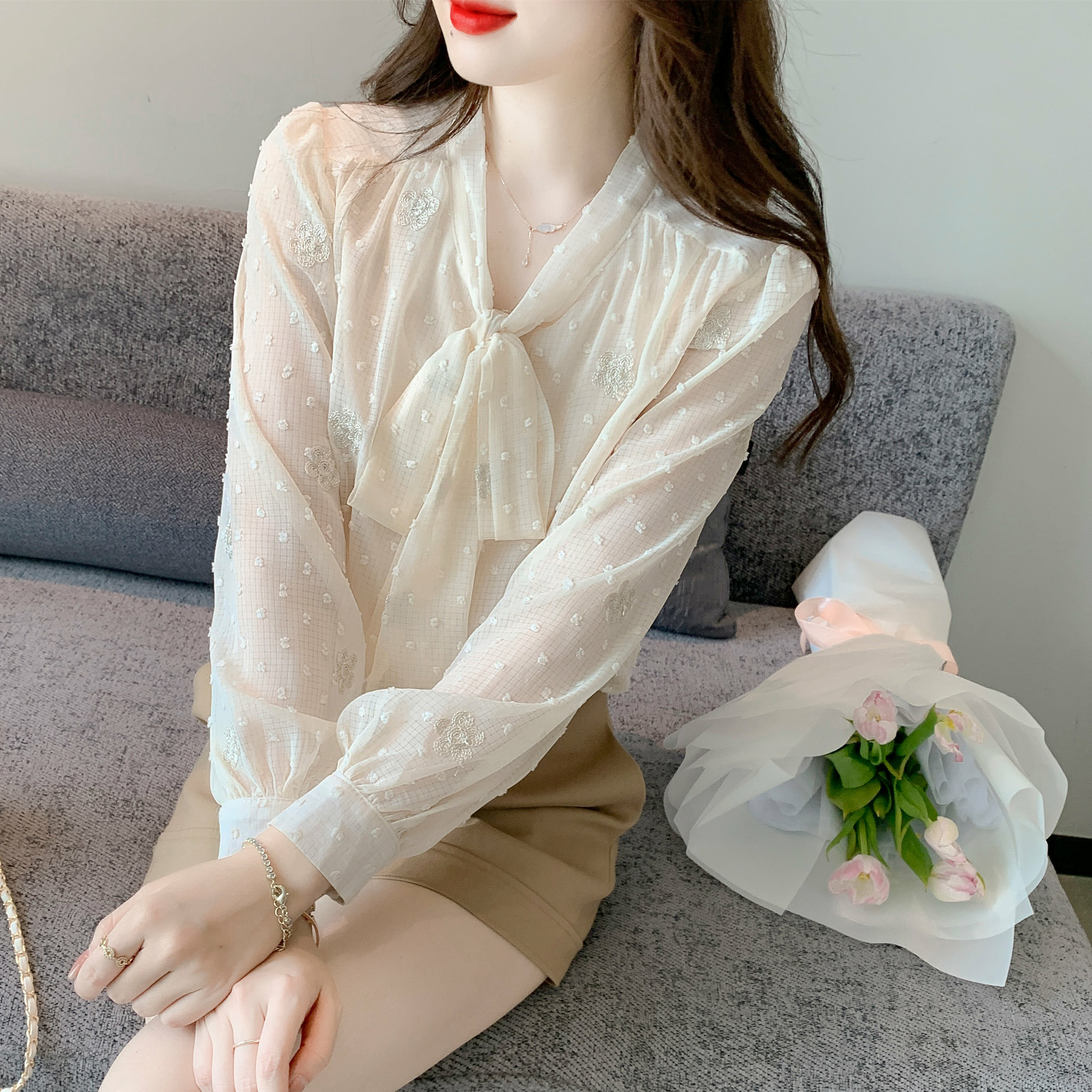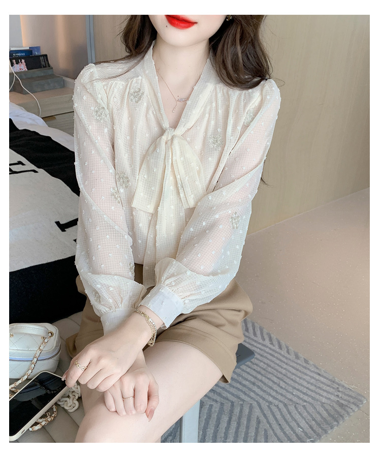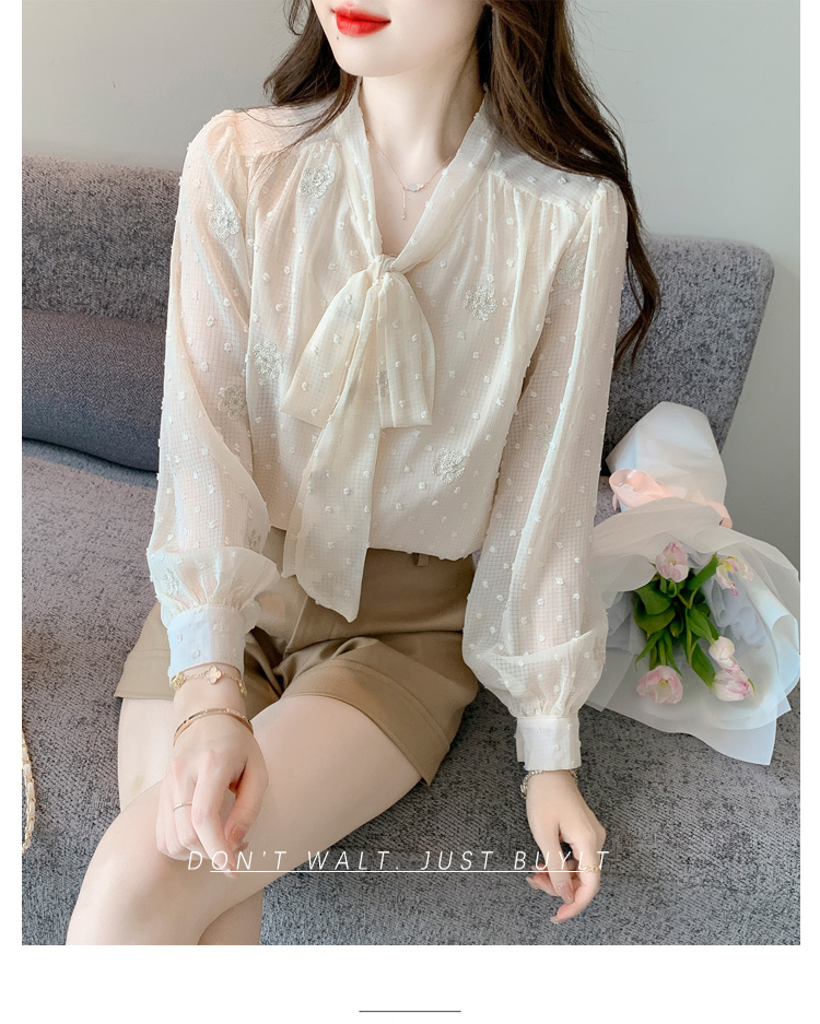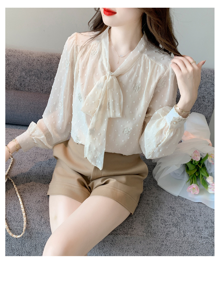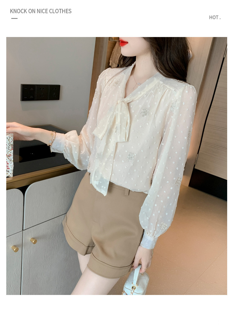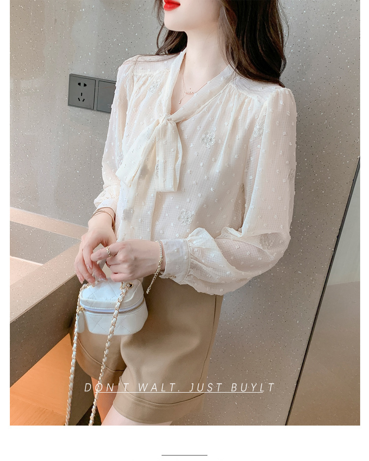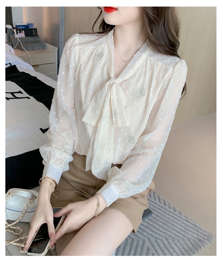 限量特惠|氣質系帶重工刺繡造型雪紡衫(01H5853)