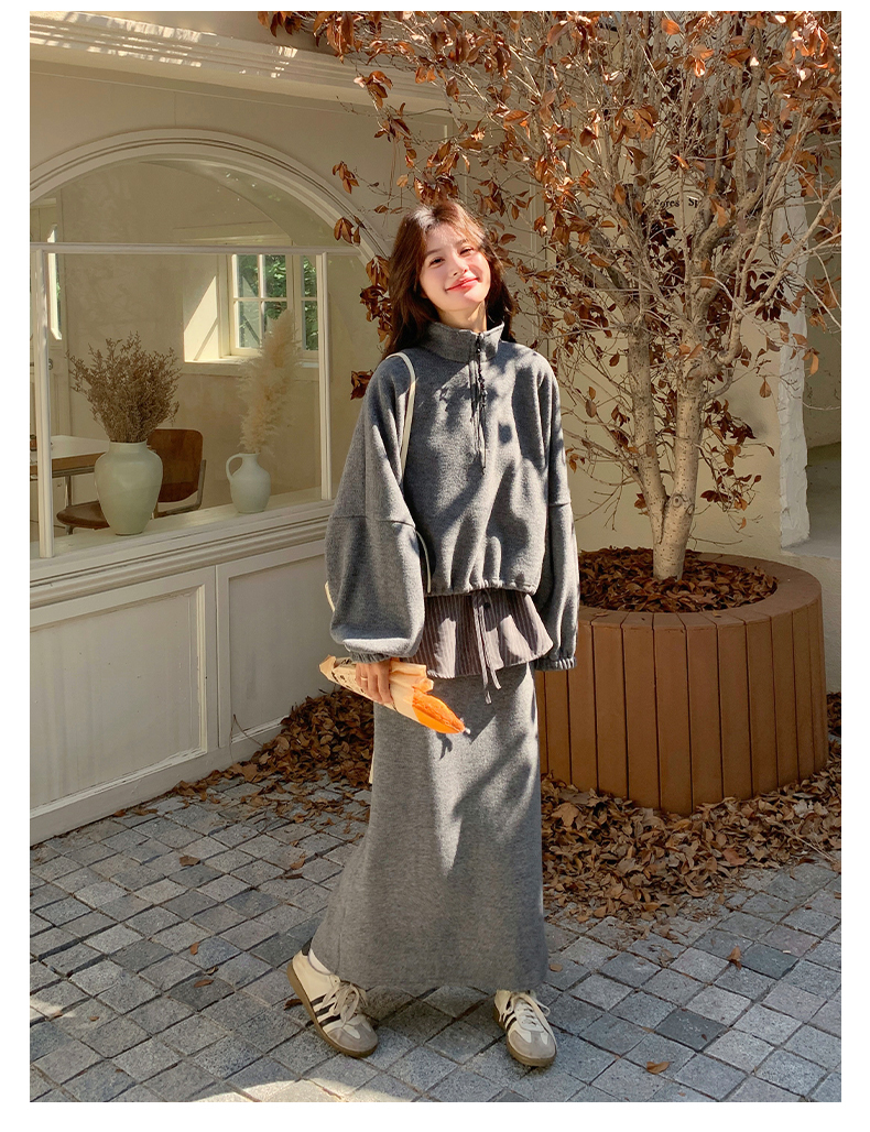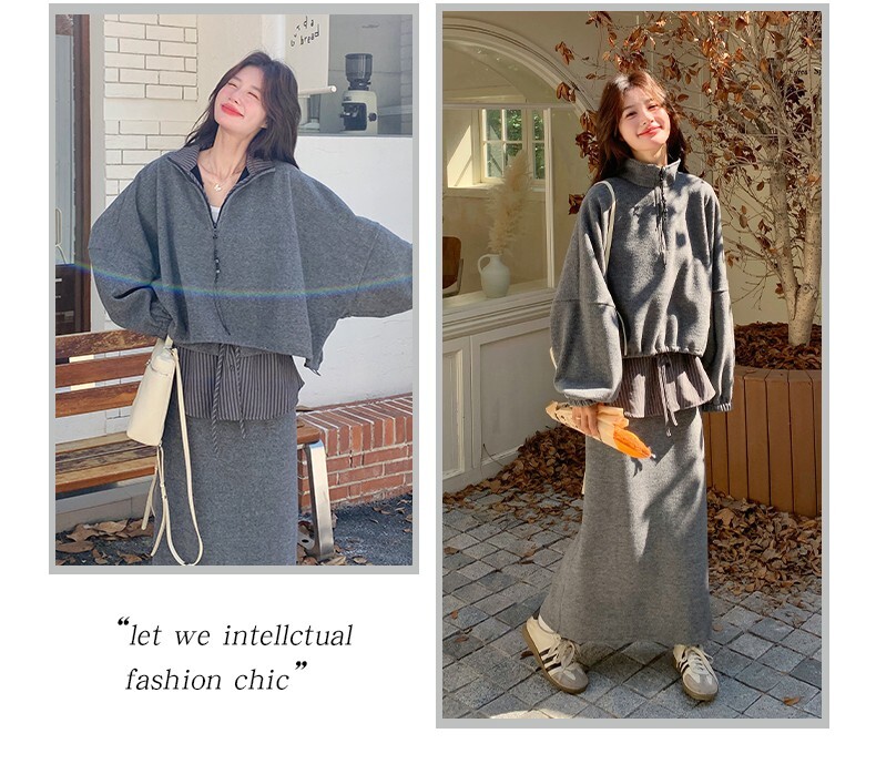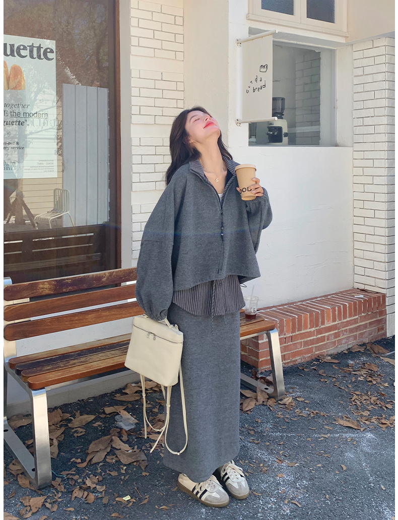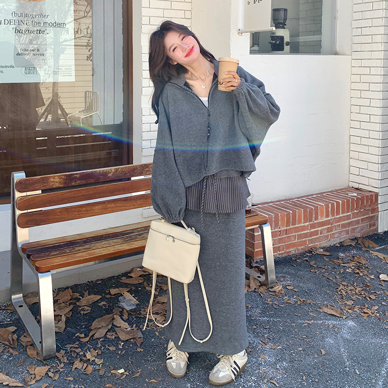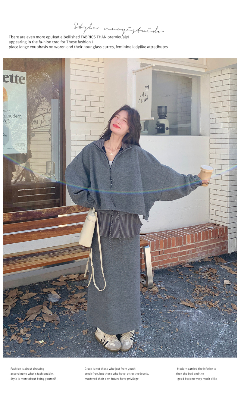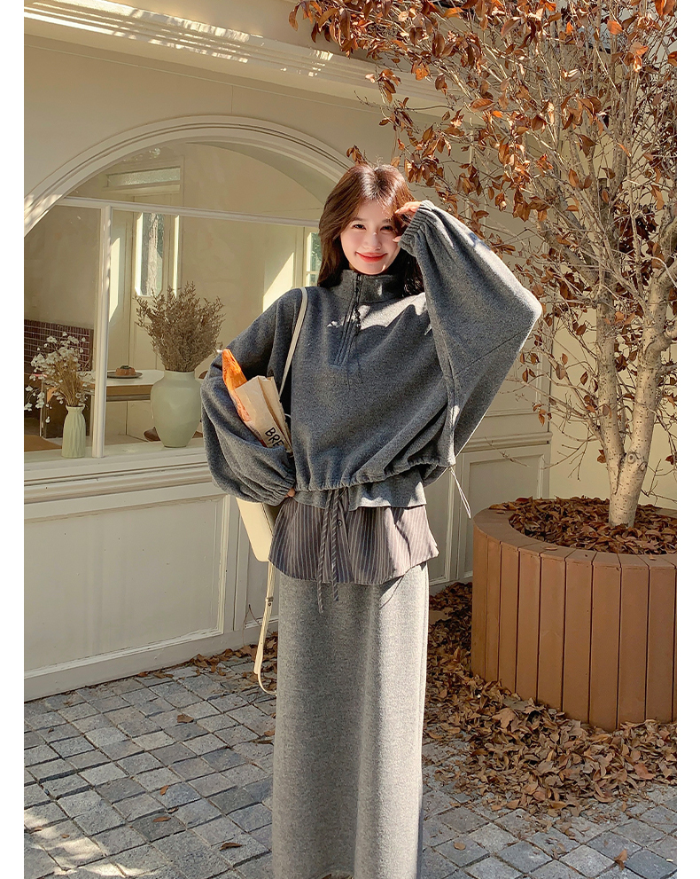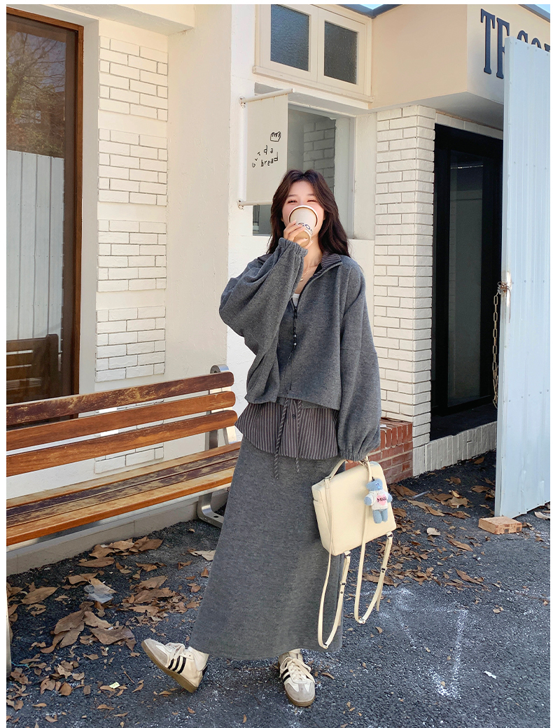 獨家訂製│2件式 翻領上衣+條紋拼接A字裙(02A1862)