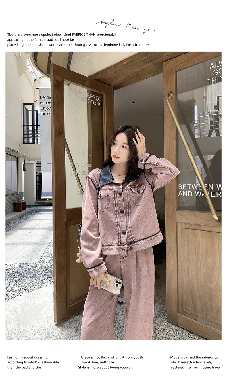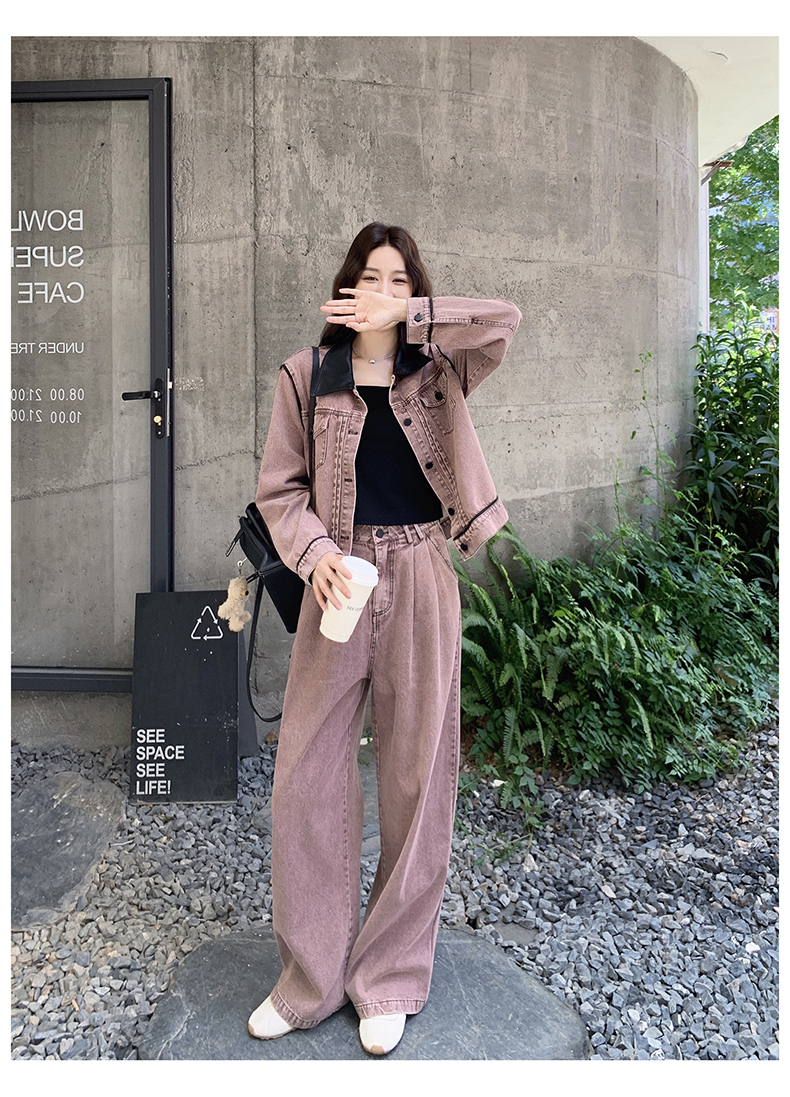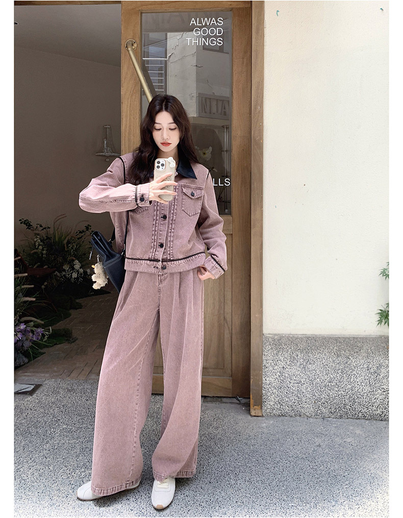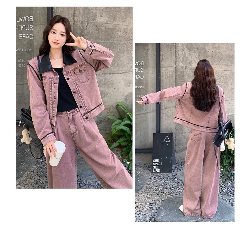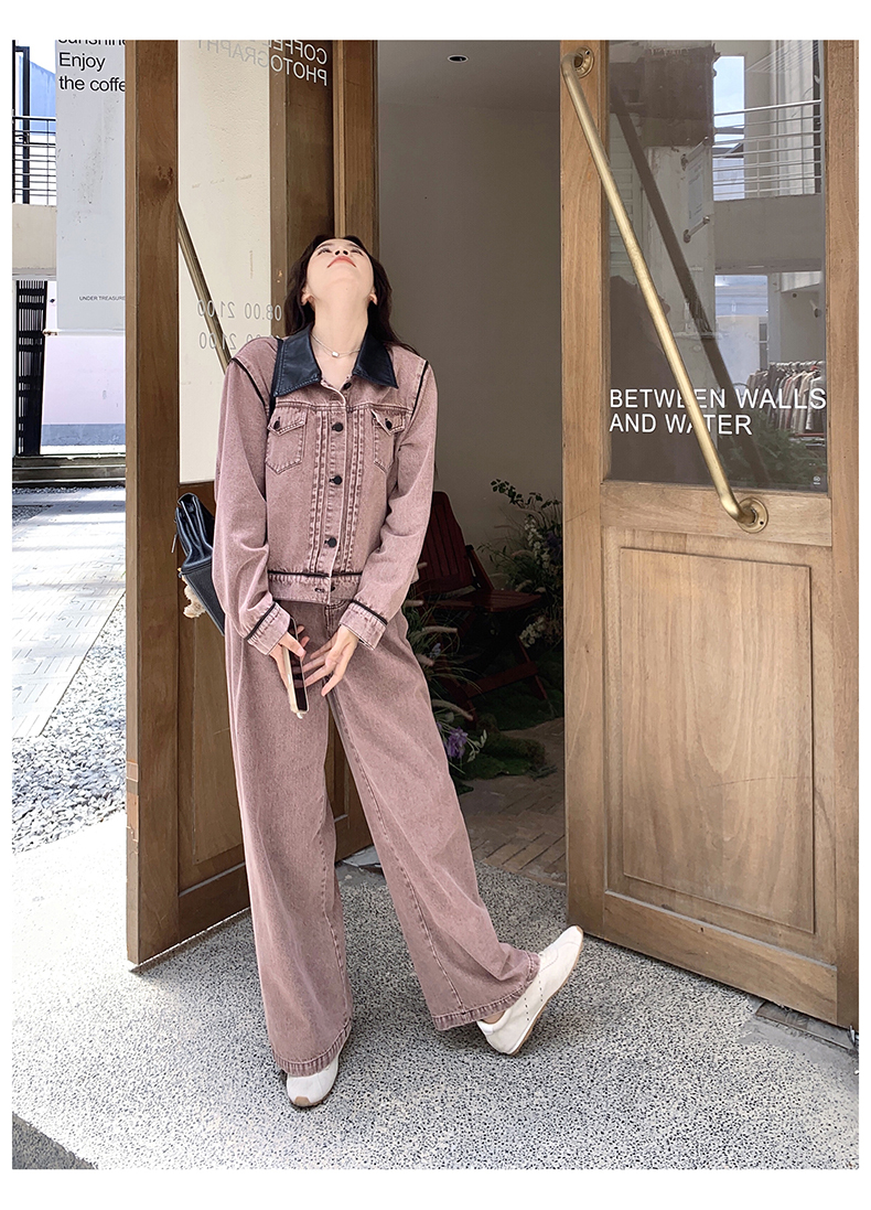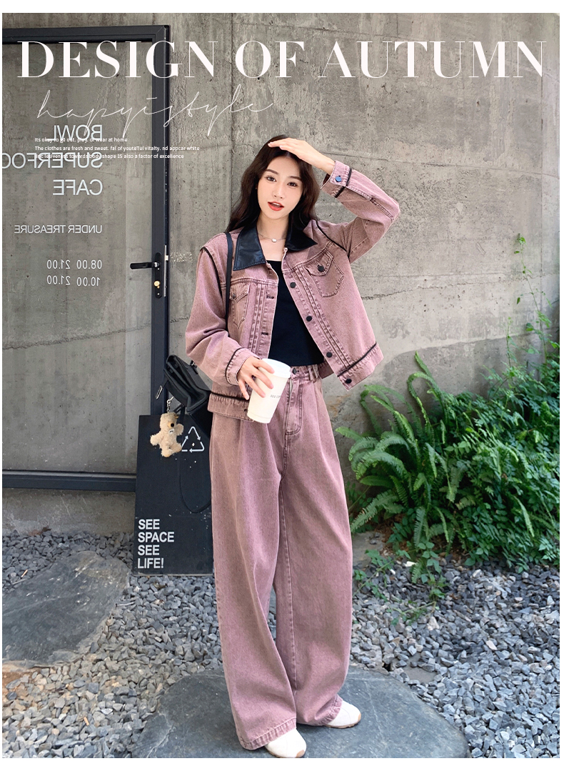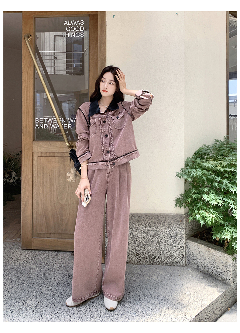 獨家訂製│2件式 撞色翻領牛仔外套+寬褲(02A1896)