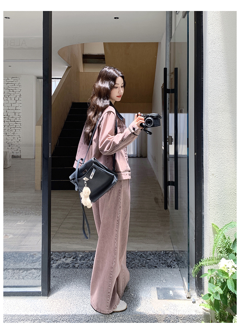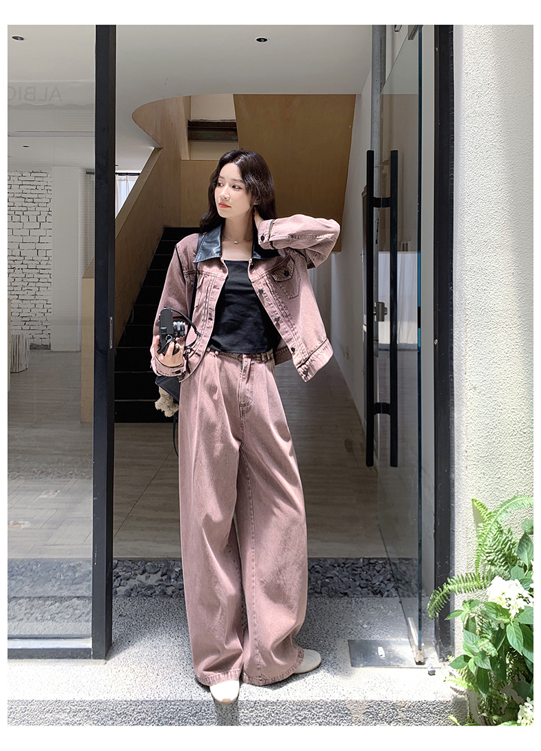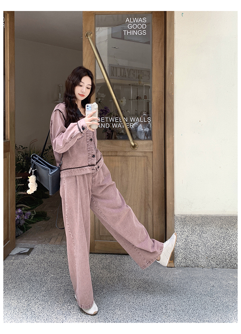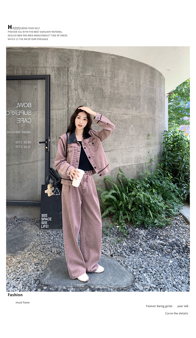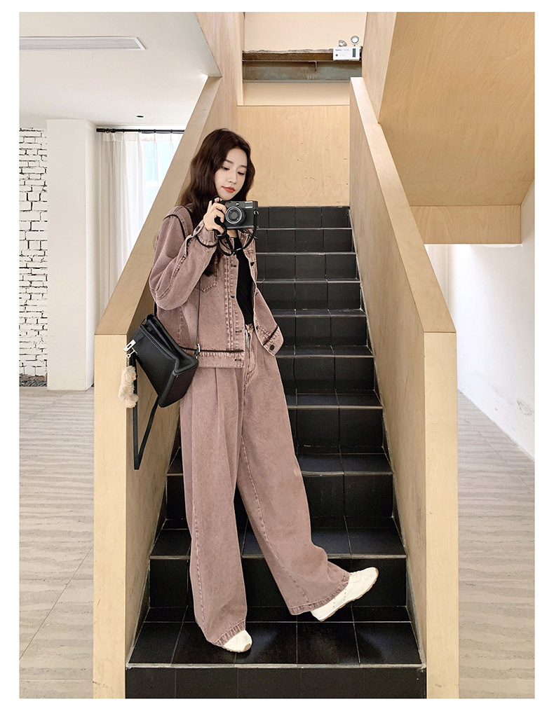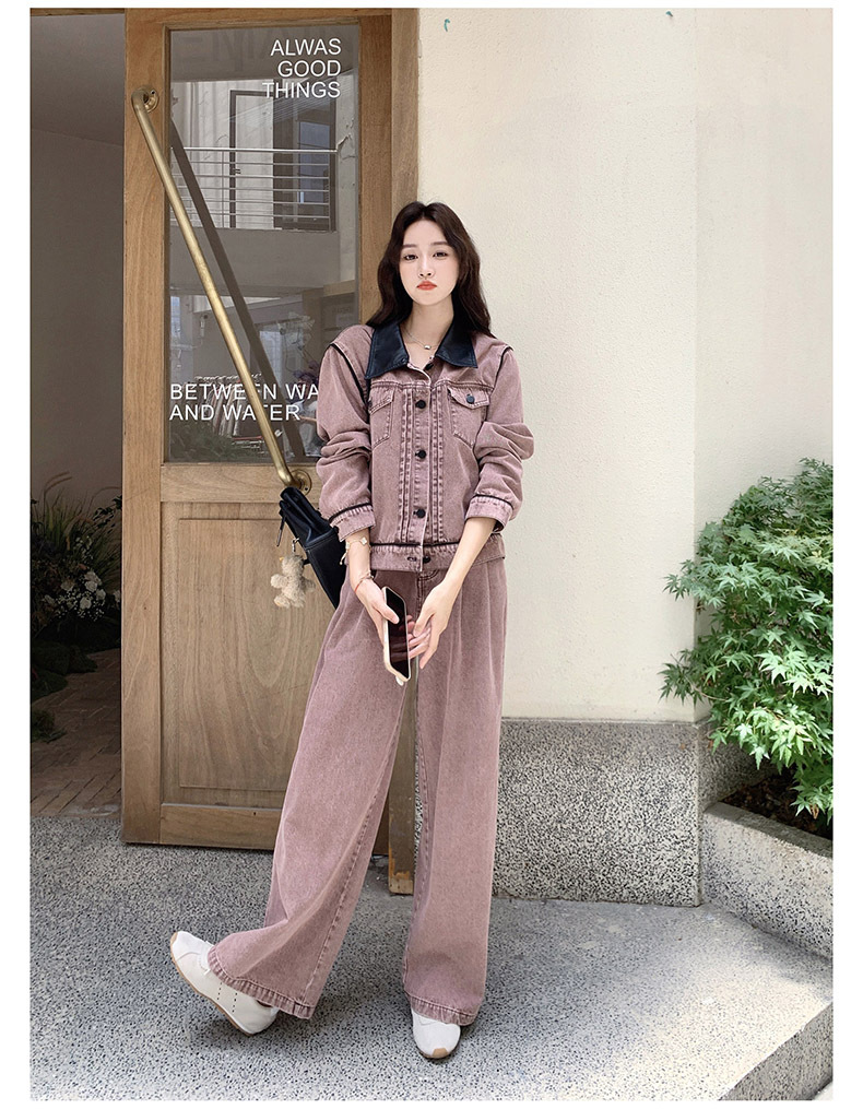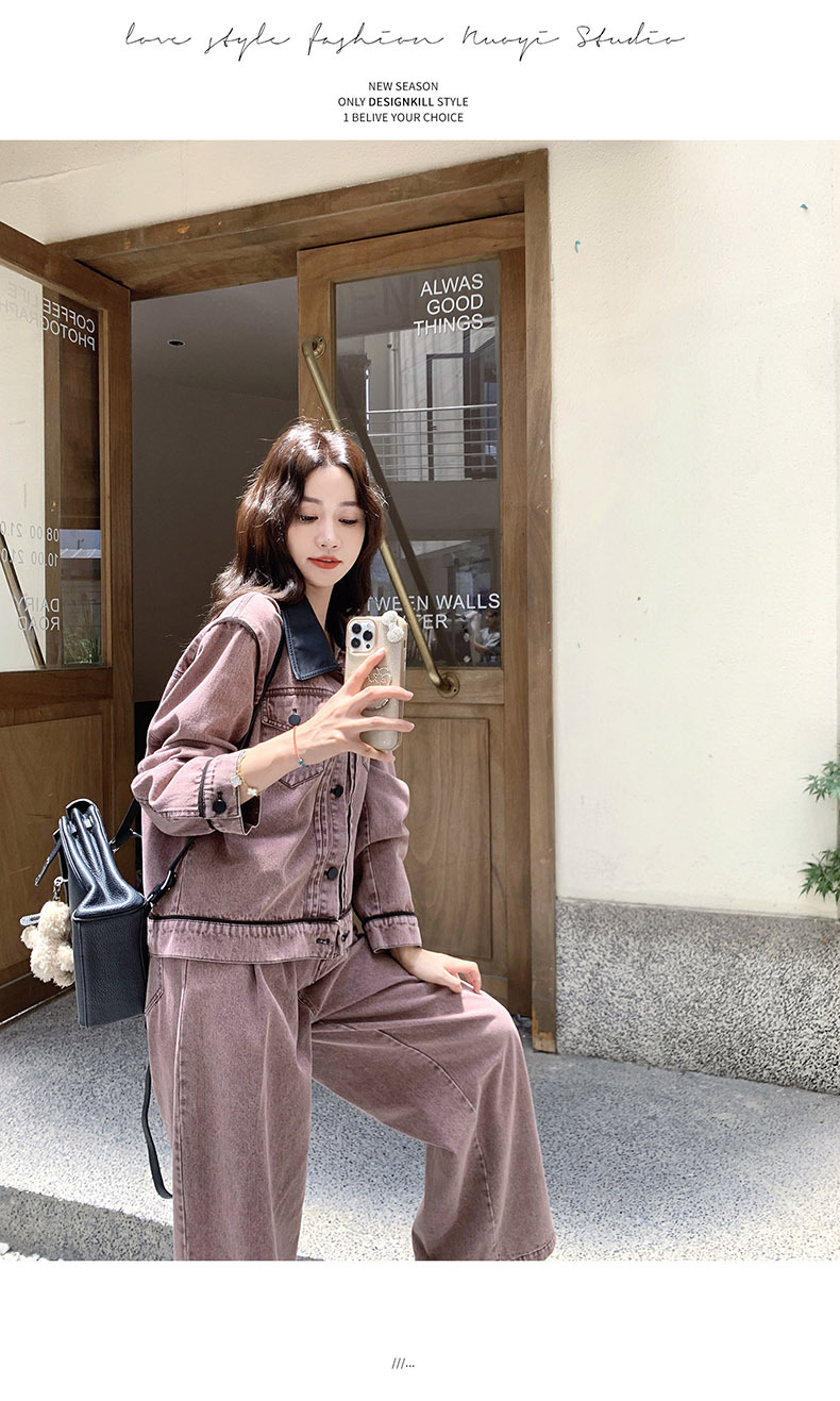 獨家訂製│2件式 撞色翻領牛仔外套+寬褲(02A1896)