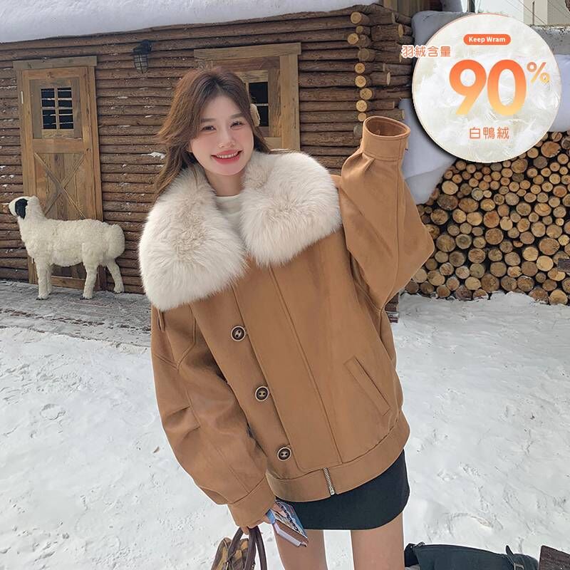 🔺面料:外層麂皮絨+仿兔毛絨+內層填充:90%白鴨絨