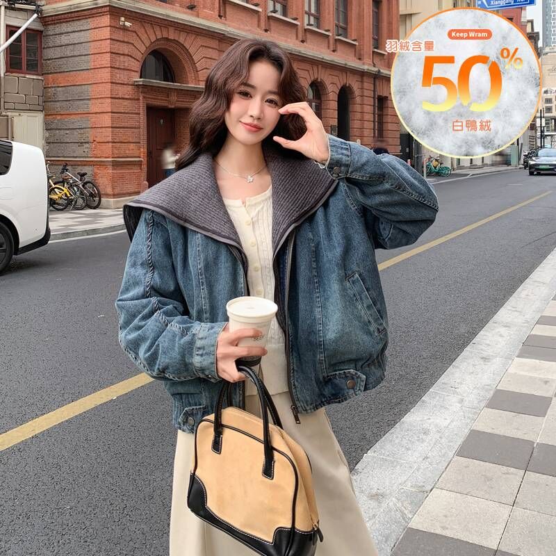 🔺面料:外層針織+牛仔+內層填充:50%白鴨絨