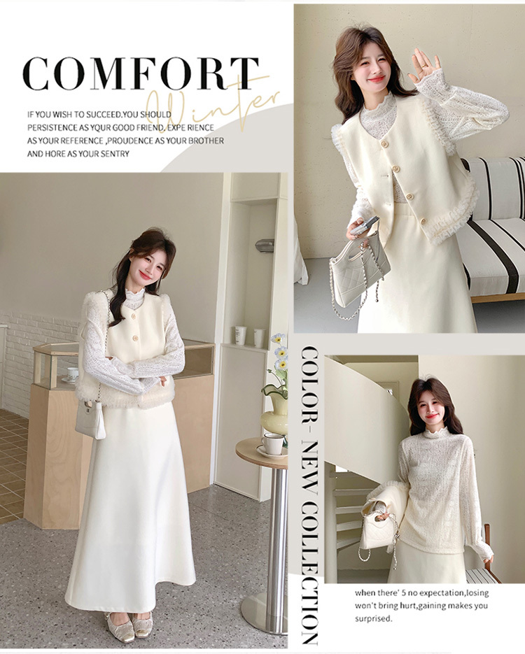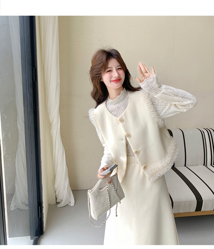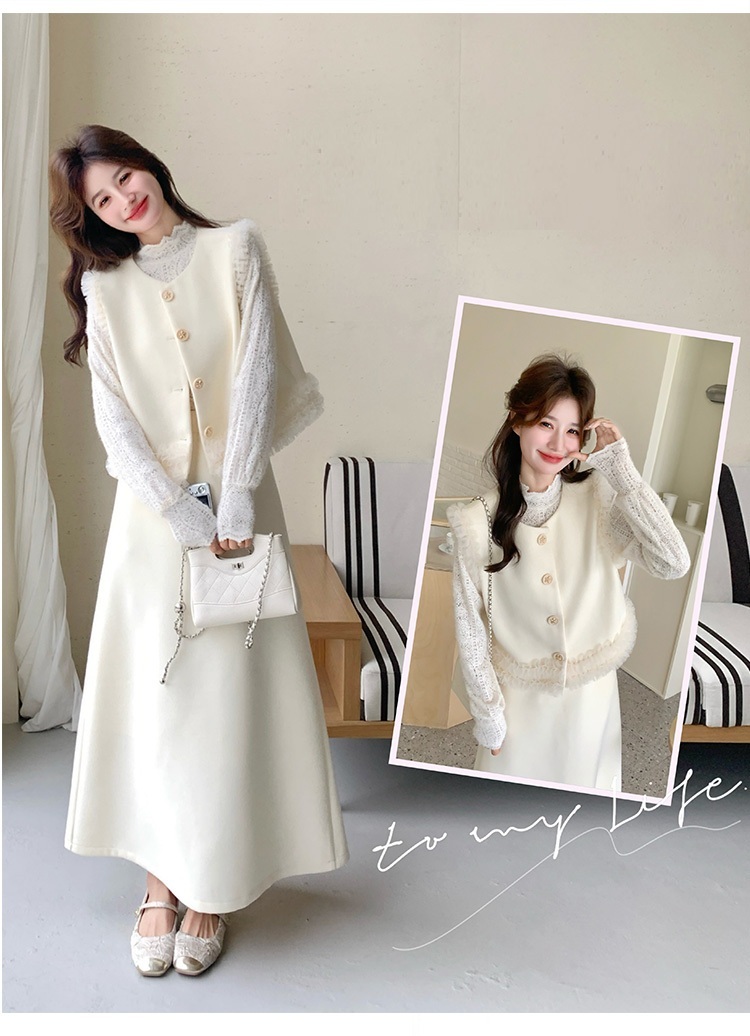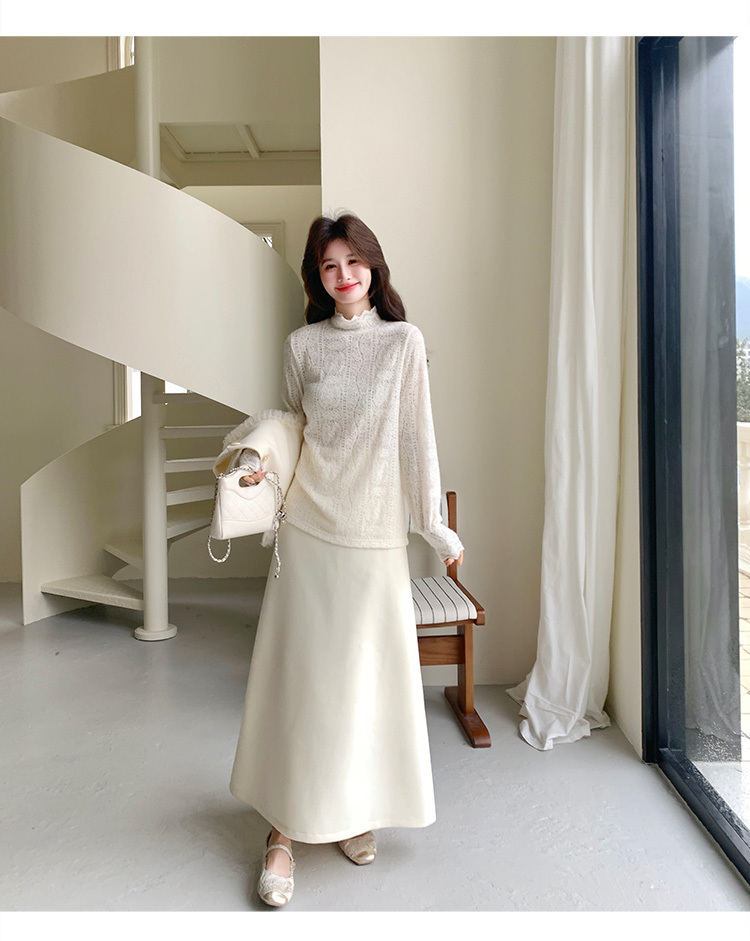 🔺面料:蕾絲+毛呢+聚酯纖維