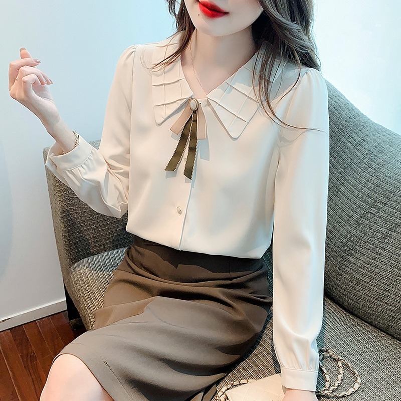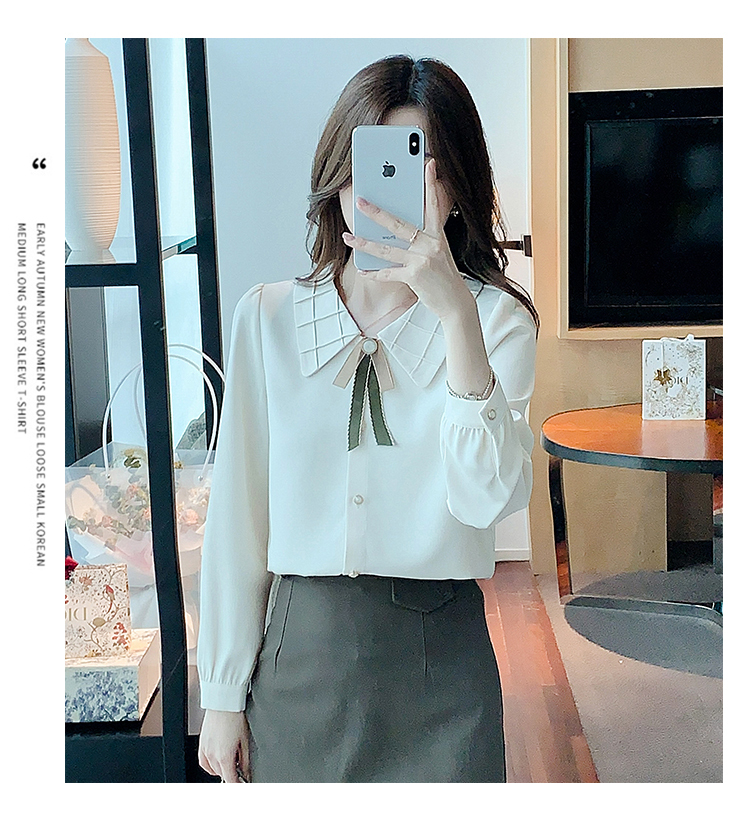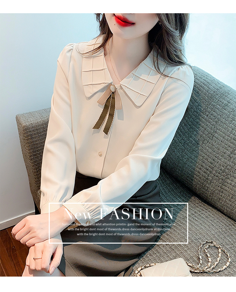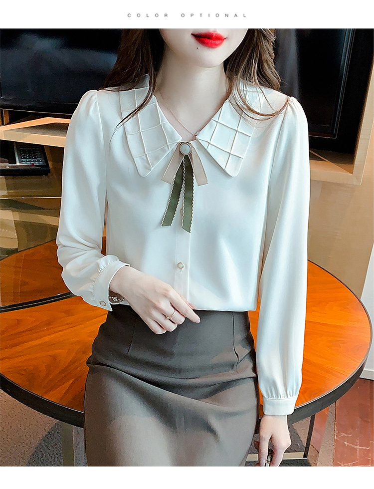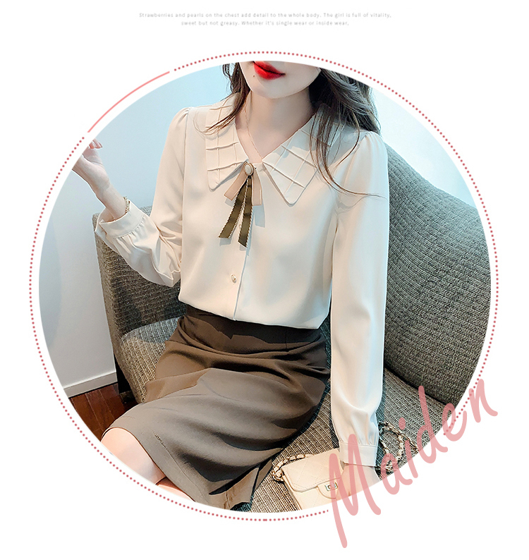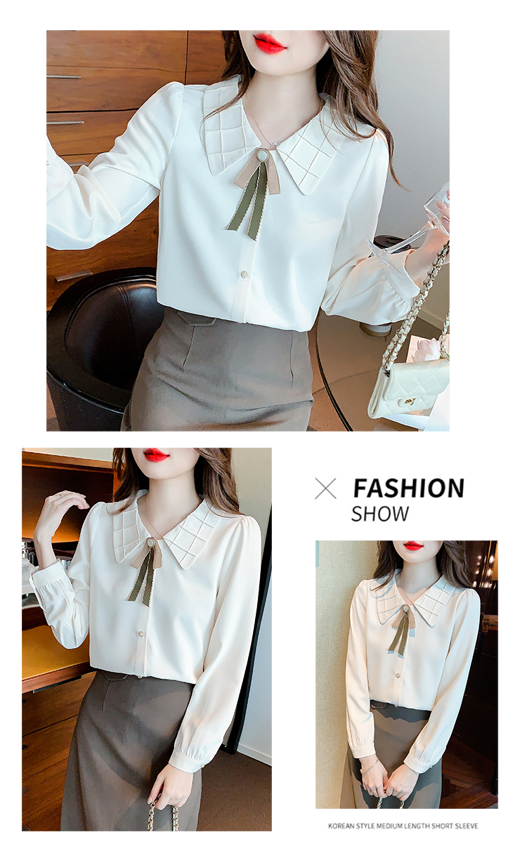 限量特惠|甜美壓紋娃娃領飄帶雪紡衫(02M2336)