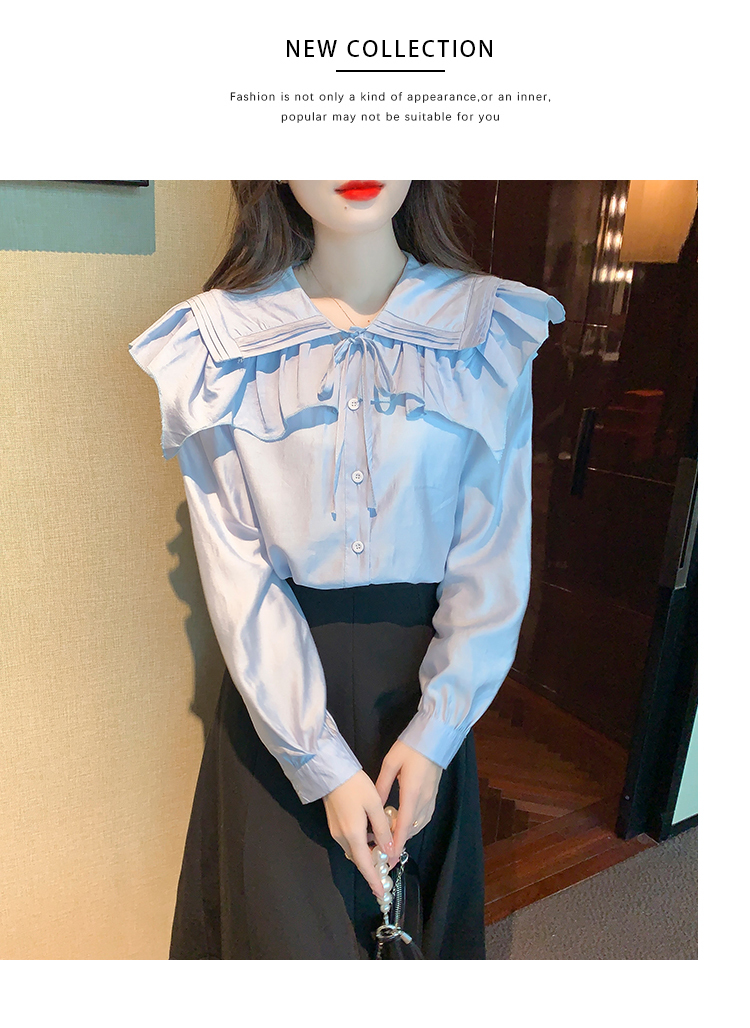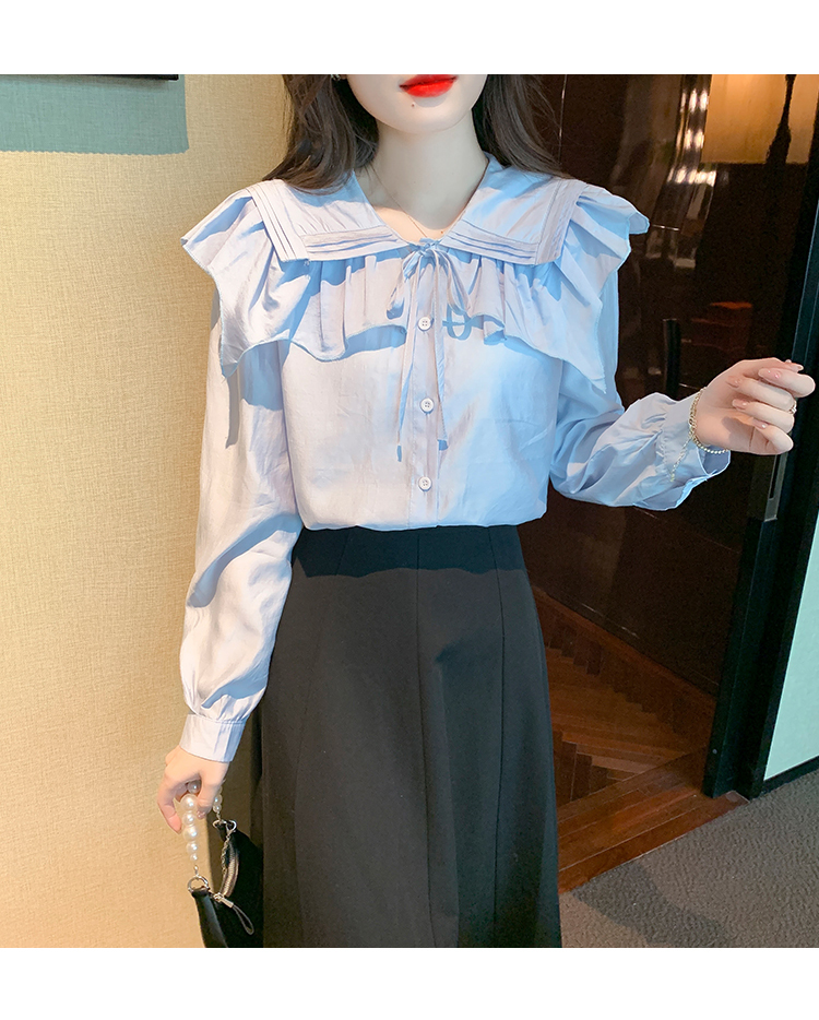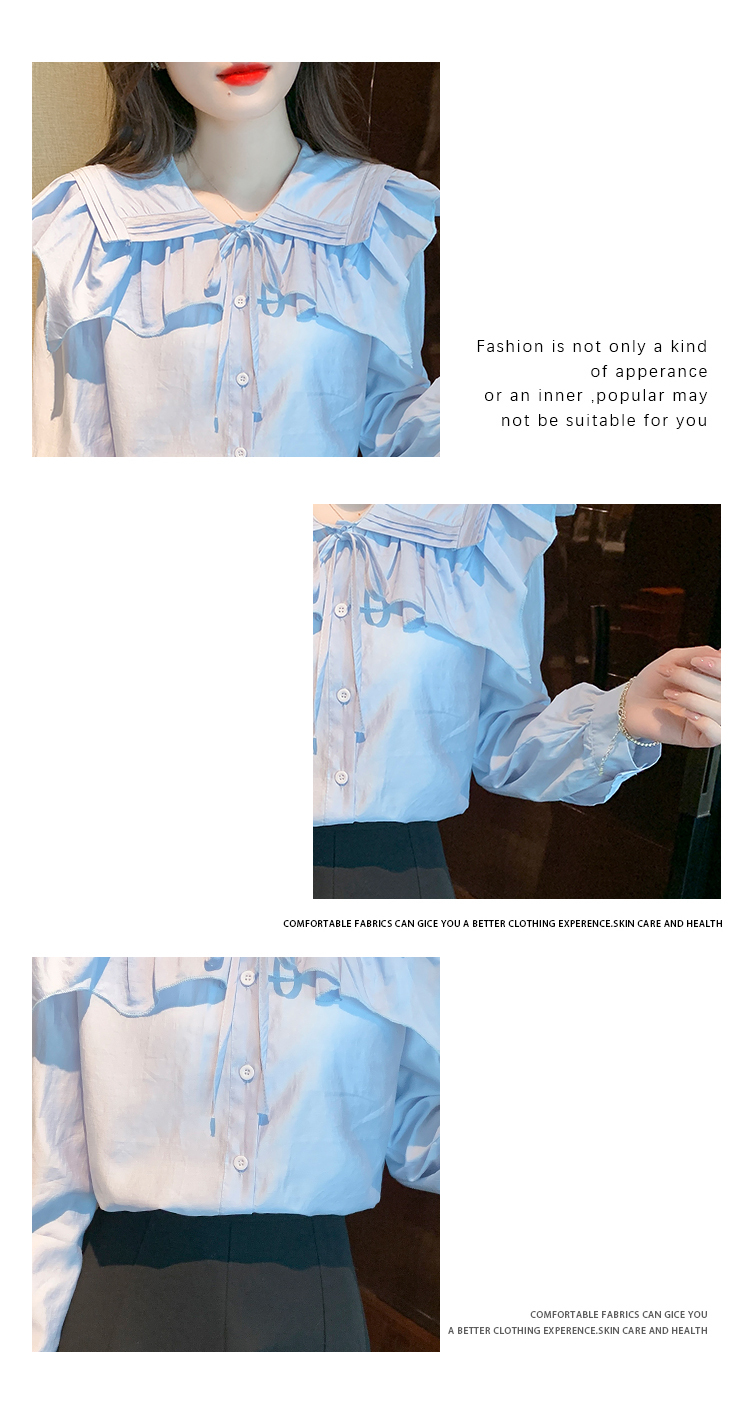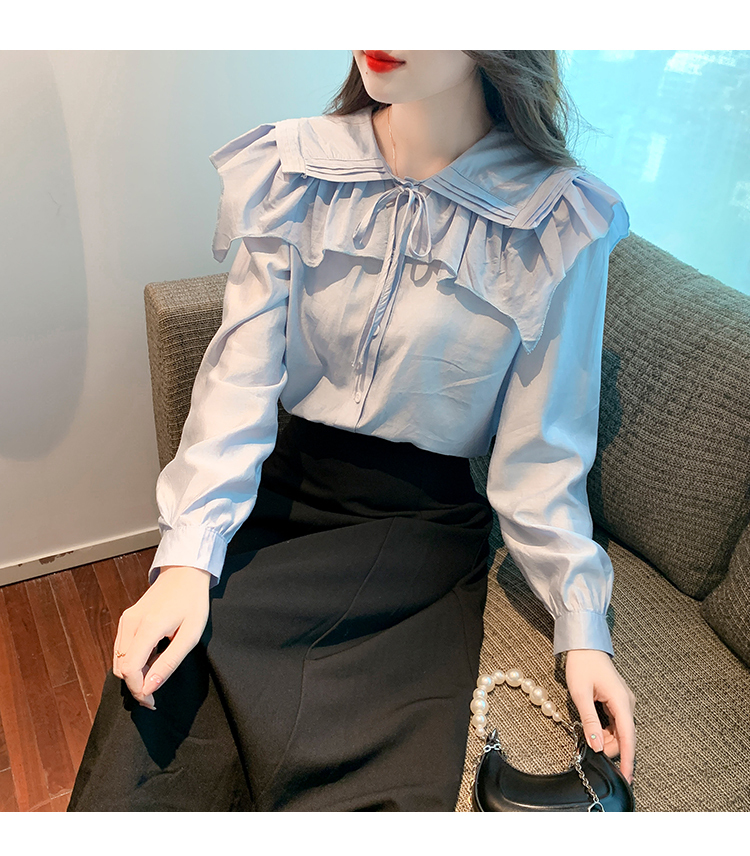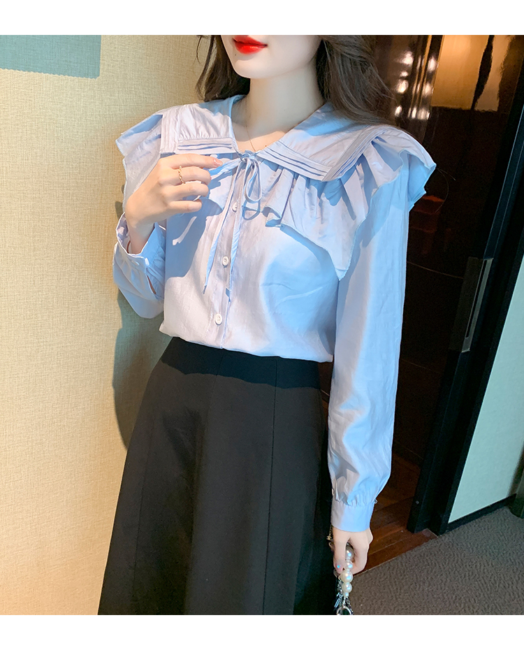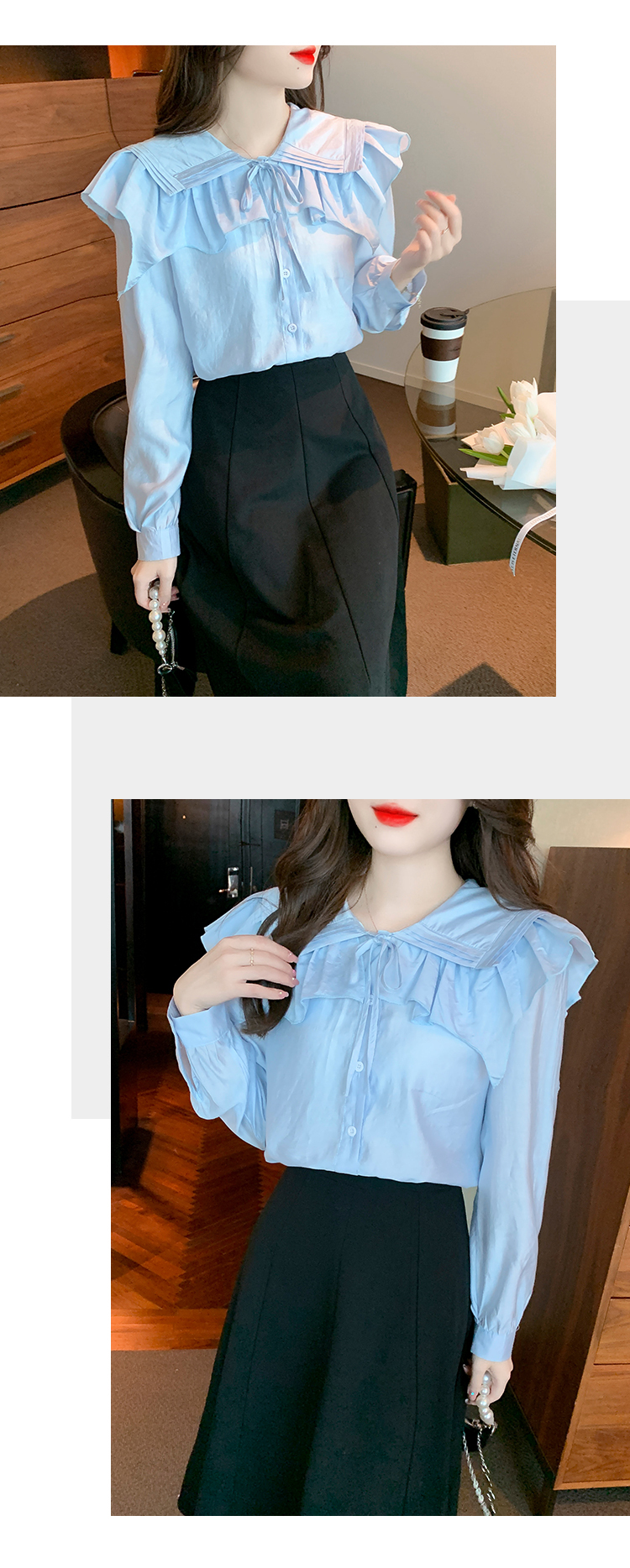限量特惠|知性娃娃領繫帶荷葉邊雪紡衫(02M2337)