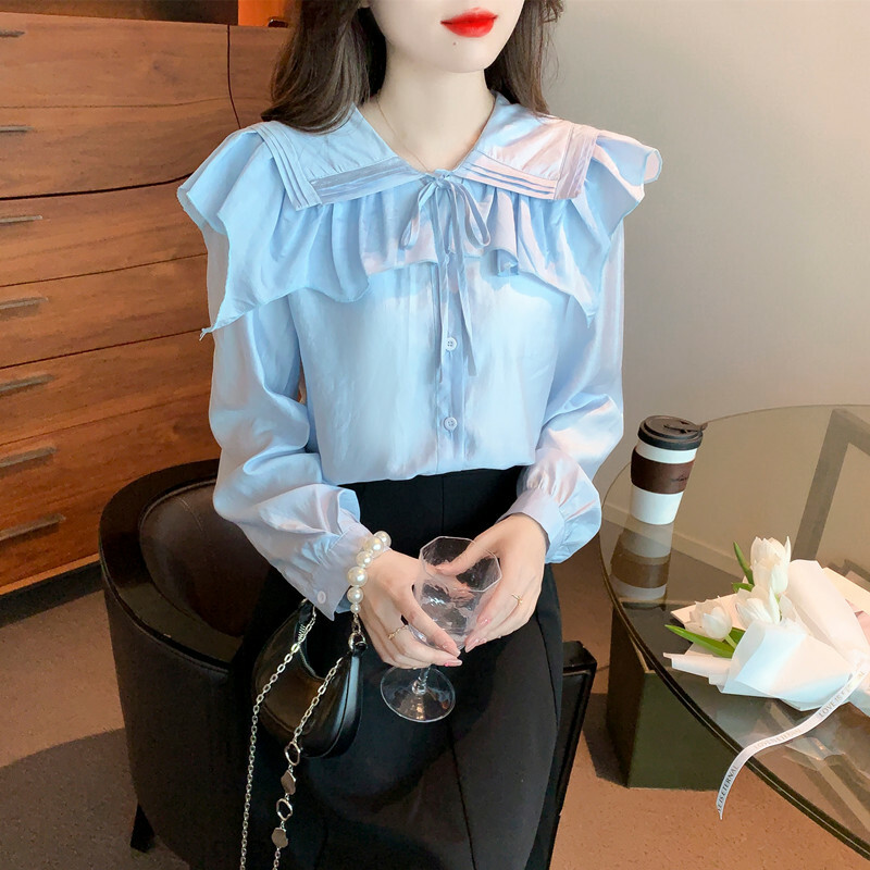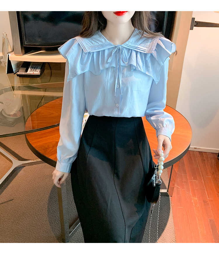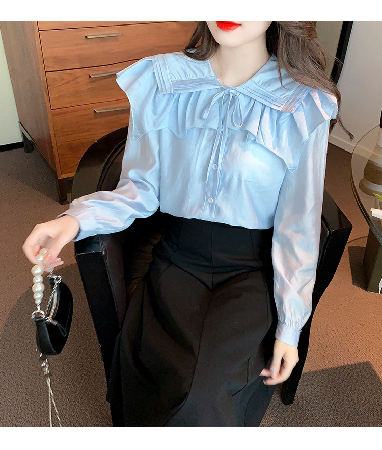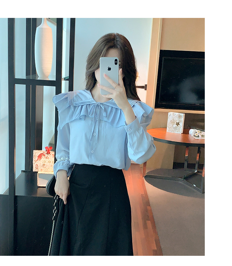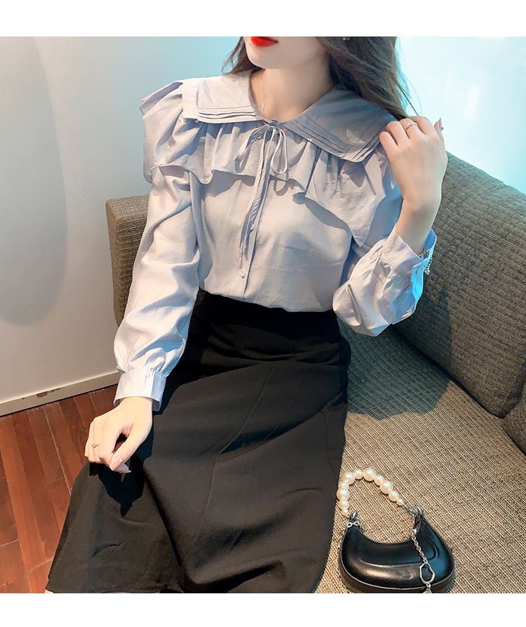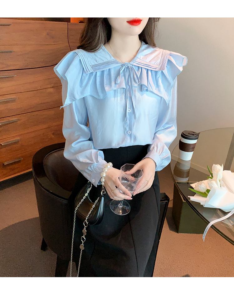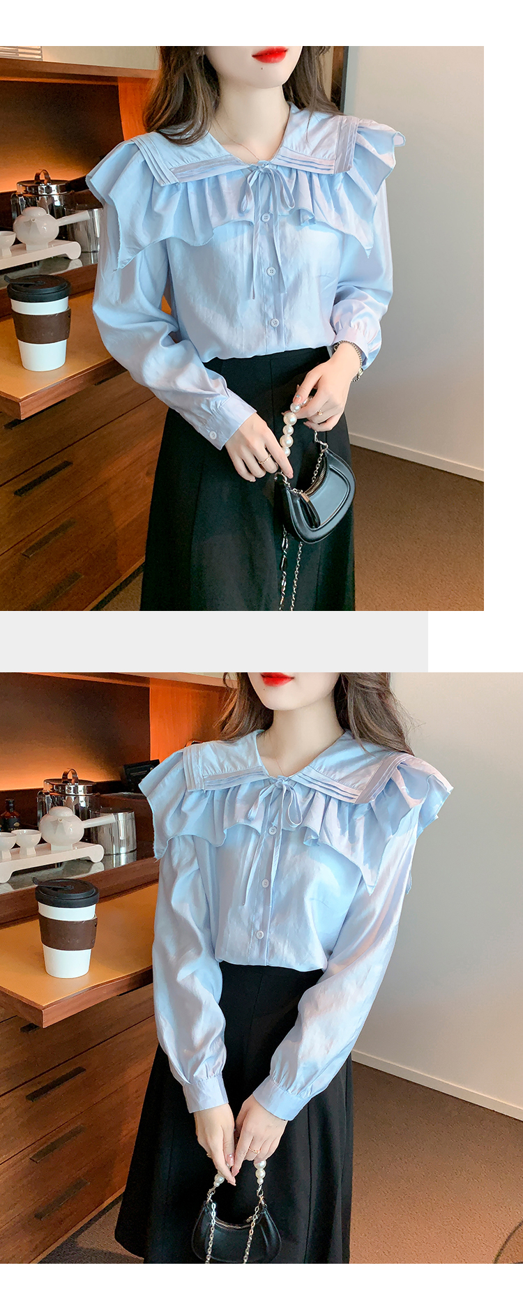 限量特惠|知性娃娃領繫帶荷葉邊雪紡衫(02M2337)