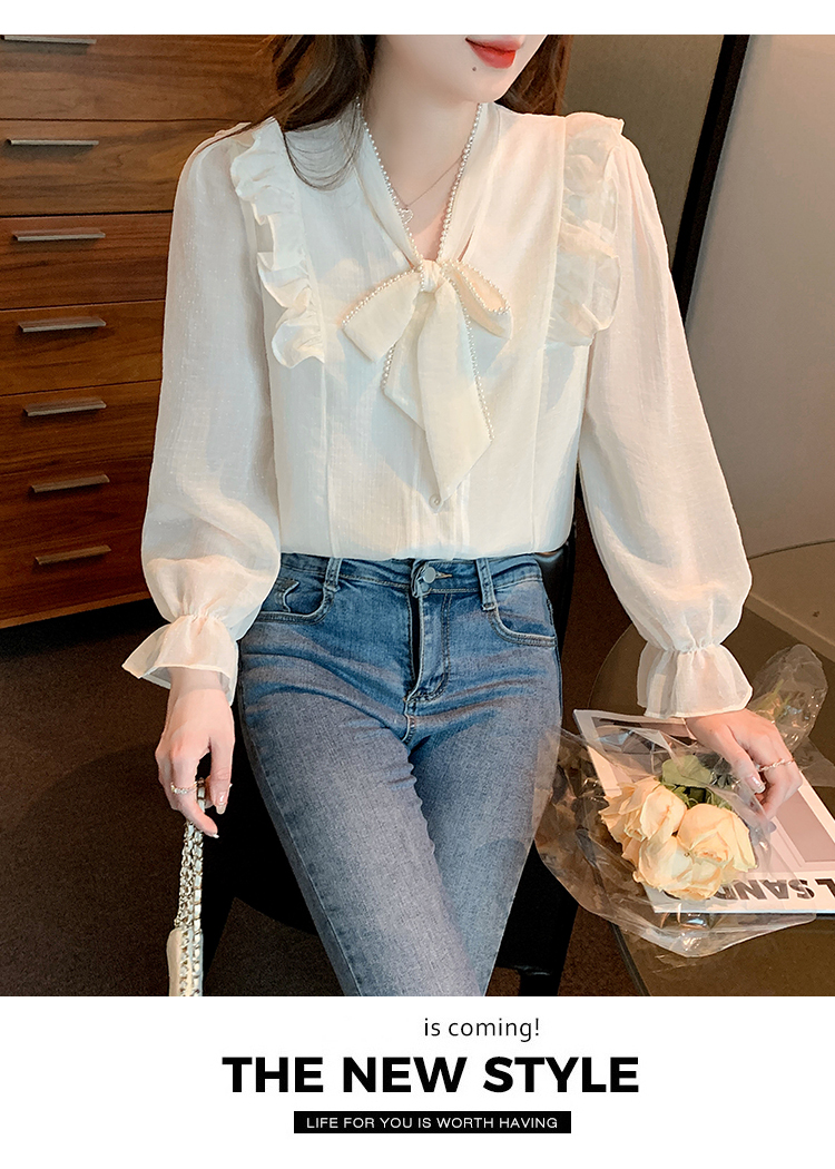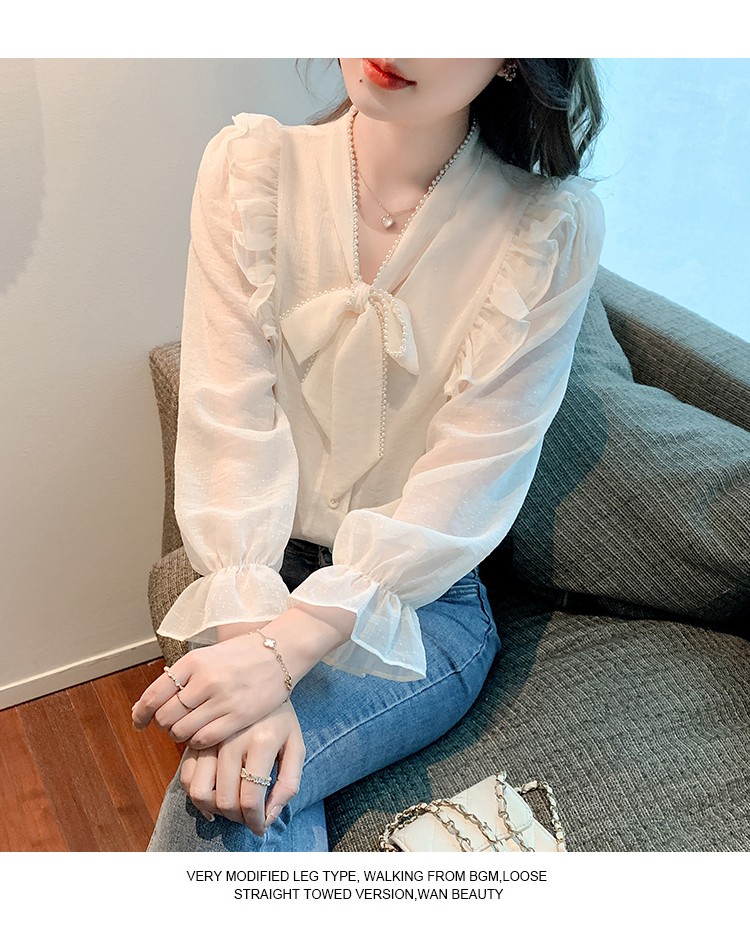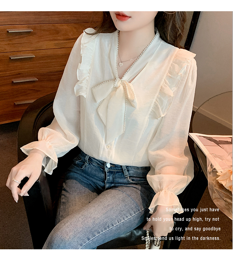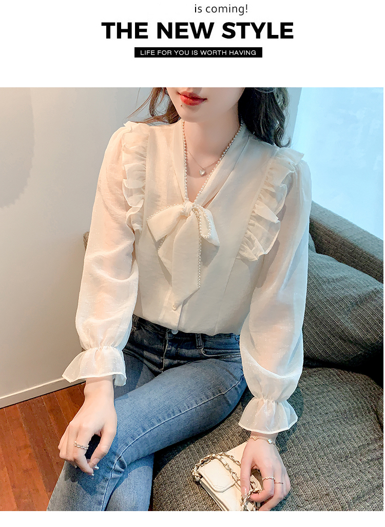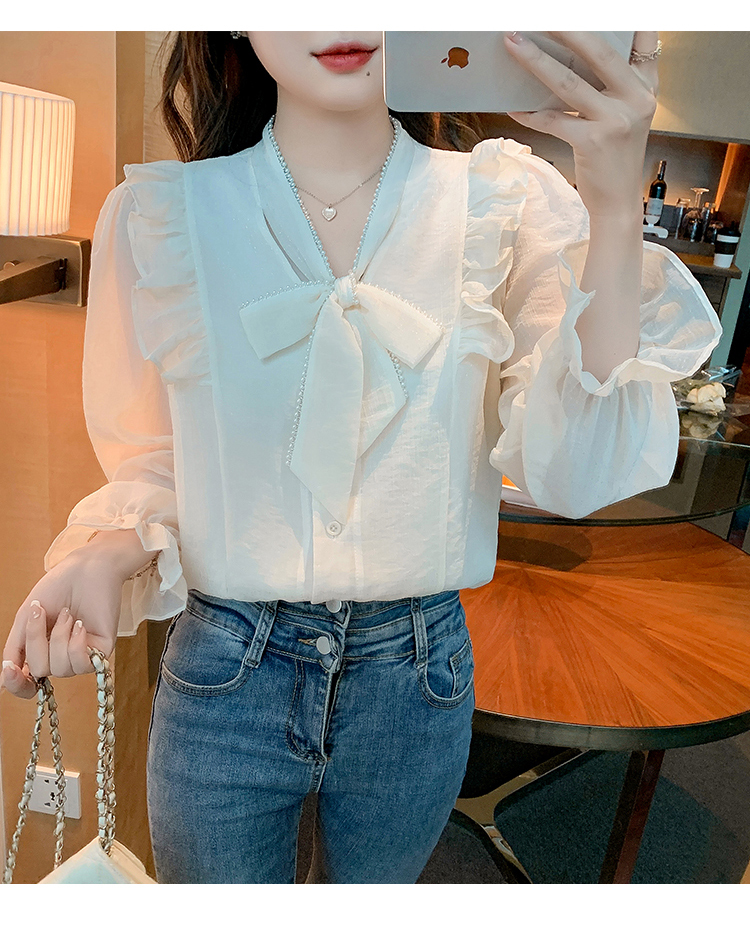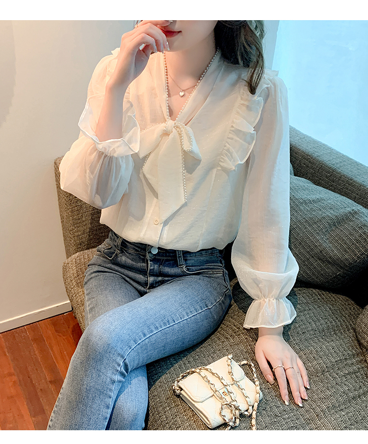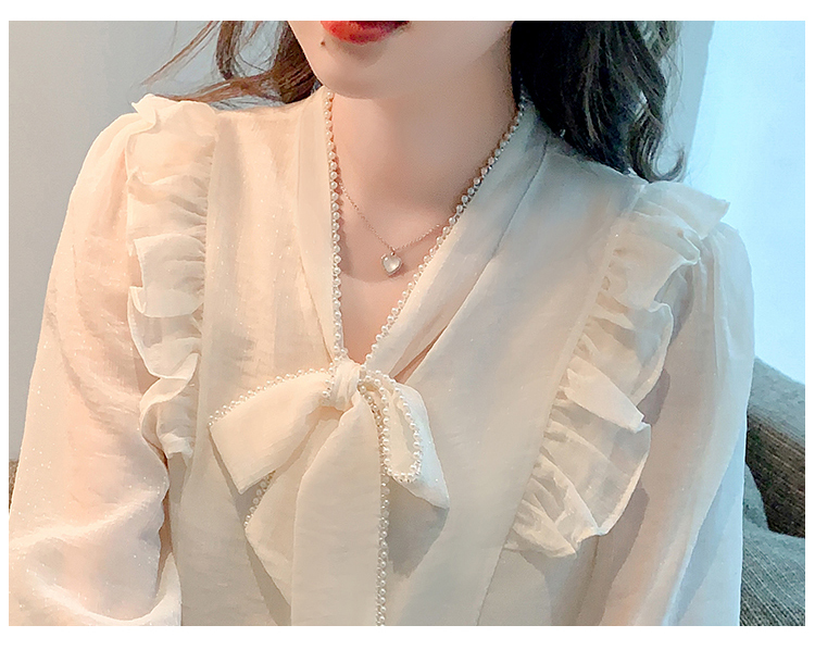 限量特惠|氣質木耳邊繫帶釘珠雪紡衫(02M2341)