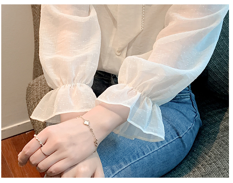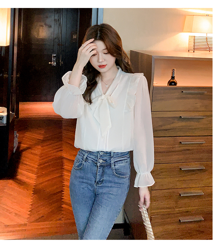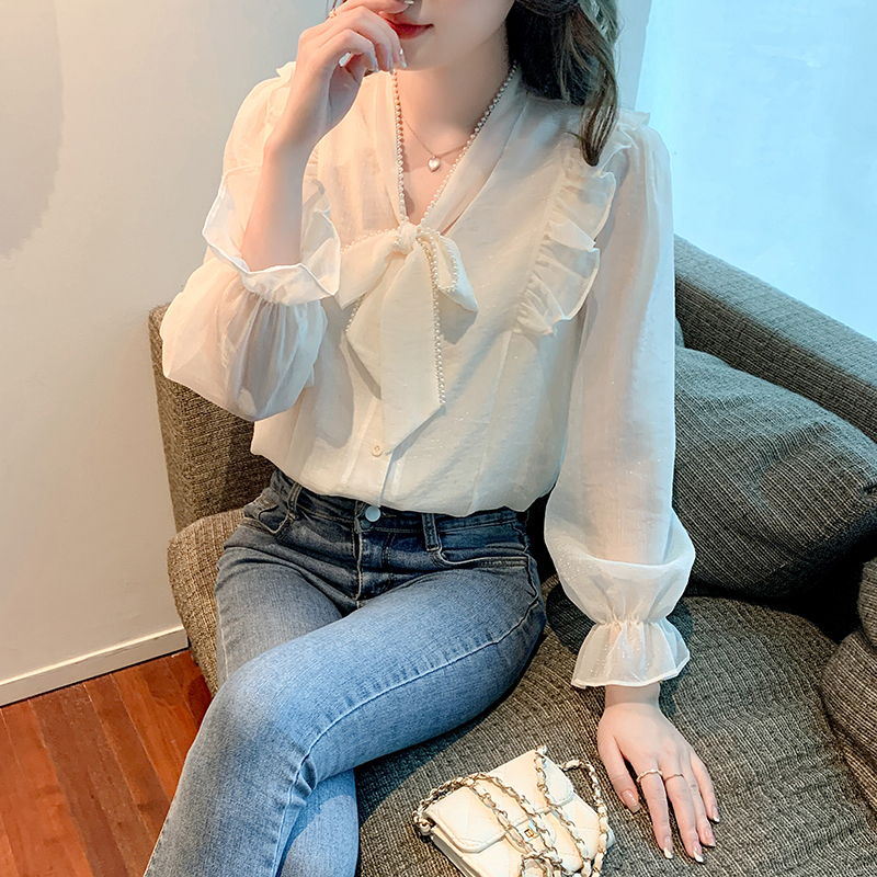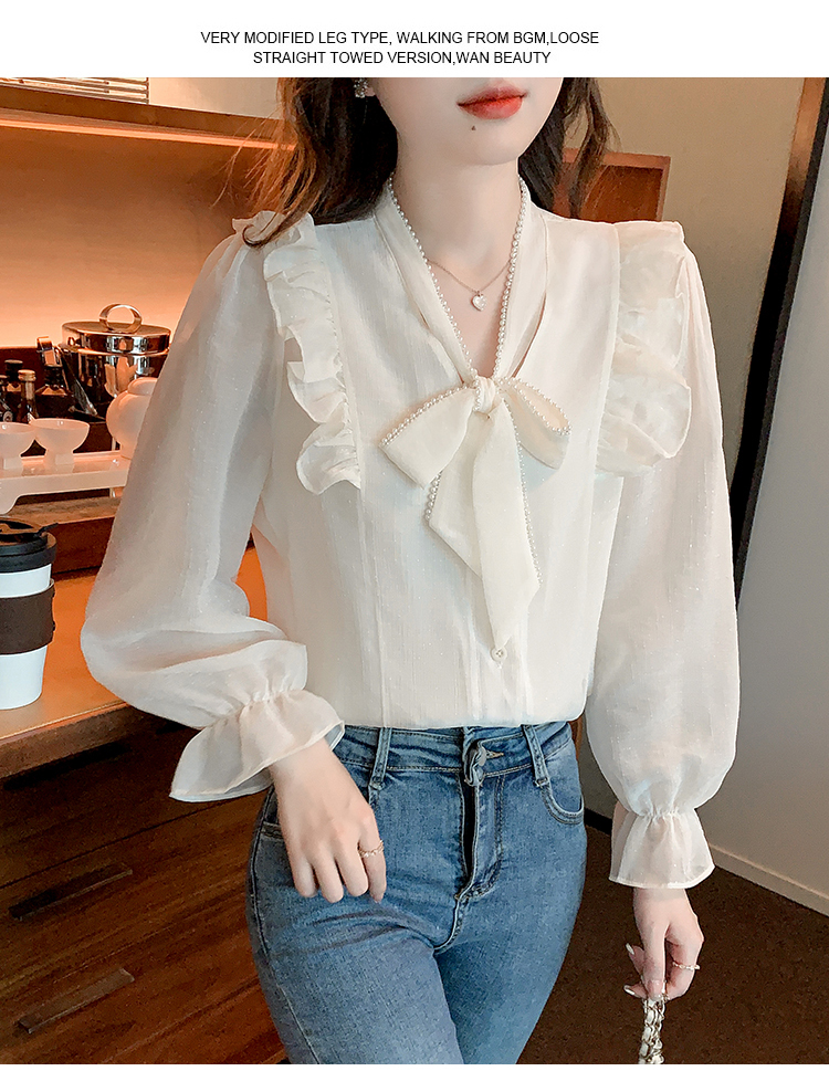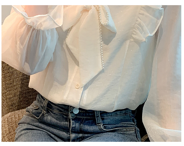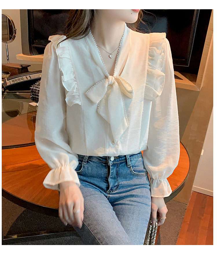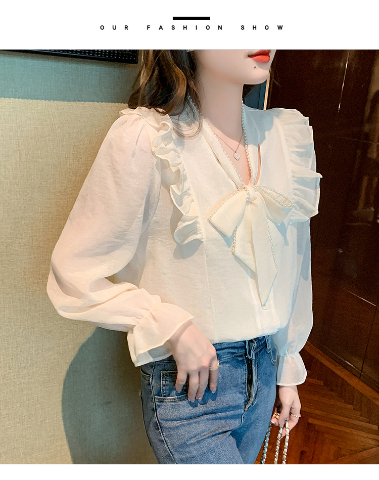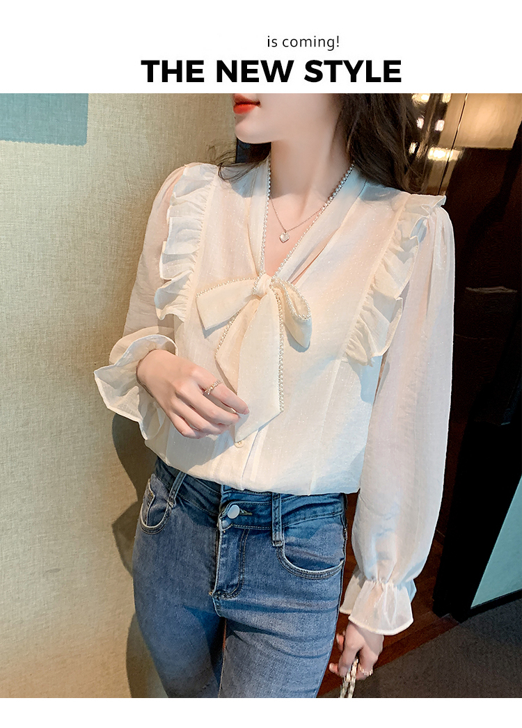 限量特惠|氣質木耳邊繫帶釘珠雪紡衫(02M2341)