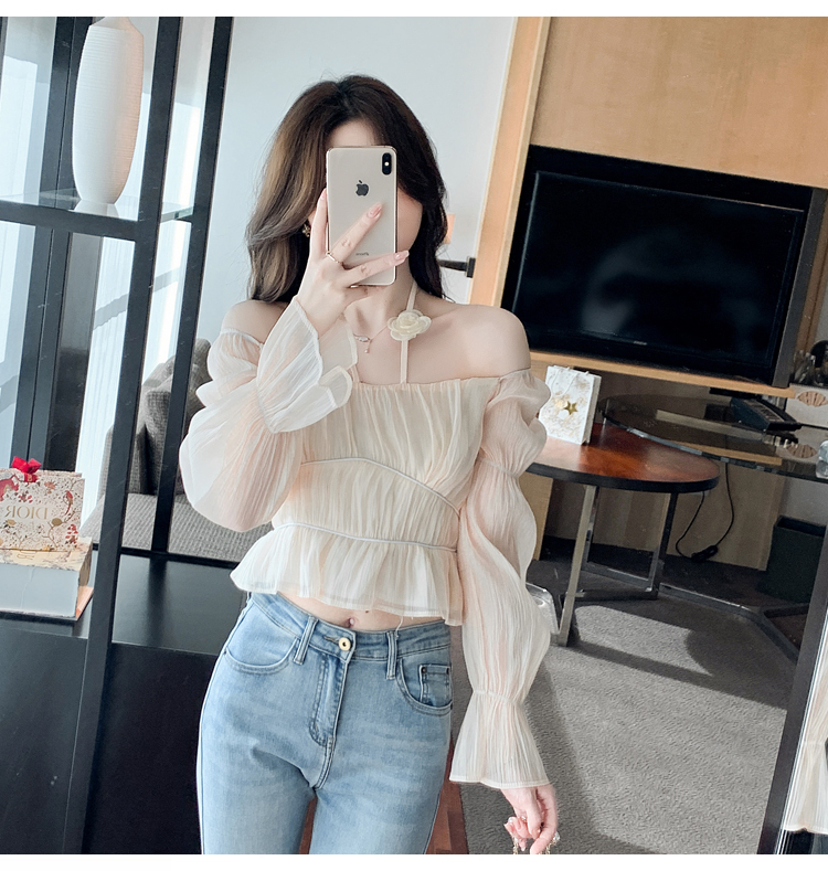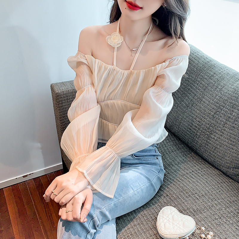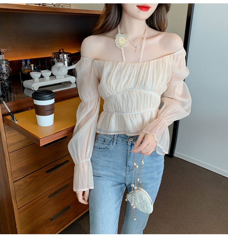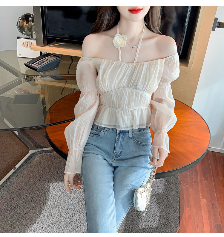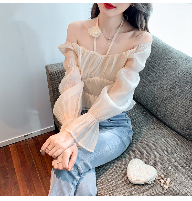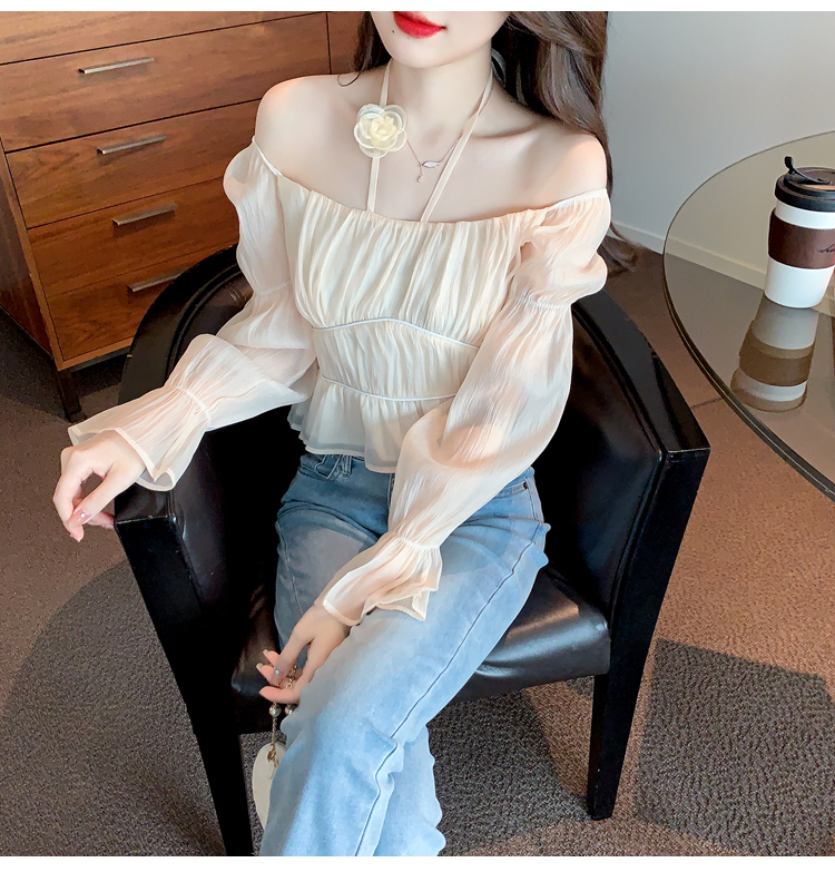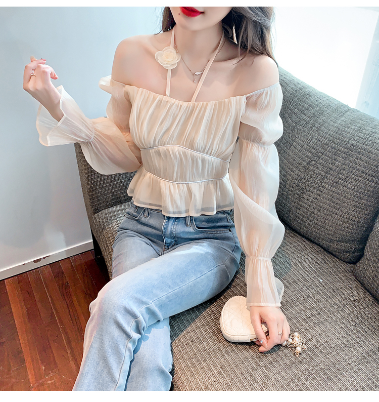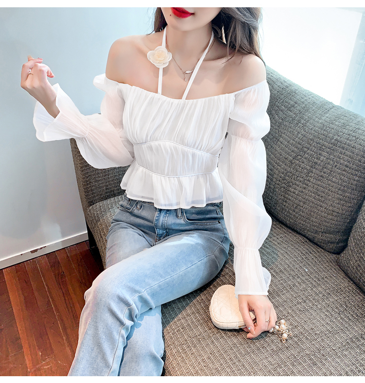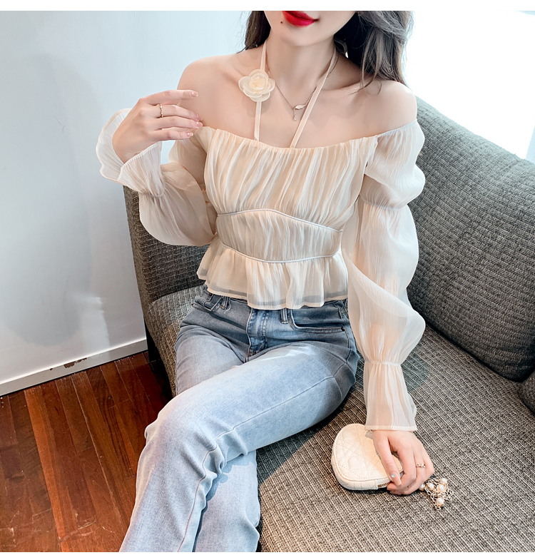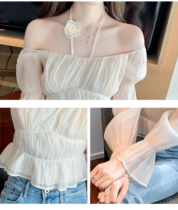 限量特惠|性感純慾一字領立體花朵掛脖雪紡衫-3色(02M2351)