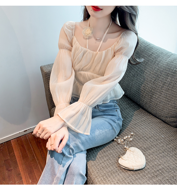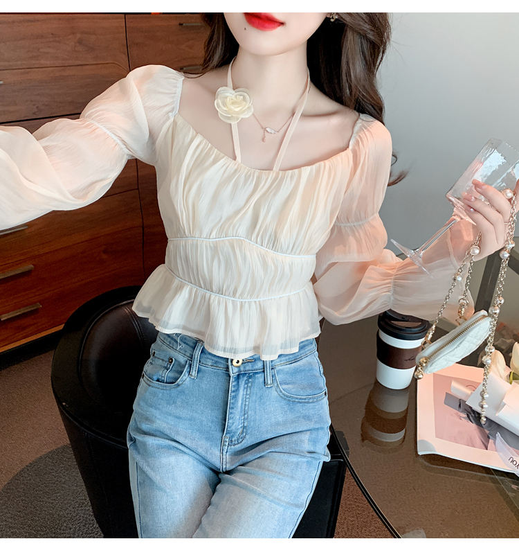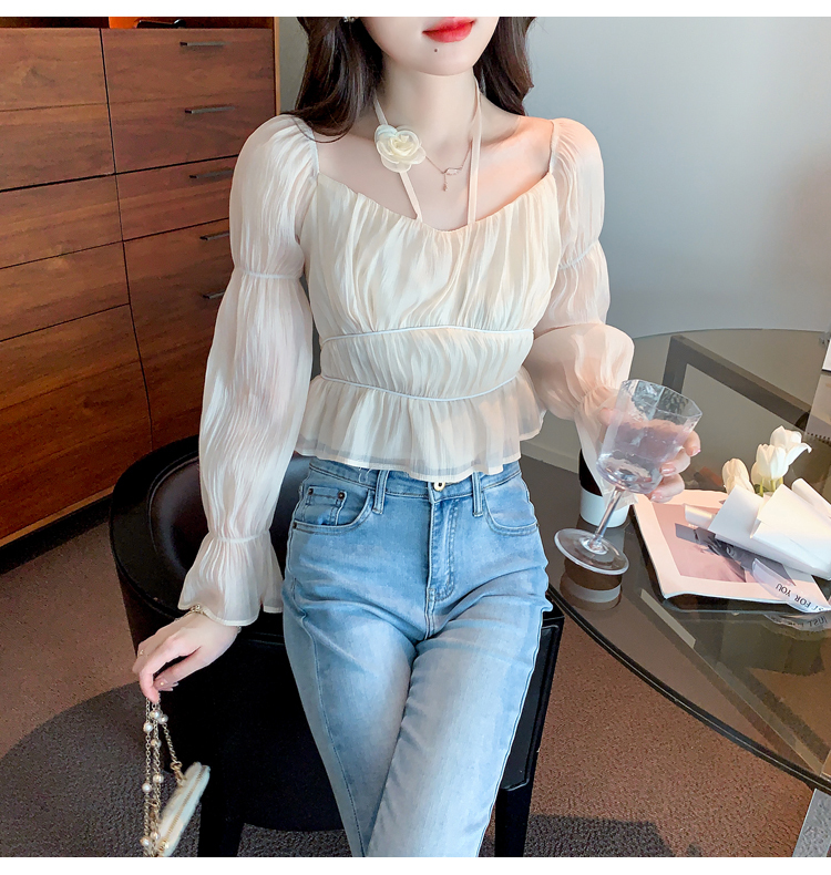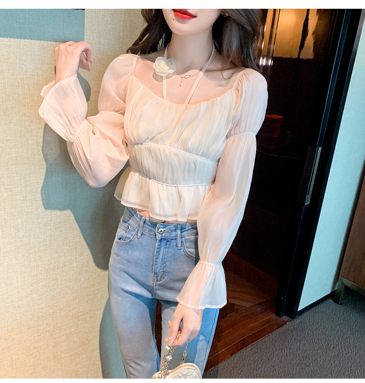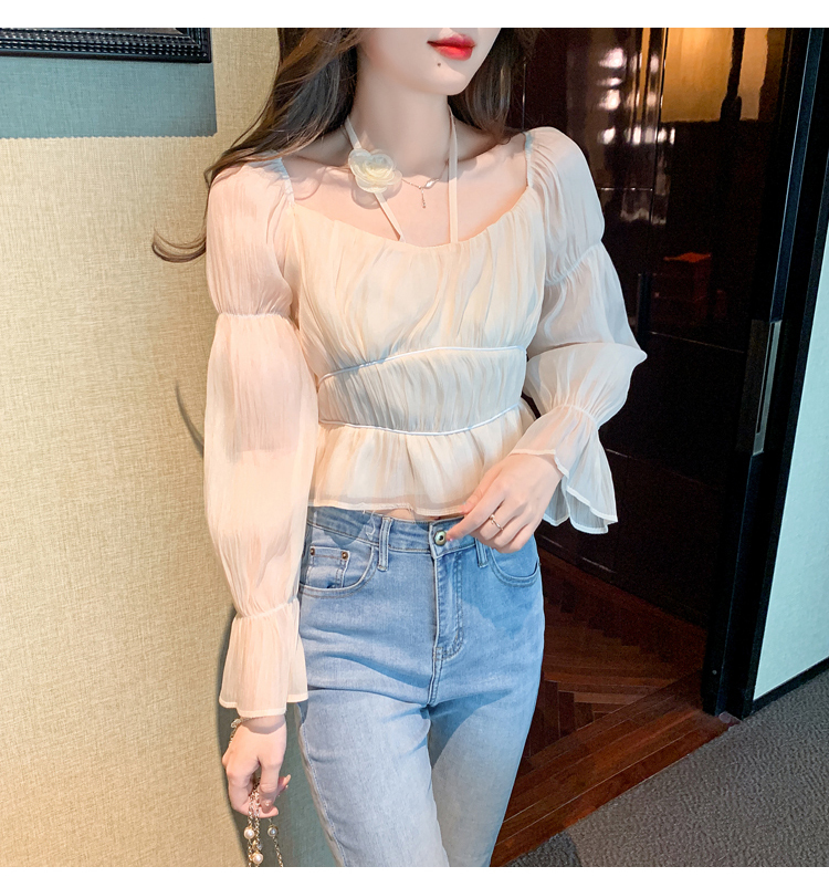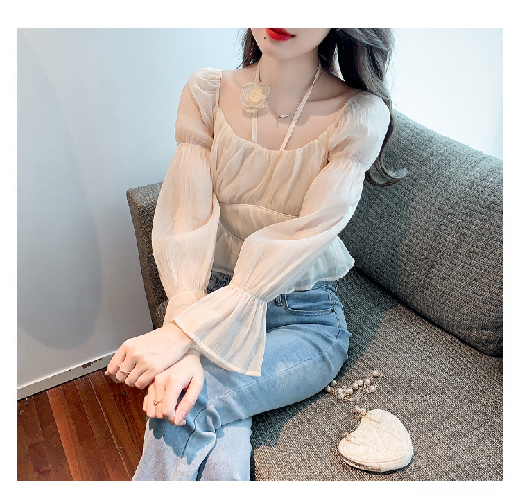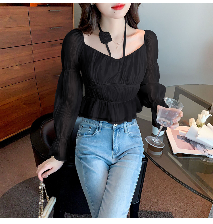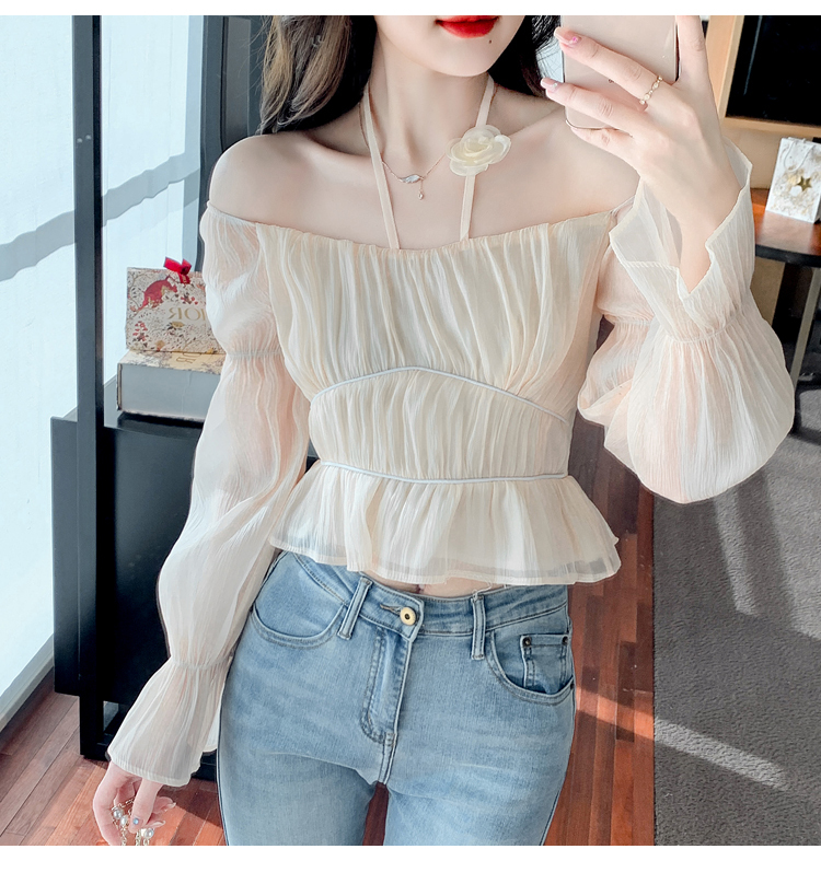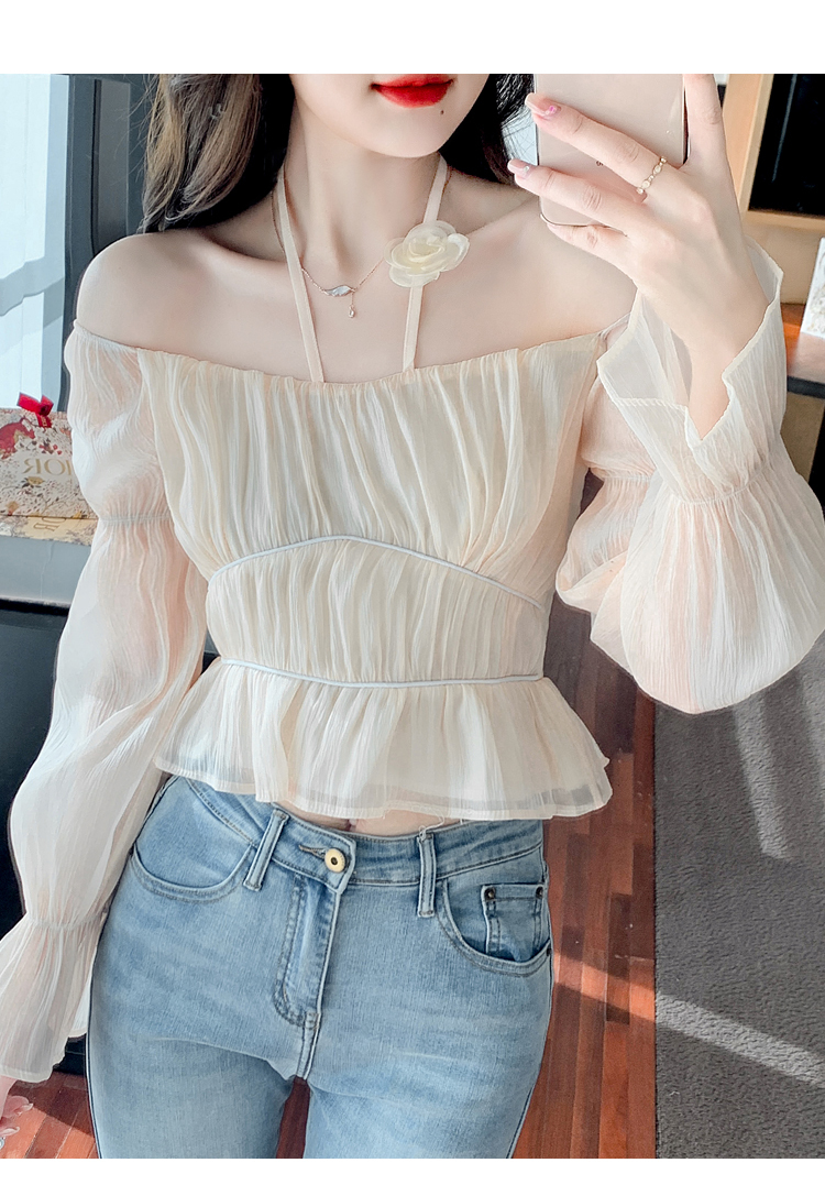 限量特惠|性感純慾一字領立體花朵掛脖雪紡衫-3色(02M2351)