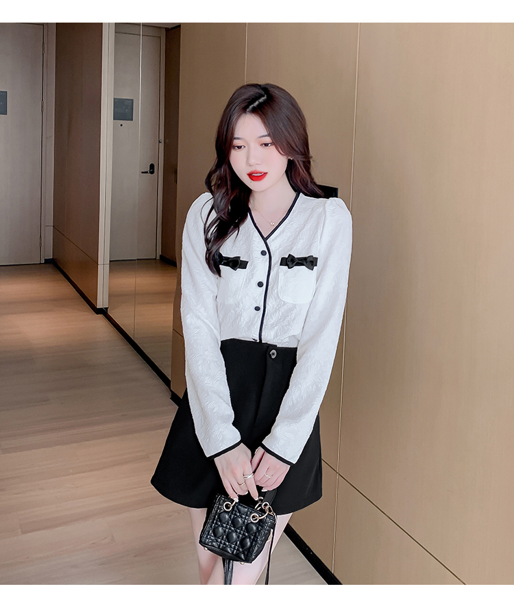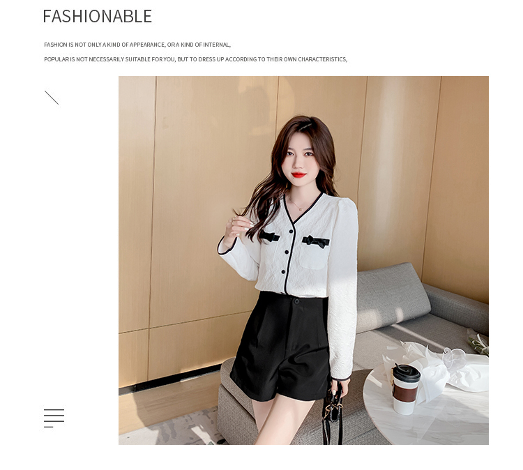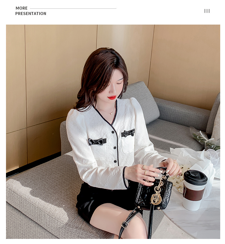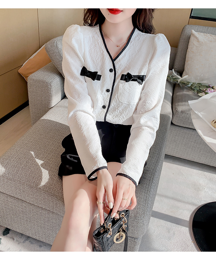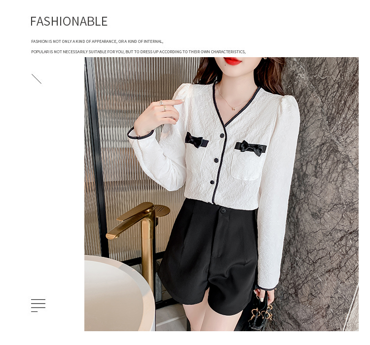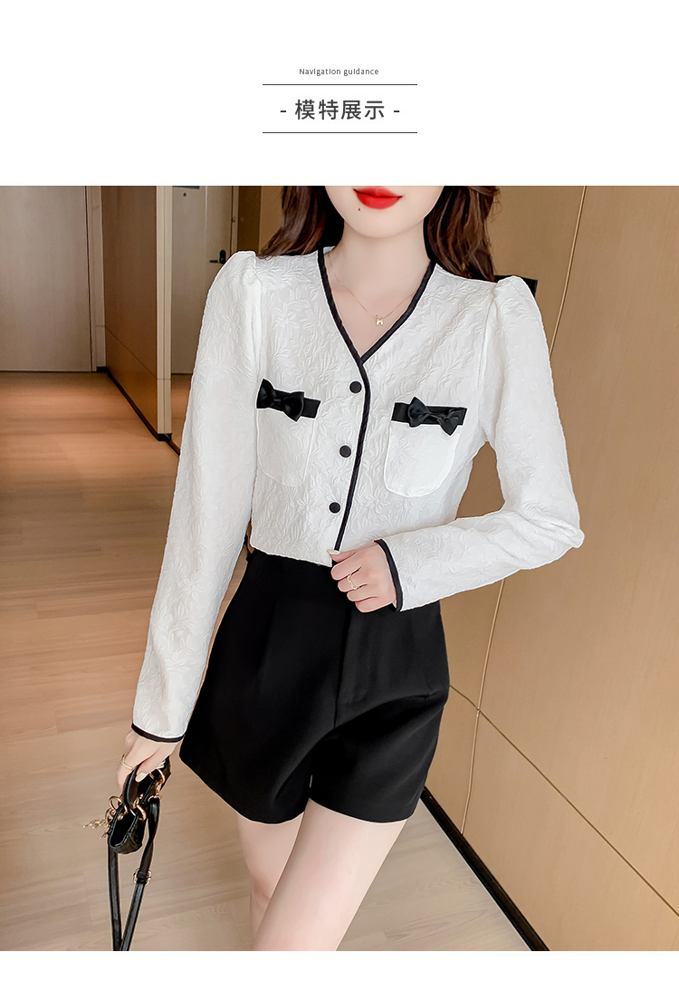 限量特惠|氣質V領撞色蝴蝶結壓紋雪紡衫(02M2387)