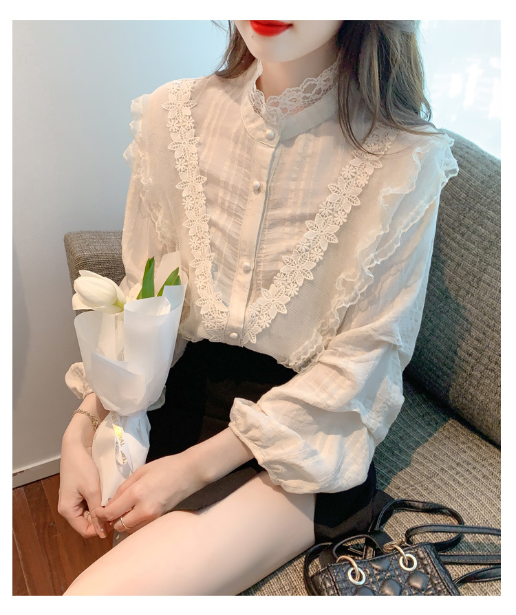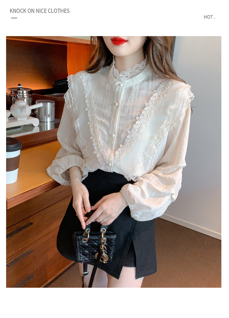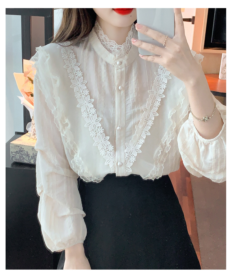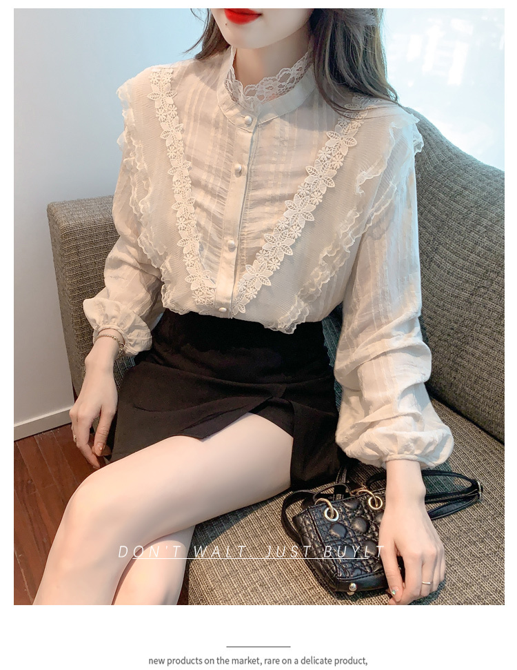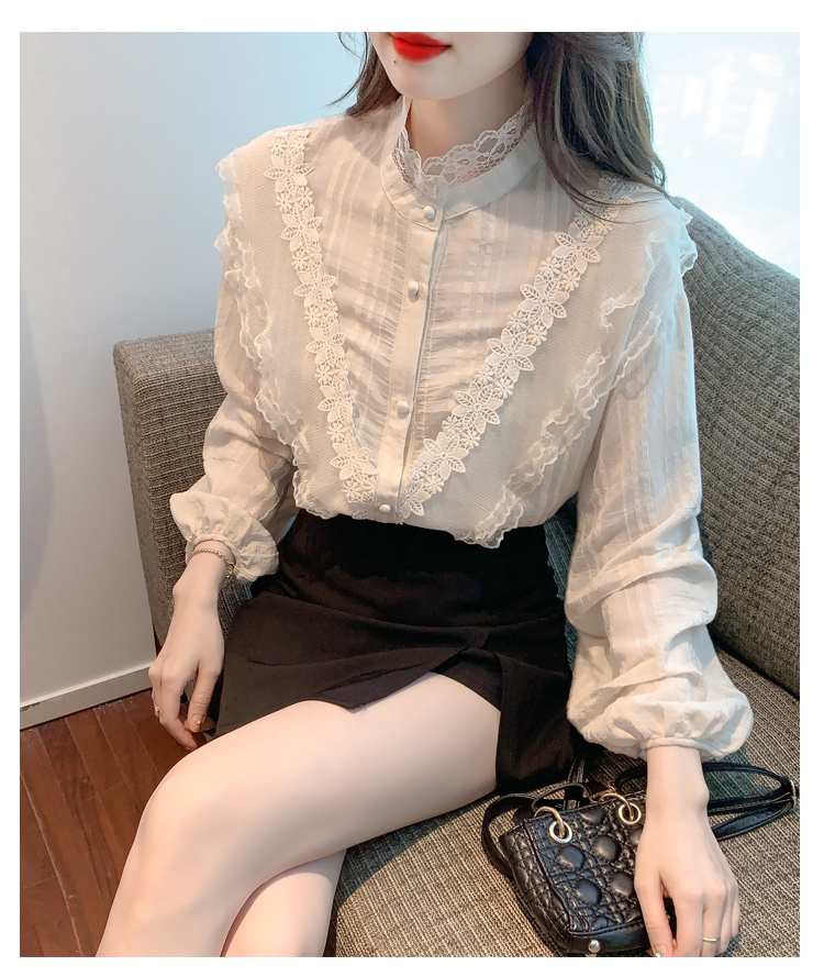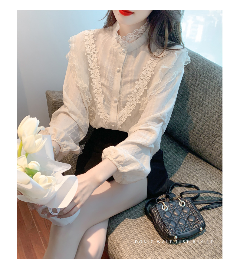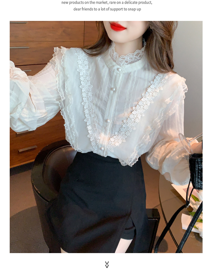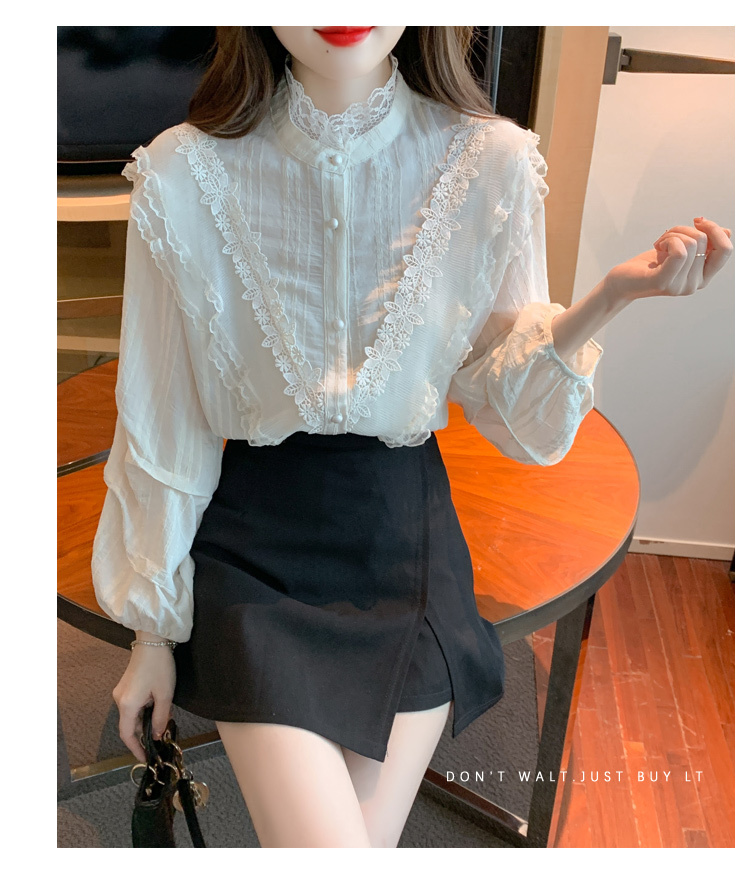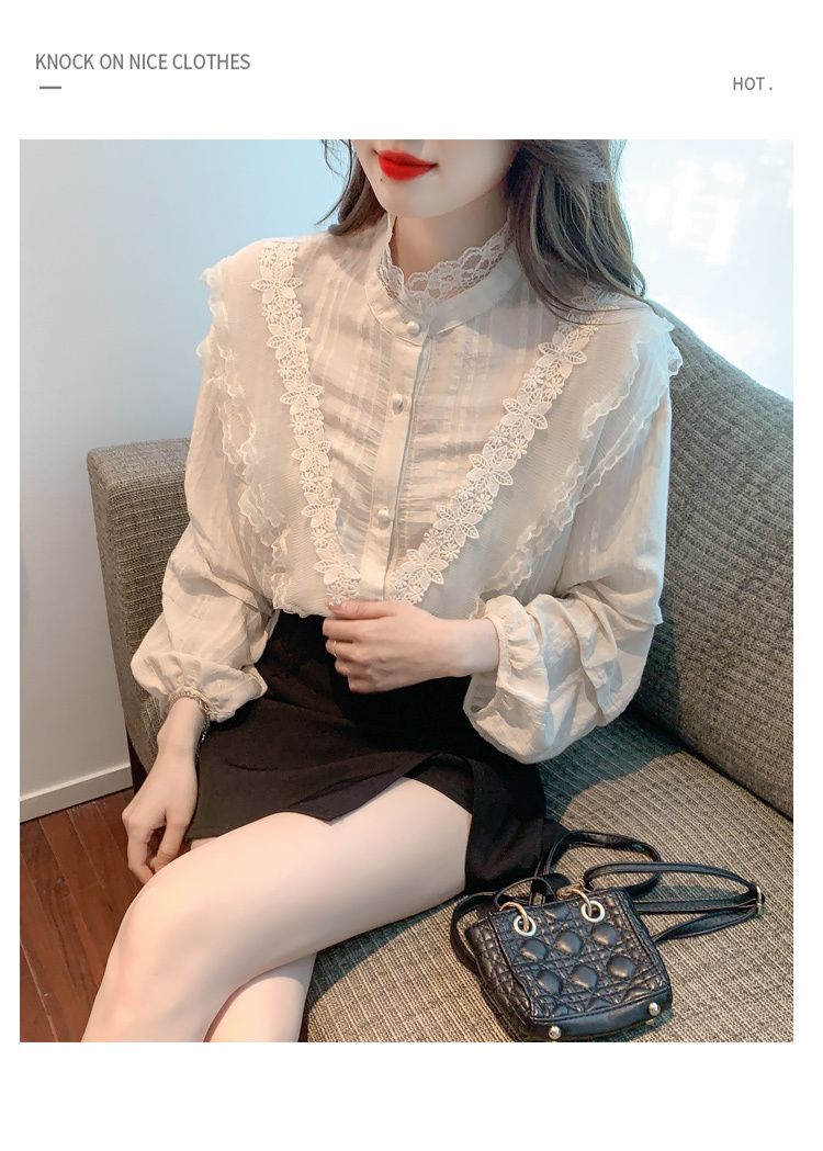 限量特惠|氣質鈎花蕾絲拼接立領雪紡衫(02M2394)