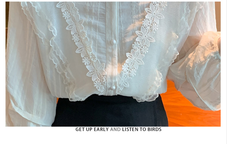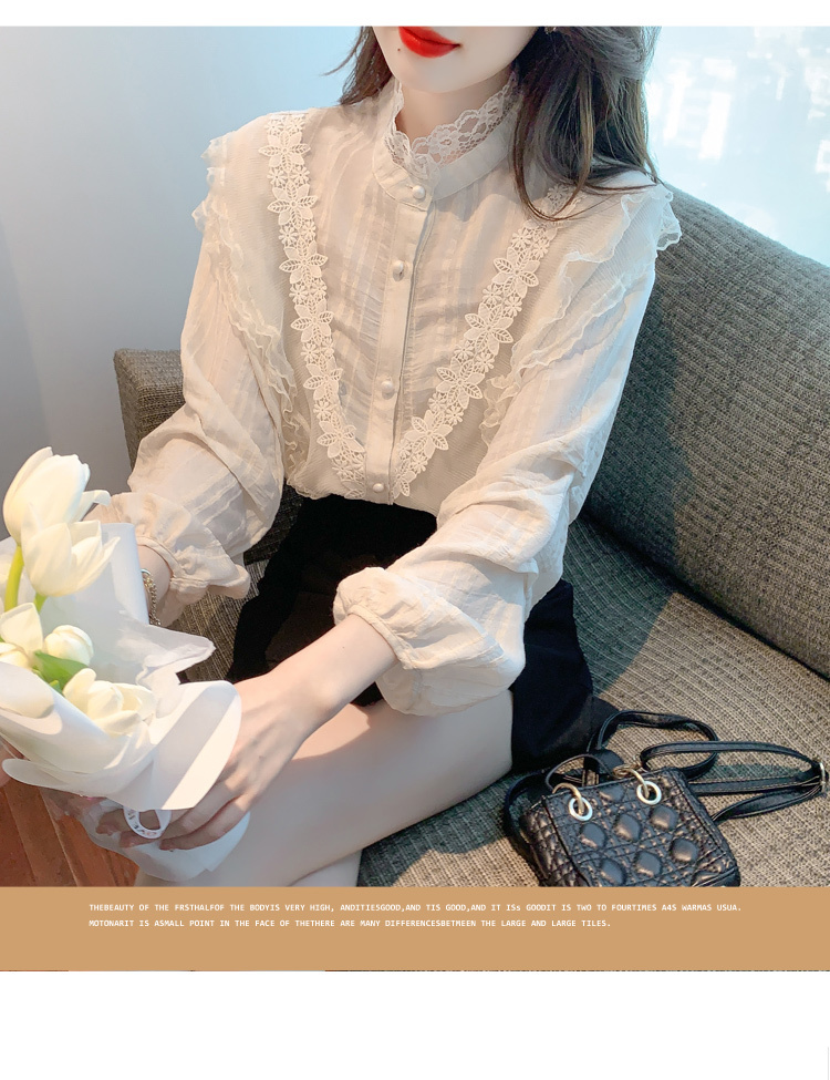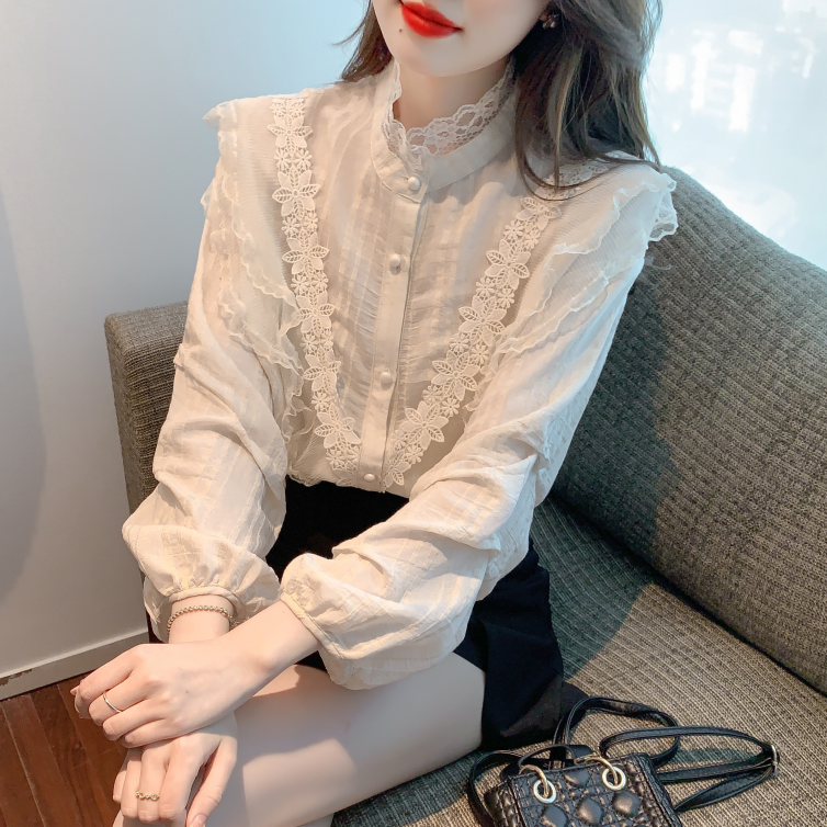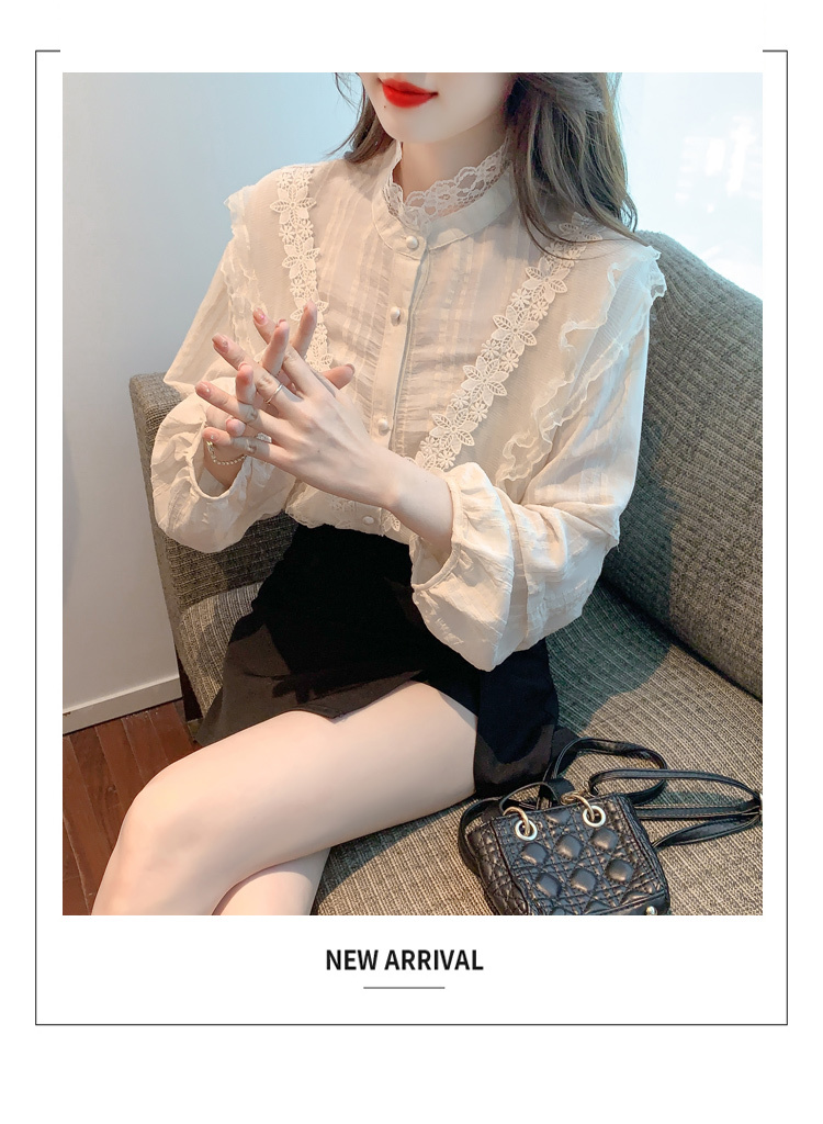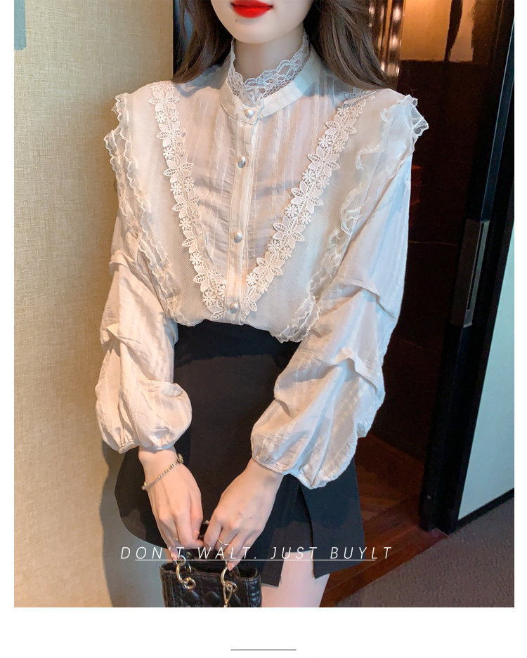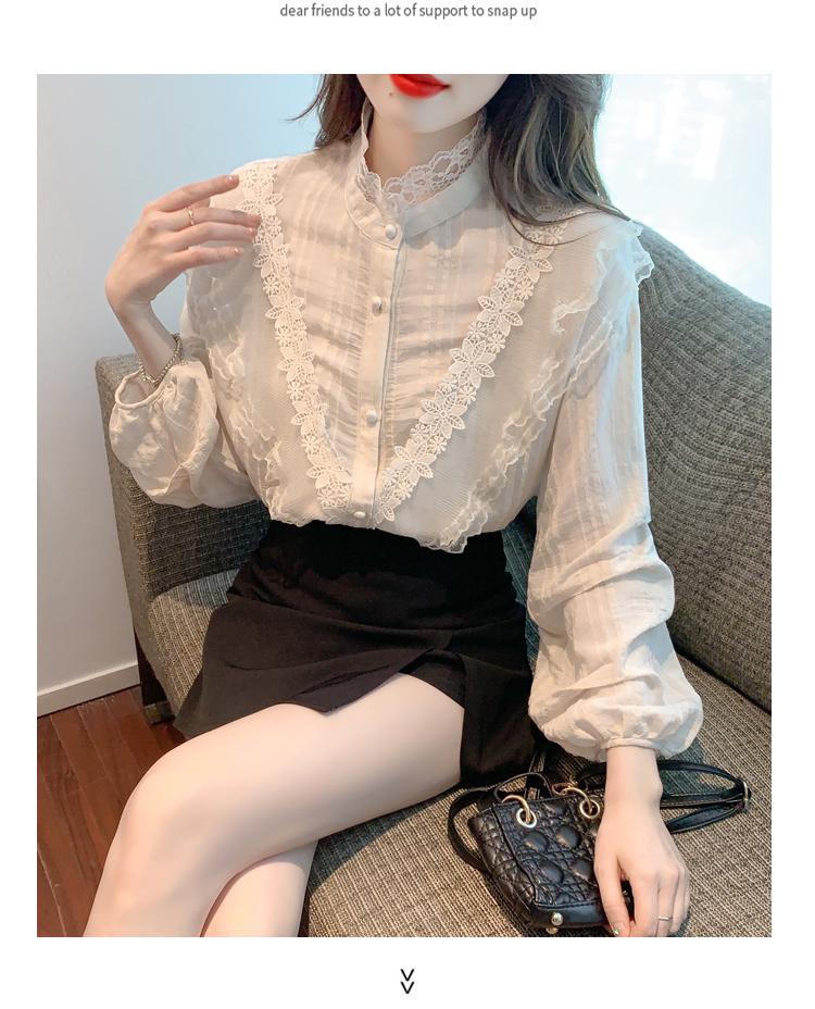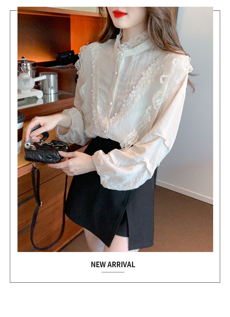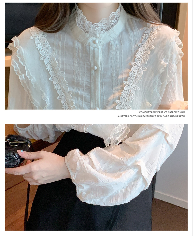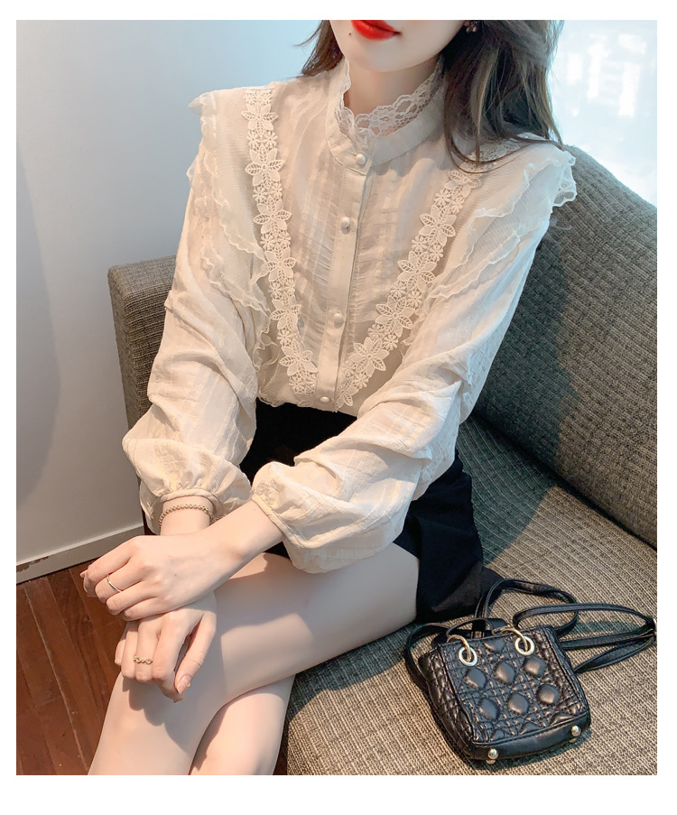 限量特惠|氣質鈎花蕾絲拼接立領雪紡衫(02M2394)