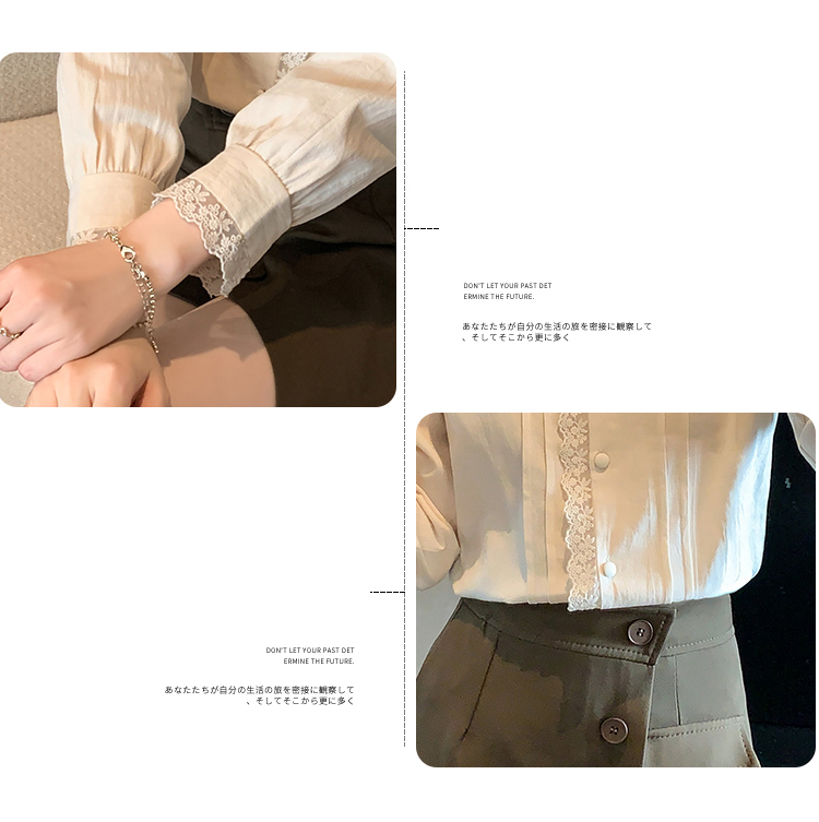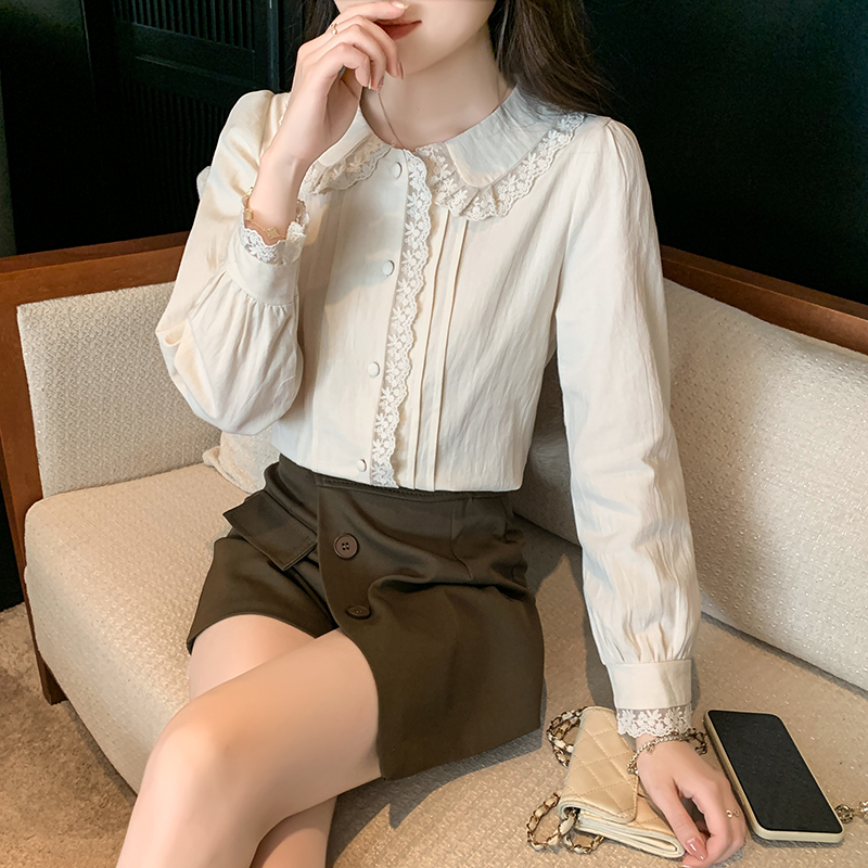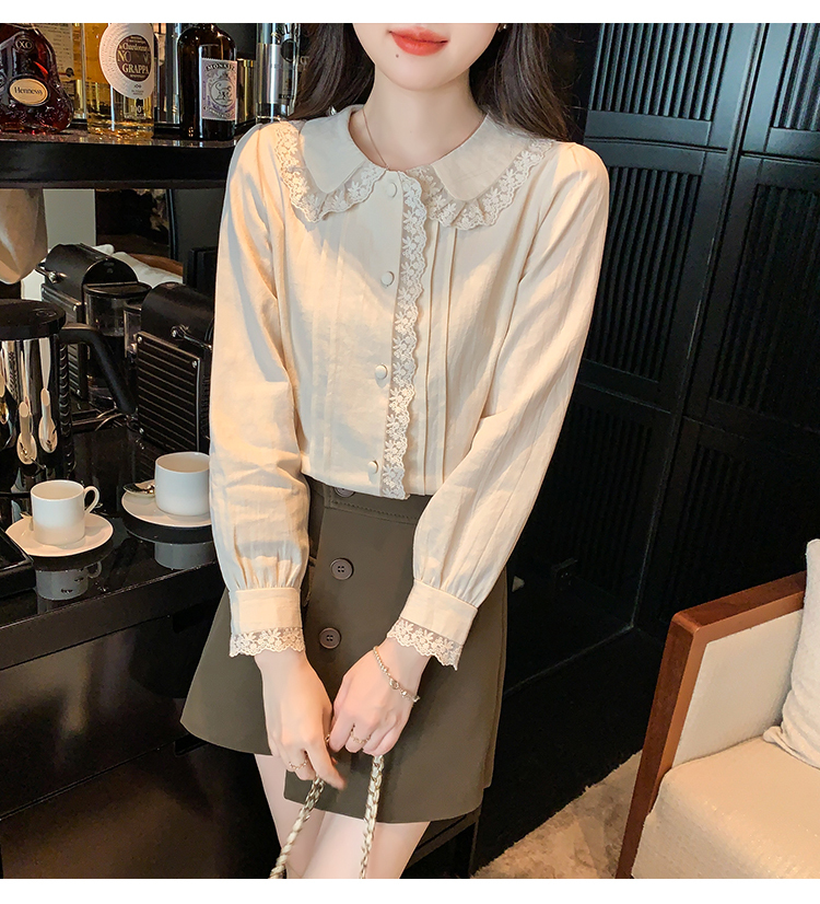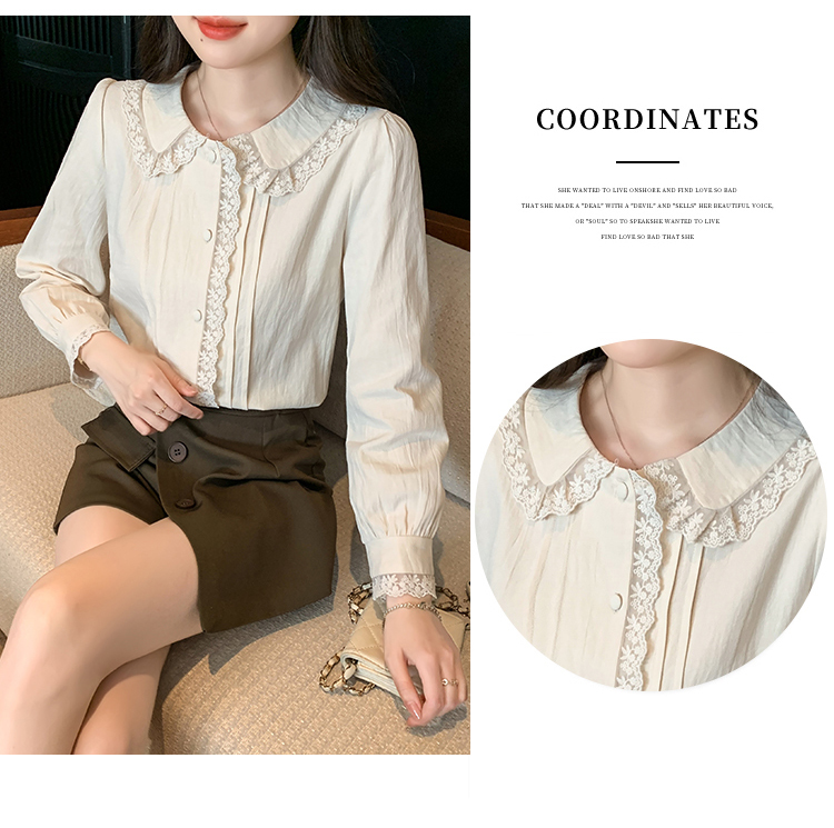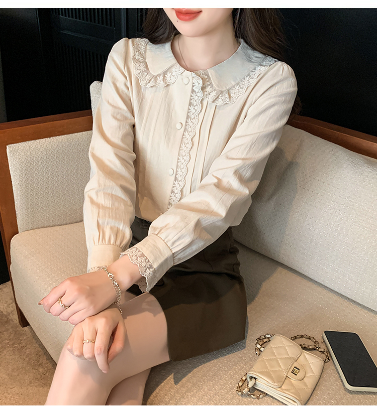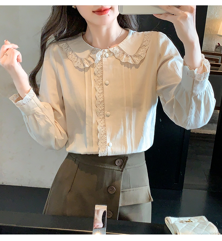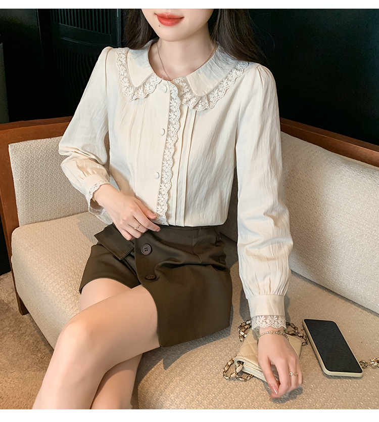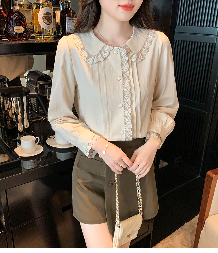 限量特惠|甜美翻領蕾絲花邊褶皺雪紡衫(02M2397)