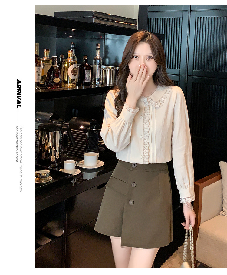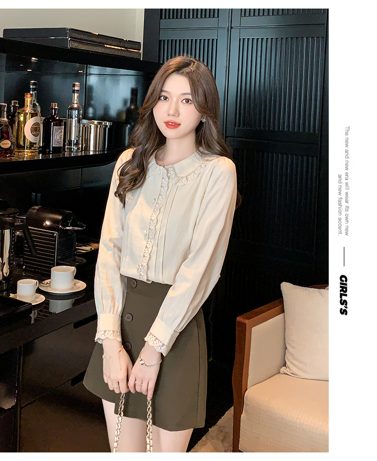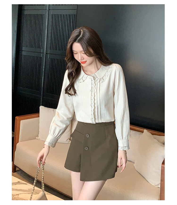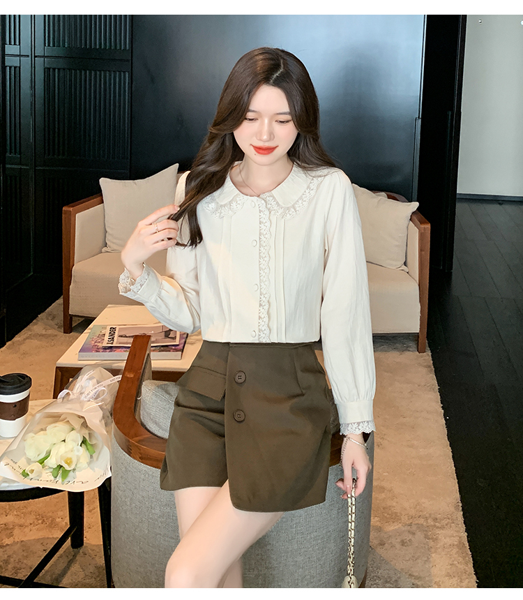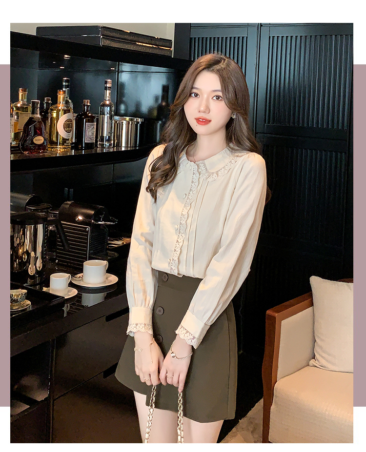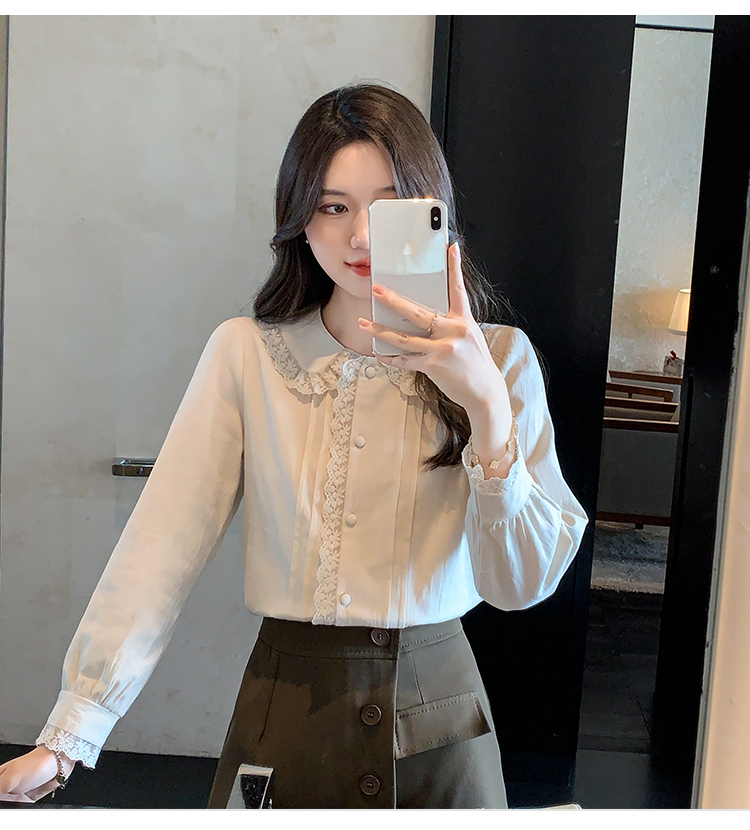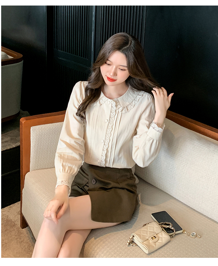 限量特惠|甜美翻領蕾絲花邊褶皺雪紡衫(02M2397)