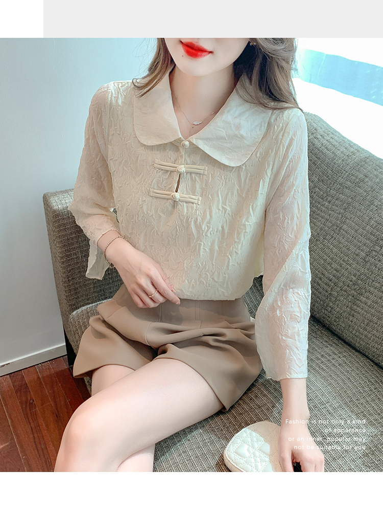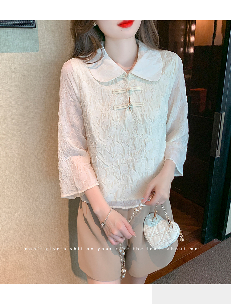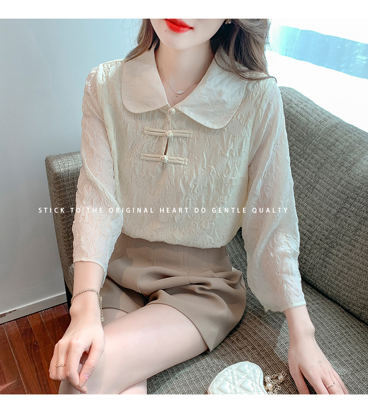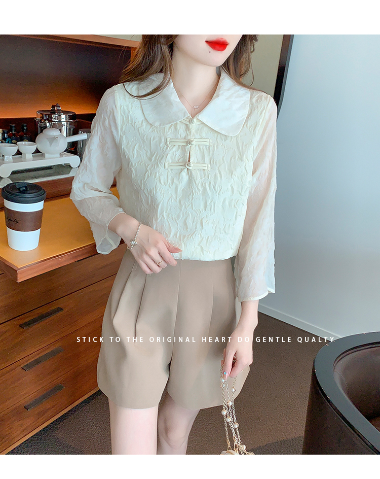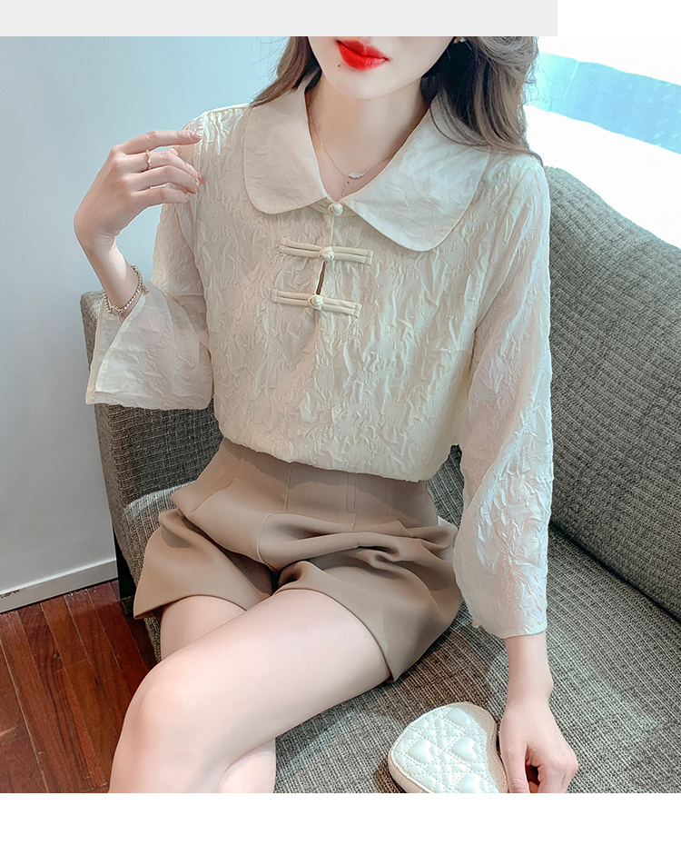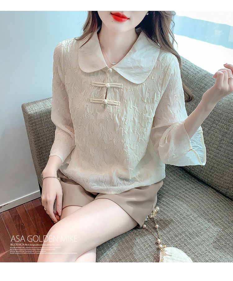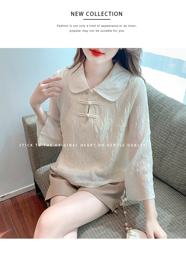 限量特惠|復古盤扣翻領八分袖造型雪紡衫(02M2415)