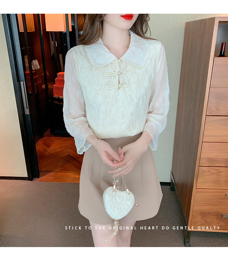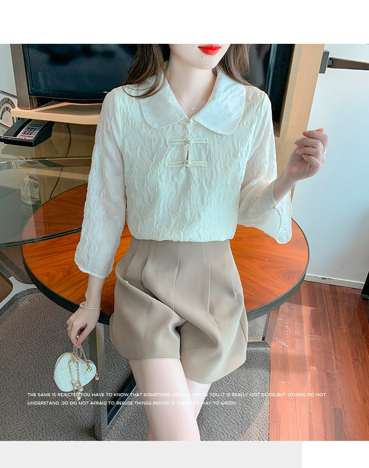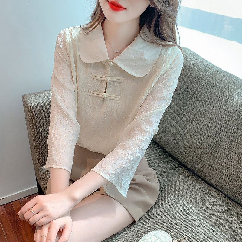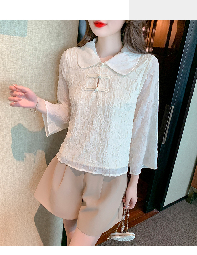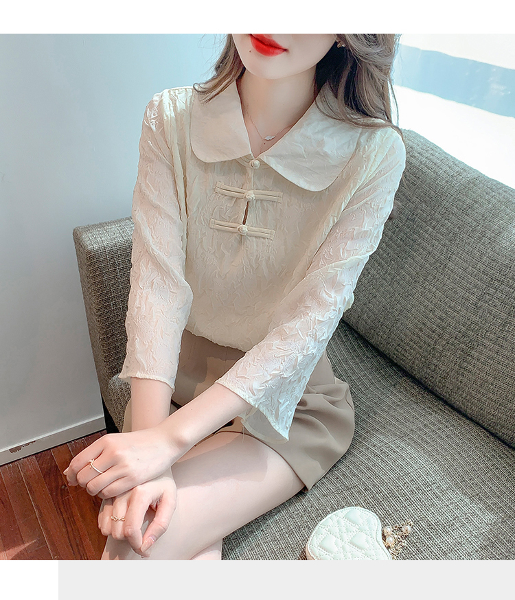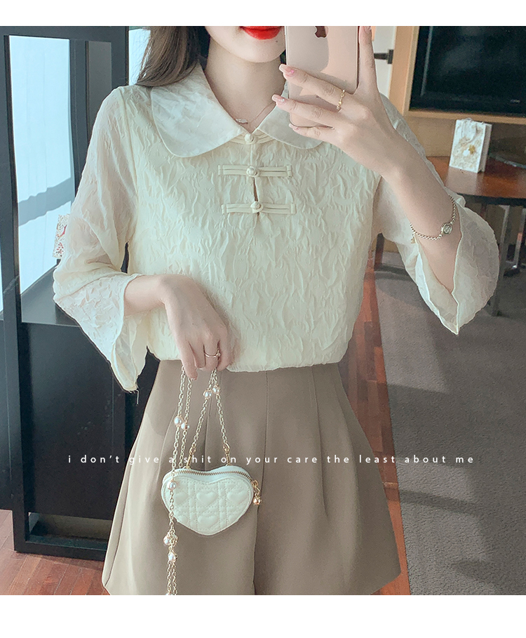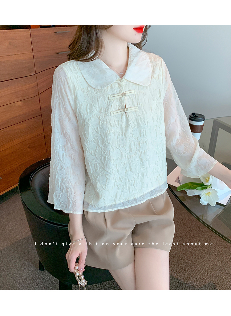 限量特惠|復古盤扣翻領八分袖造型雪紡衫(02M2415)