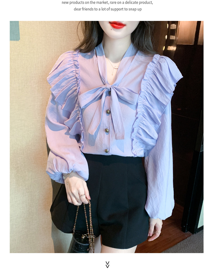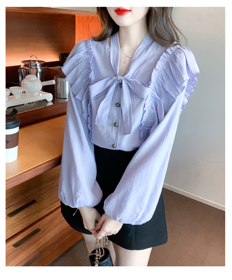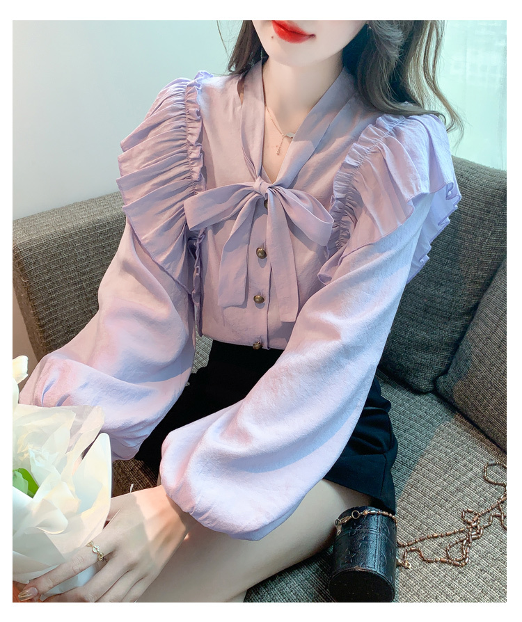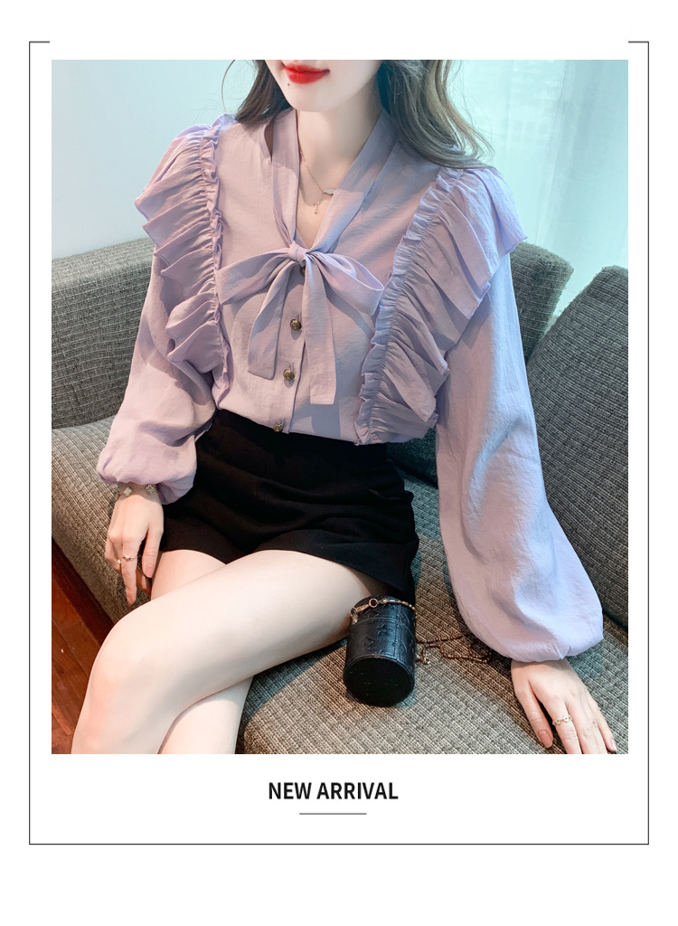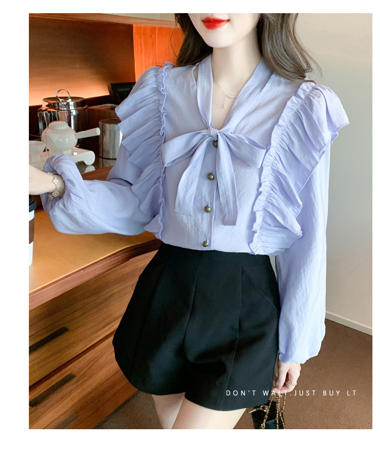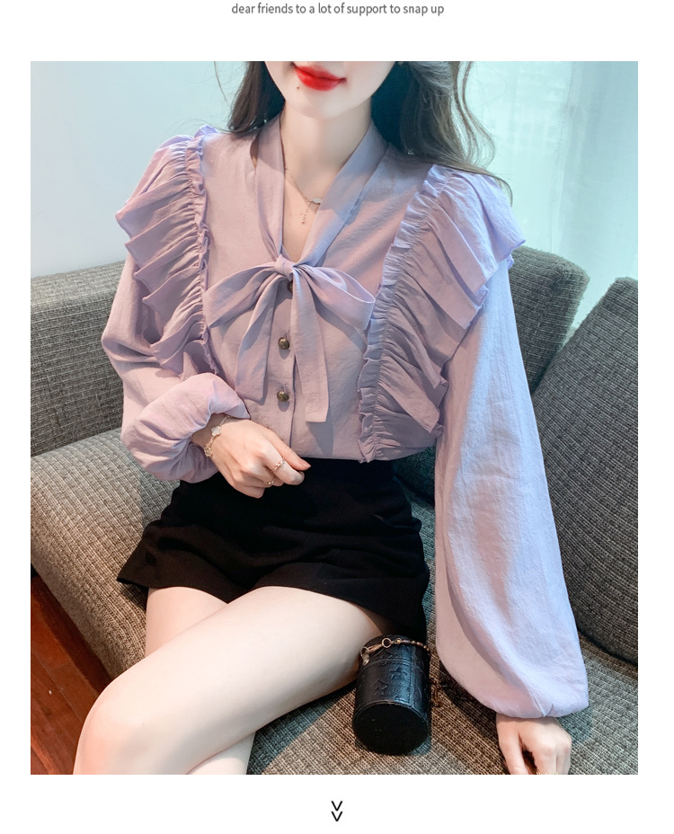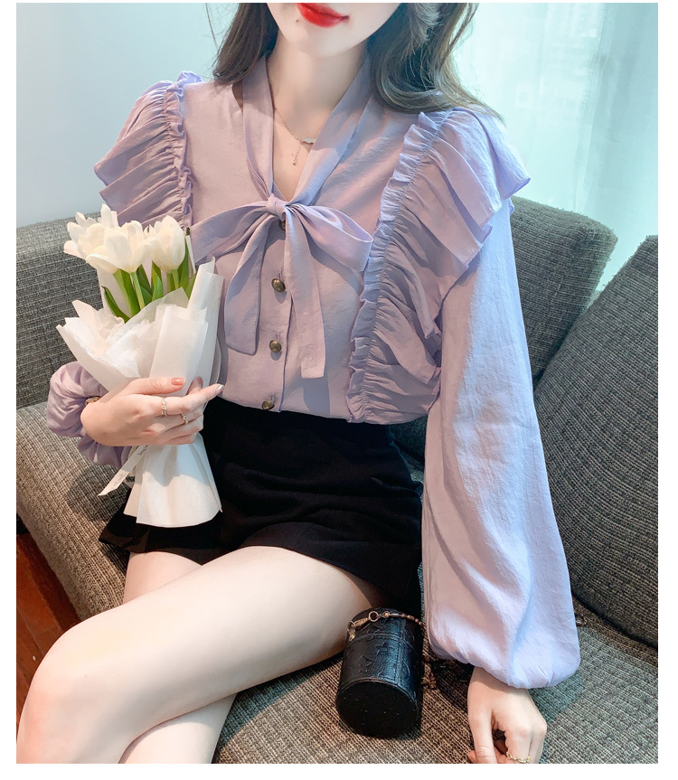 限量特惠|氣質V領繫帶拼接荷葉邊造型雪紡衫(02M2418)