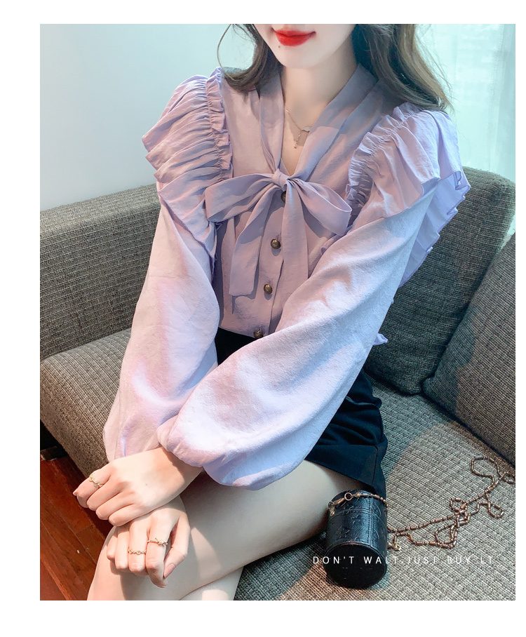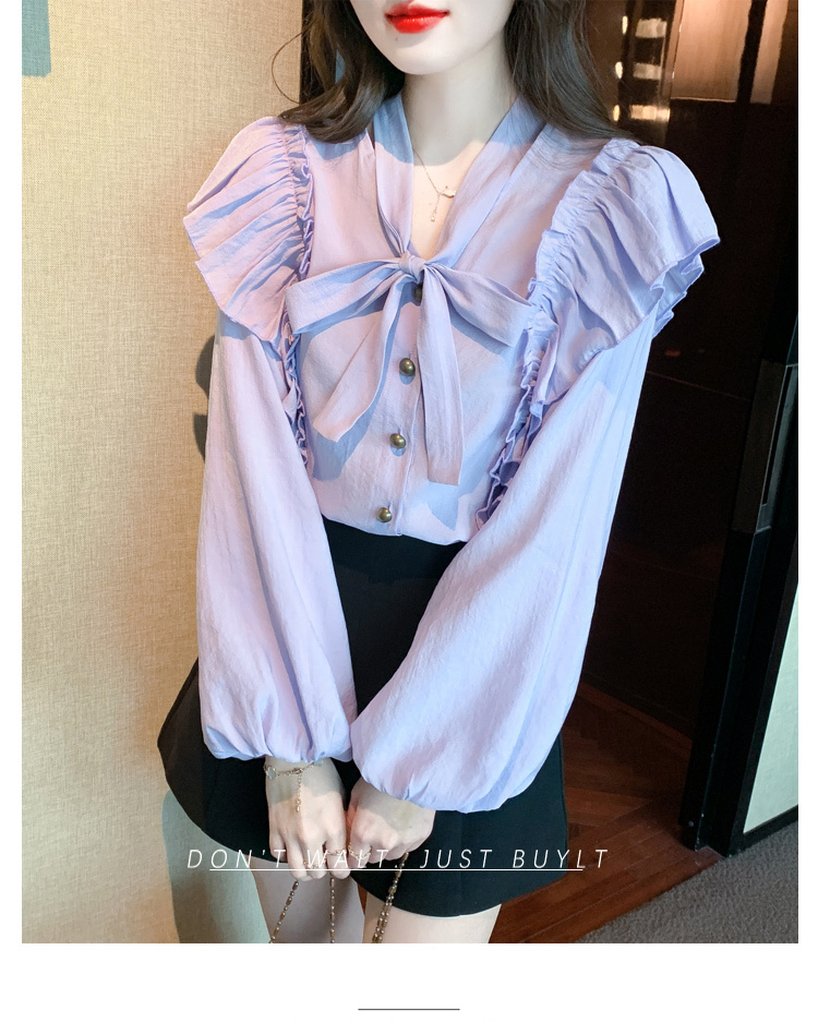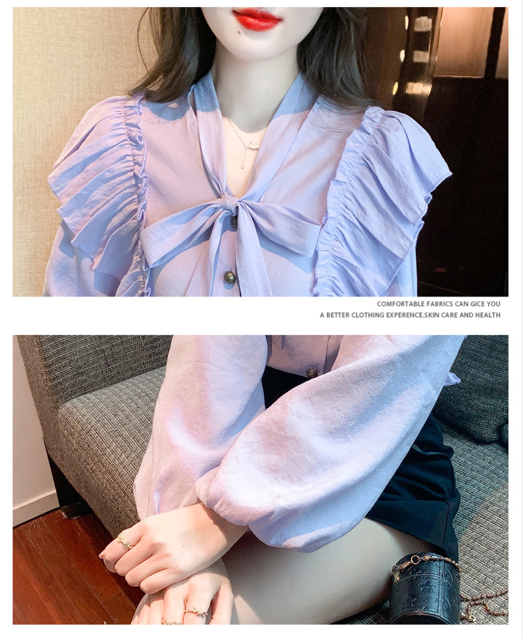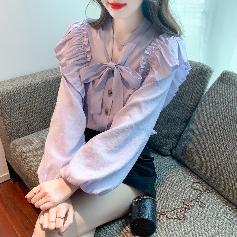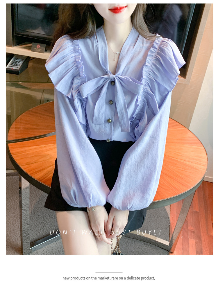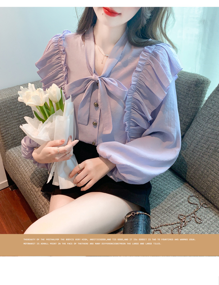 限量特惠|氣質V領繫帶拼接荷葉邊造型雪紡衫(02M2418)