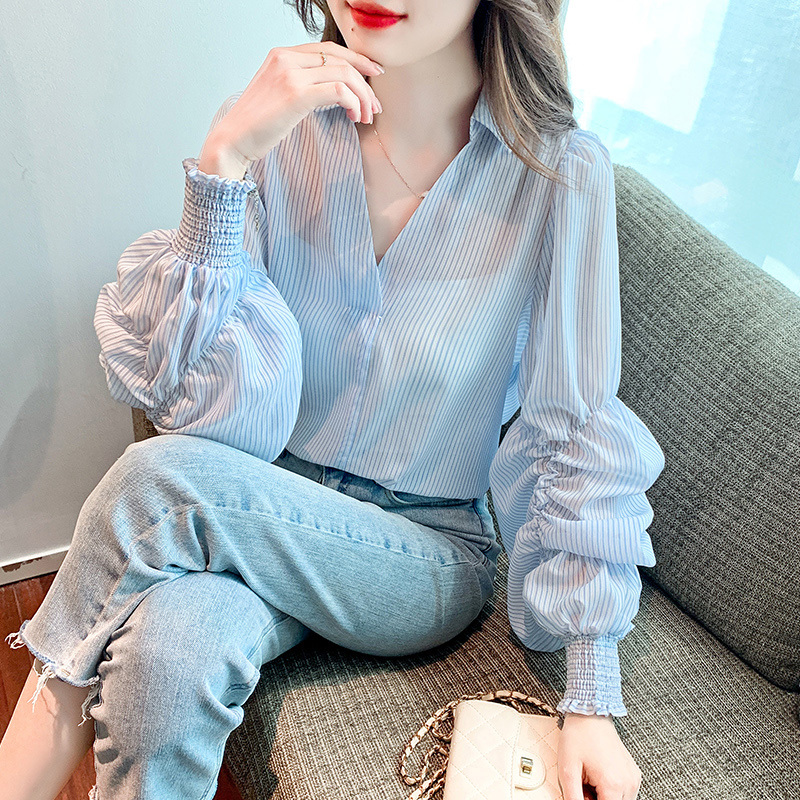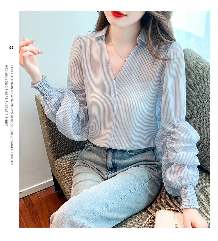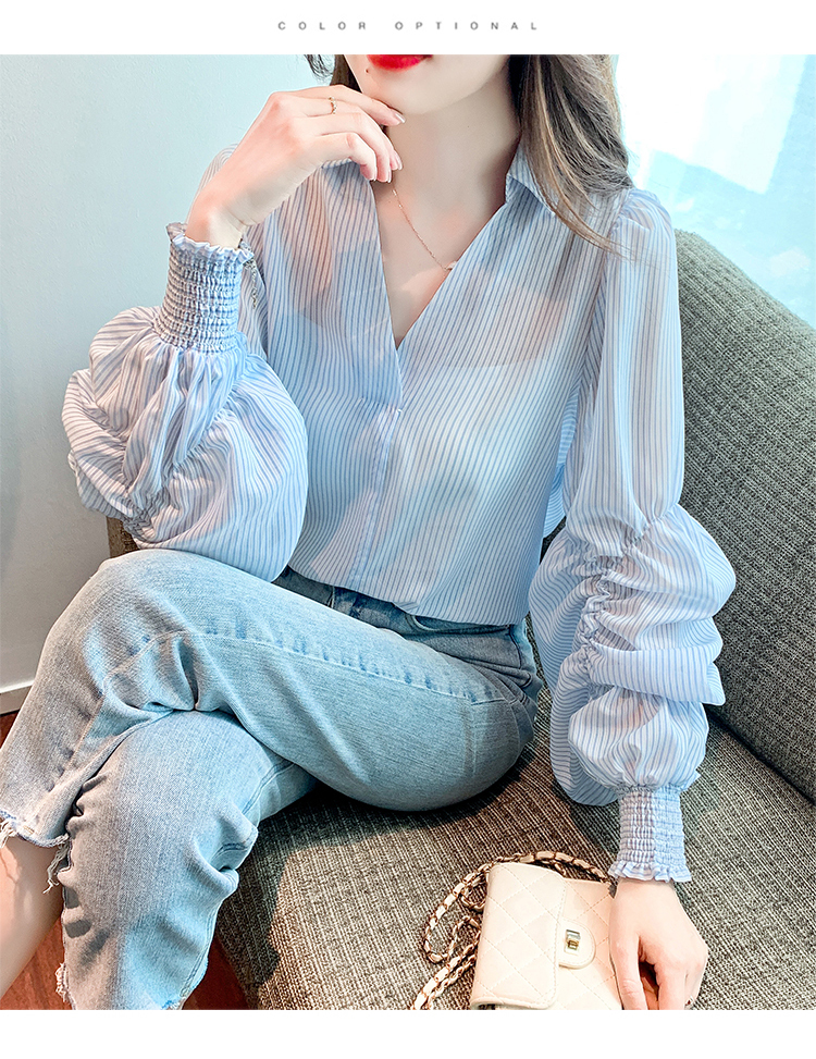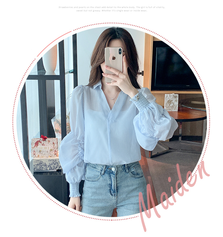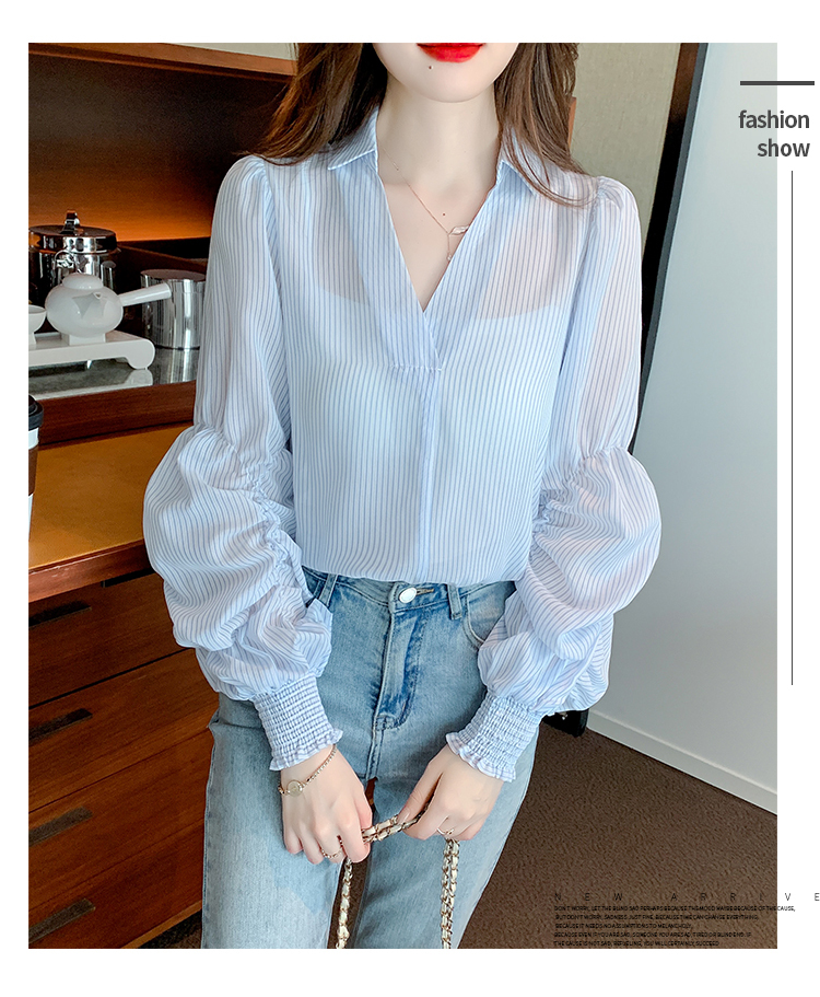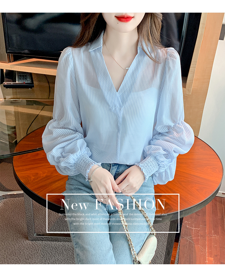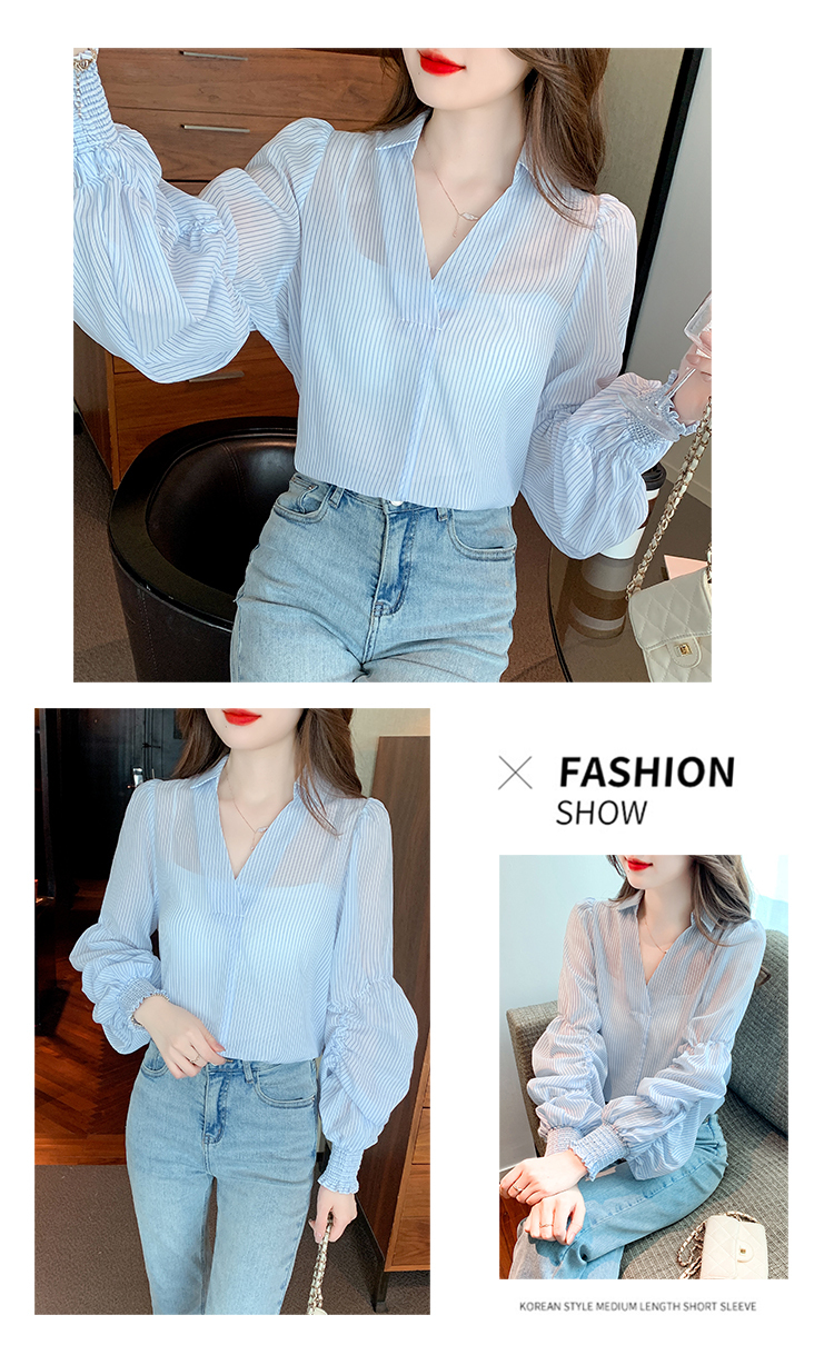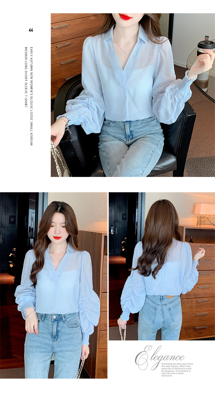 限量特惠|個性翻領抓褶燈籠袖雪紡衫(02M2441)