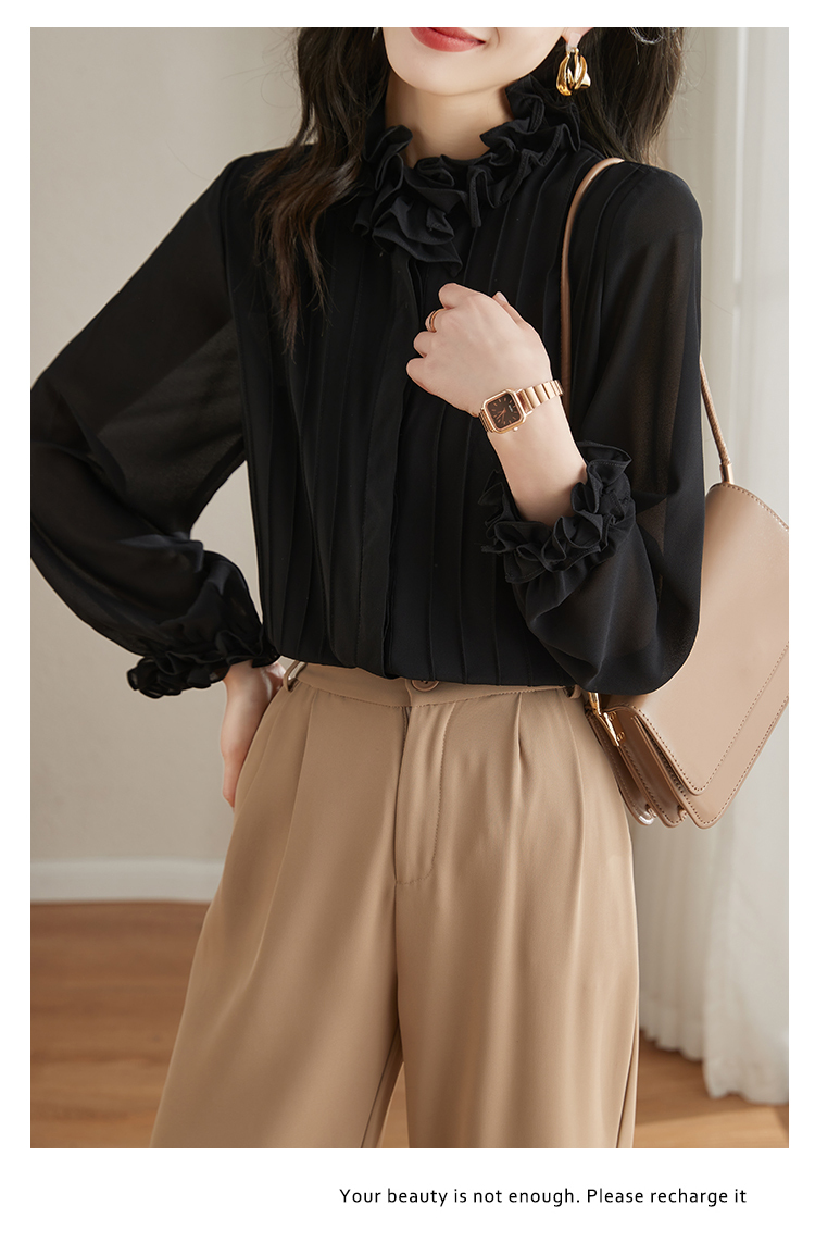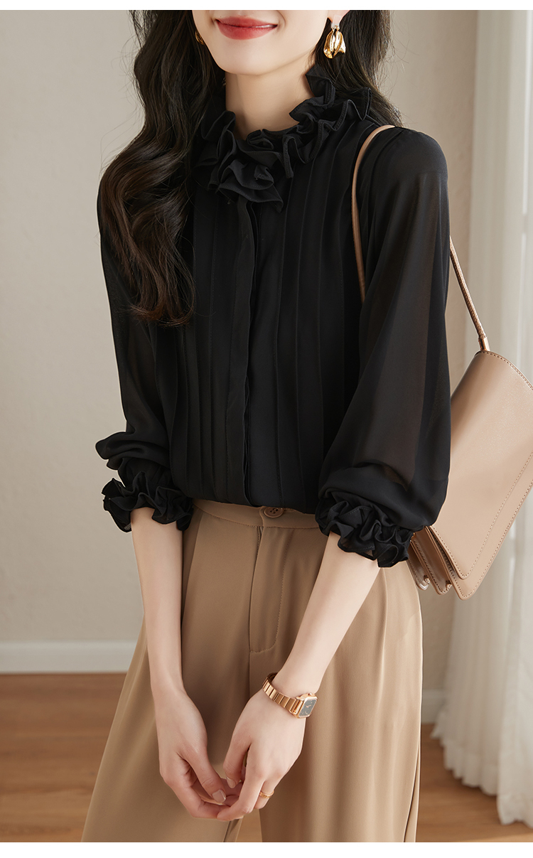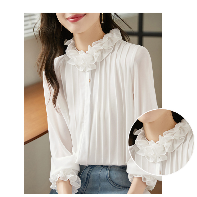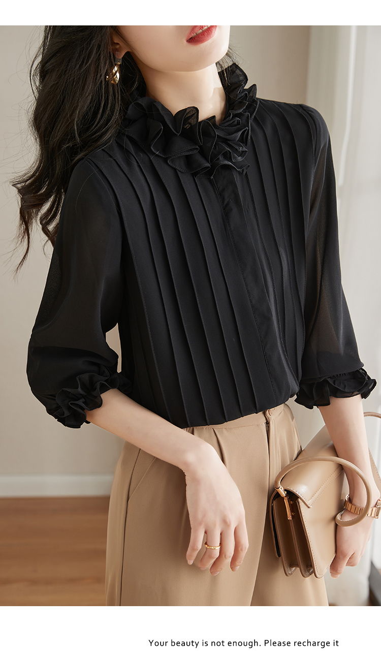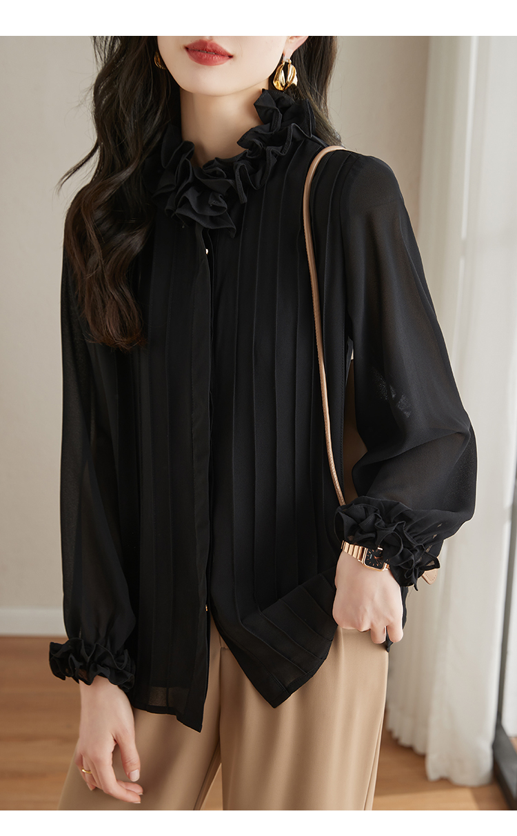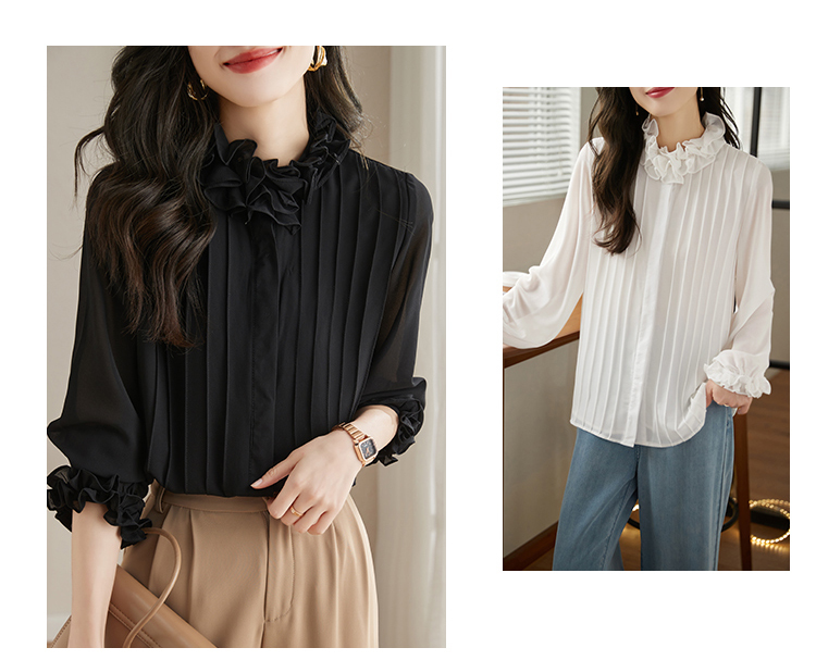 限量特惠|法式木耳邊立領褶皺雪紡衫-2色(02M2444)