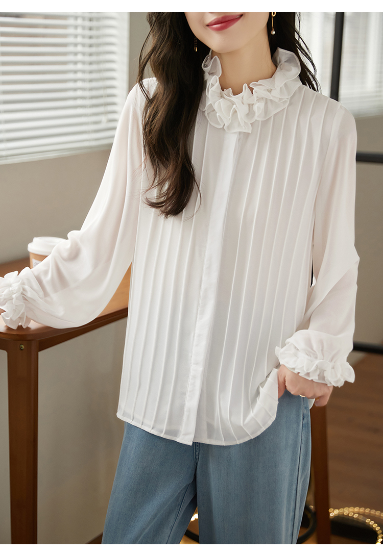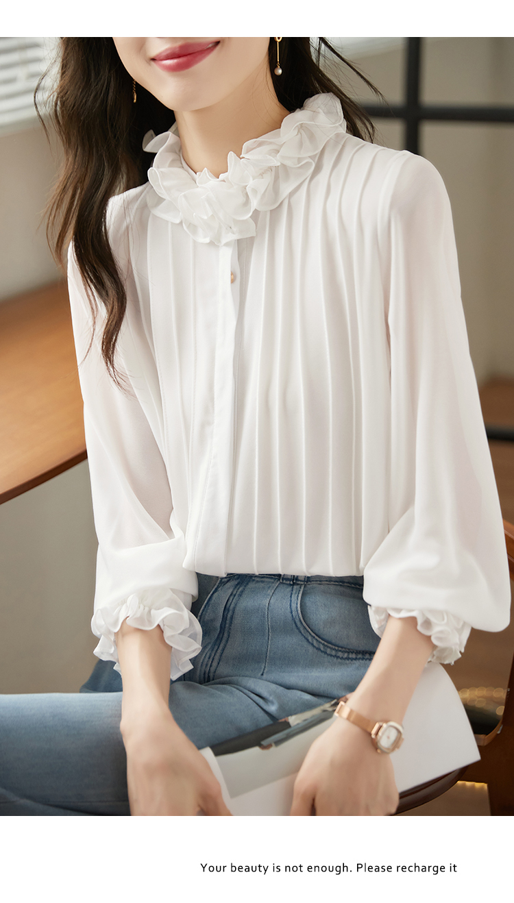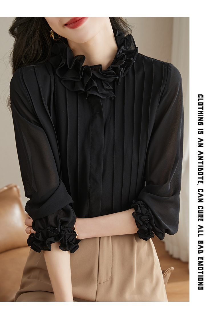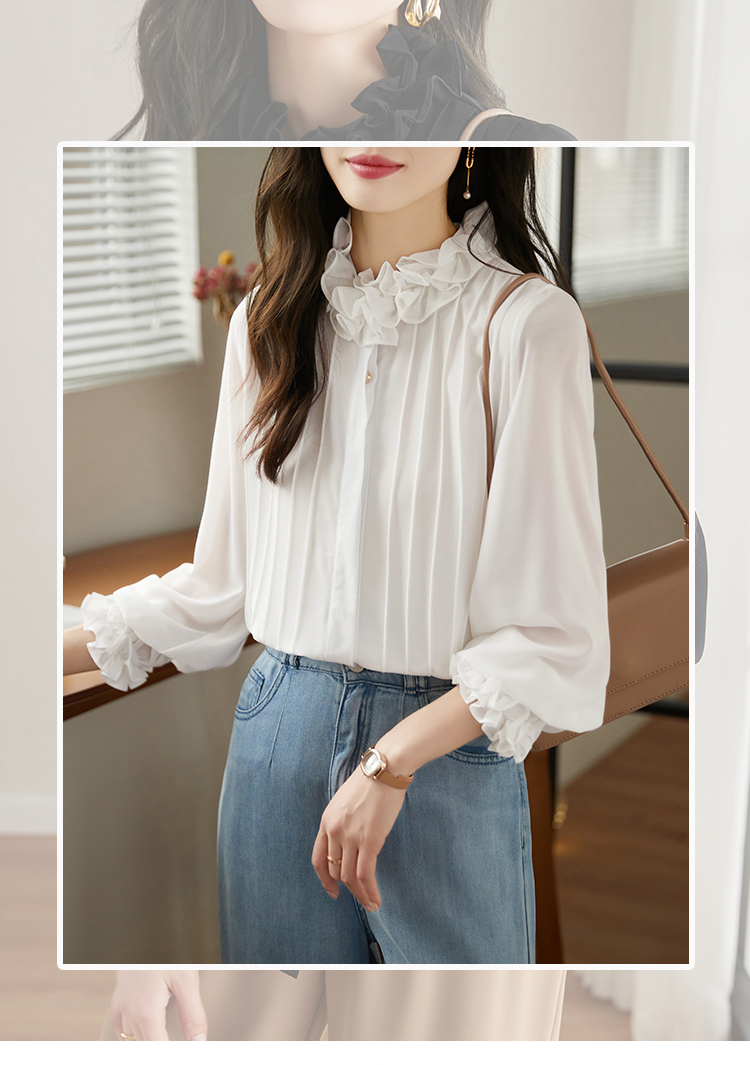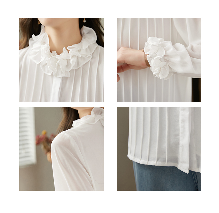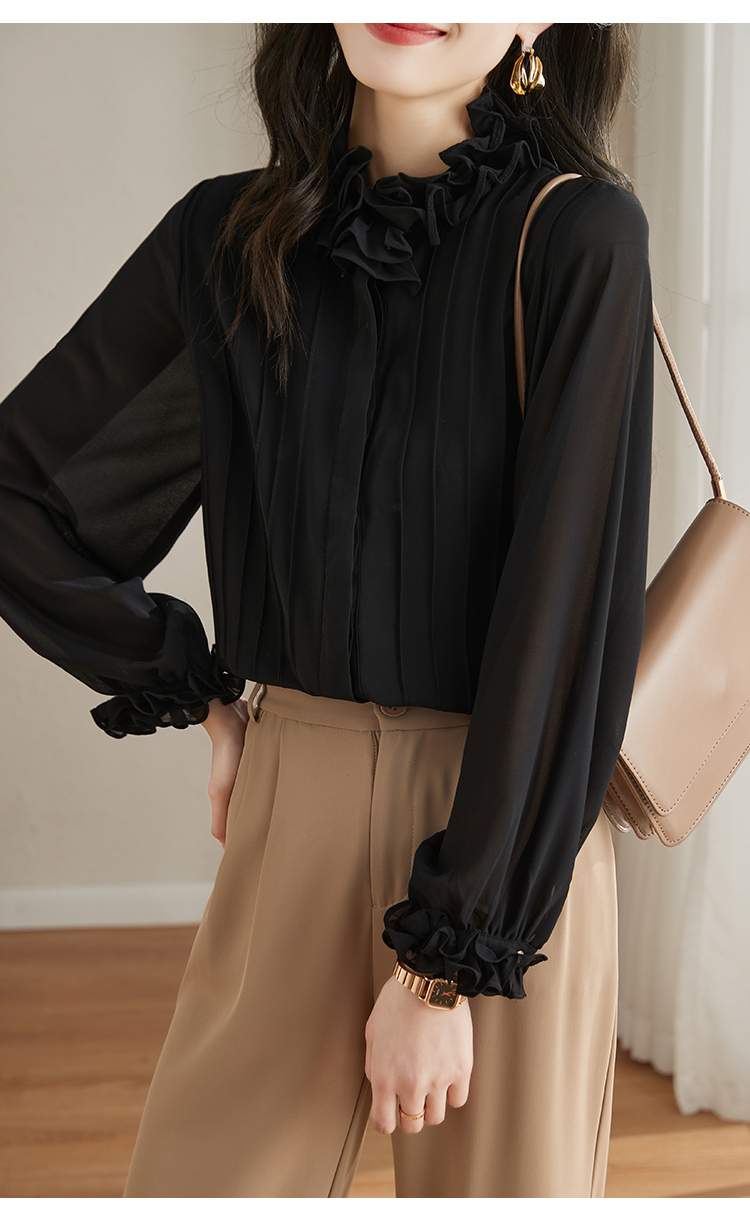 限量特惠|法式木耳邊立領褶皺雪紡衫-2色(02M2444)
