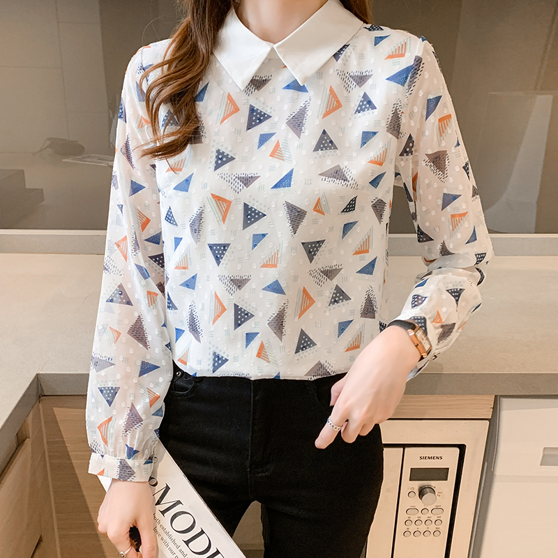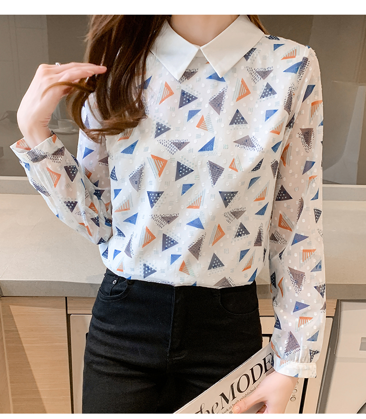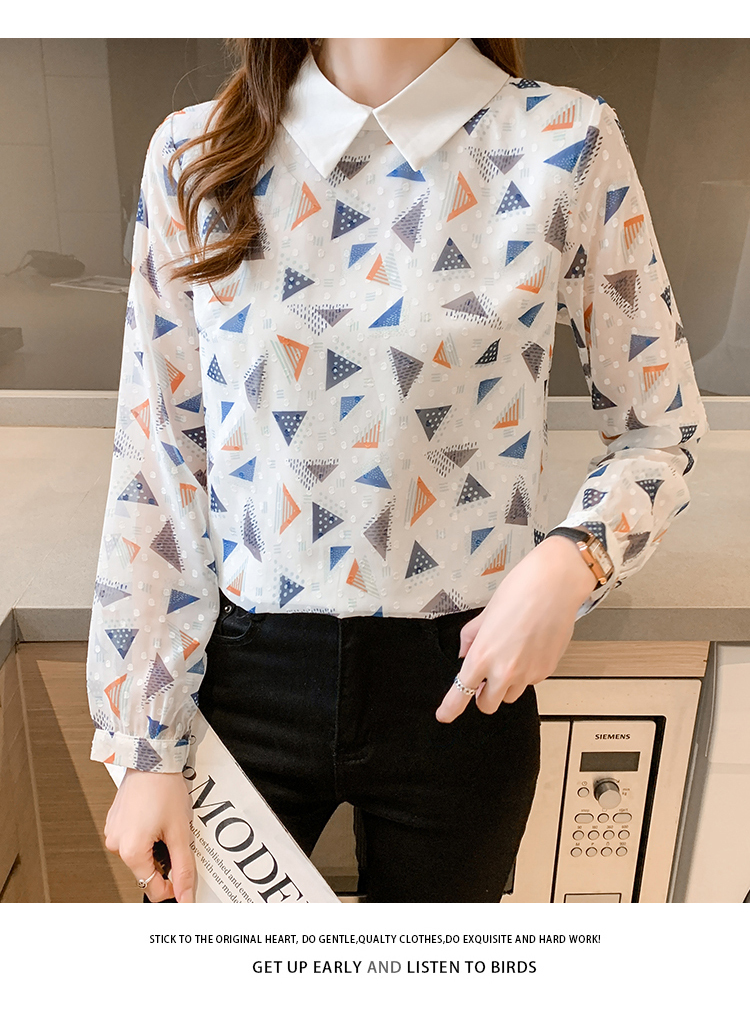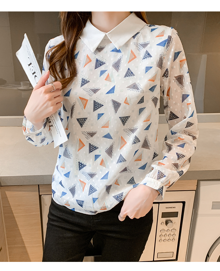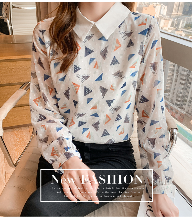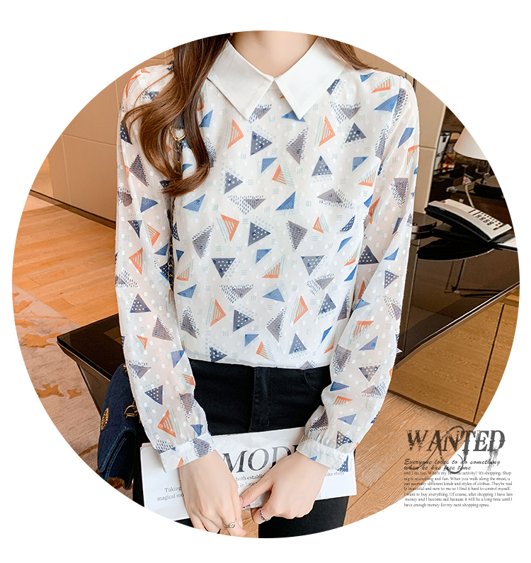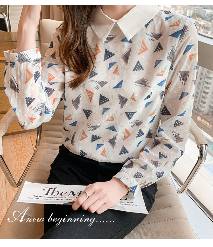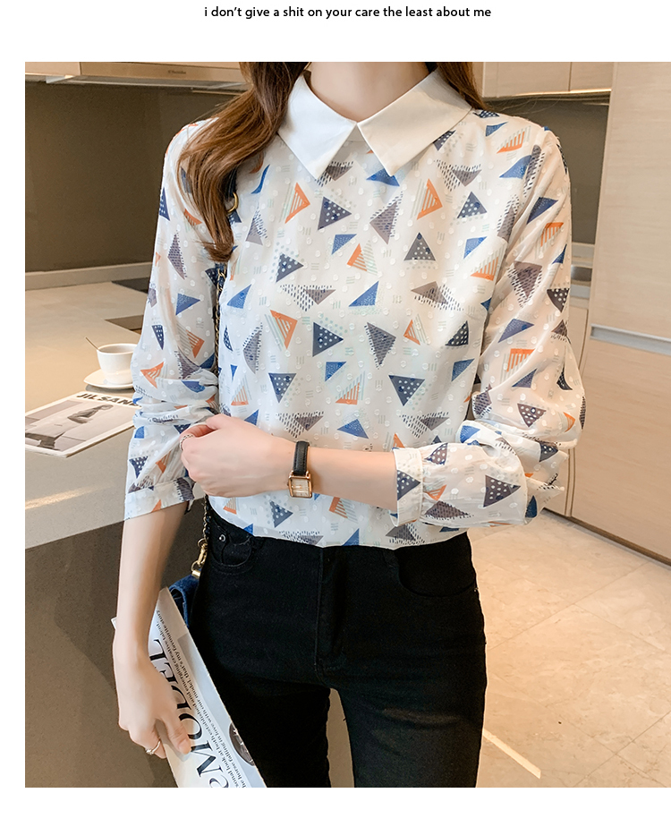 限量特惠|個性幾何印花翻領雪紡衫(02M2465)
