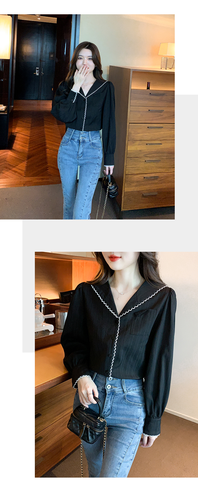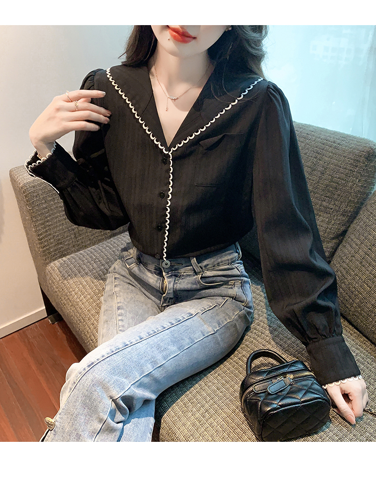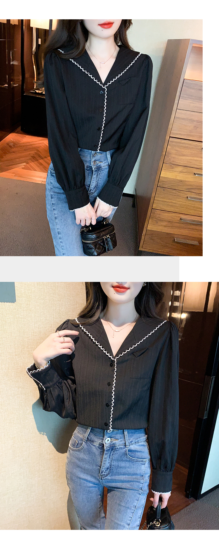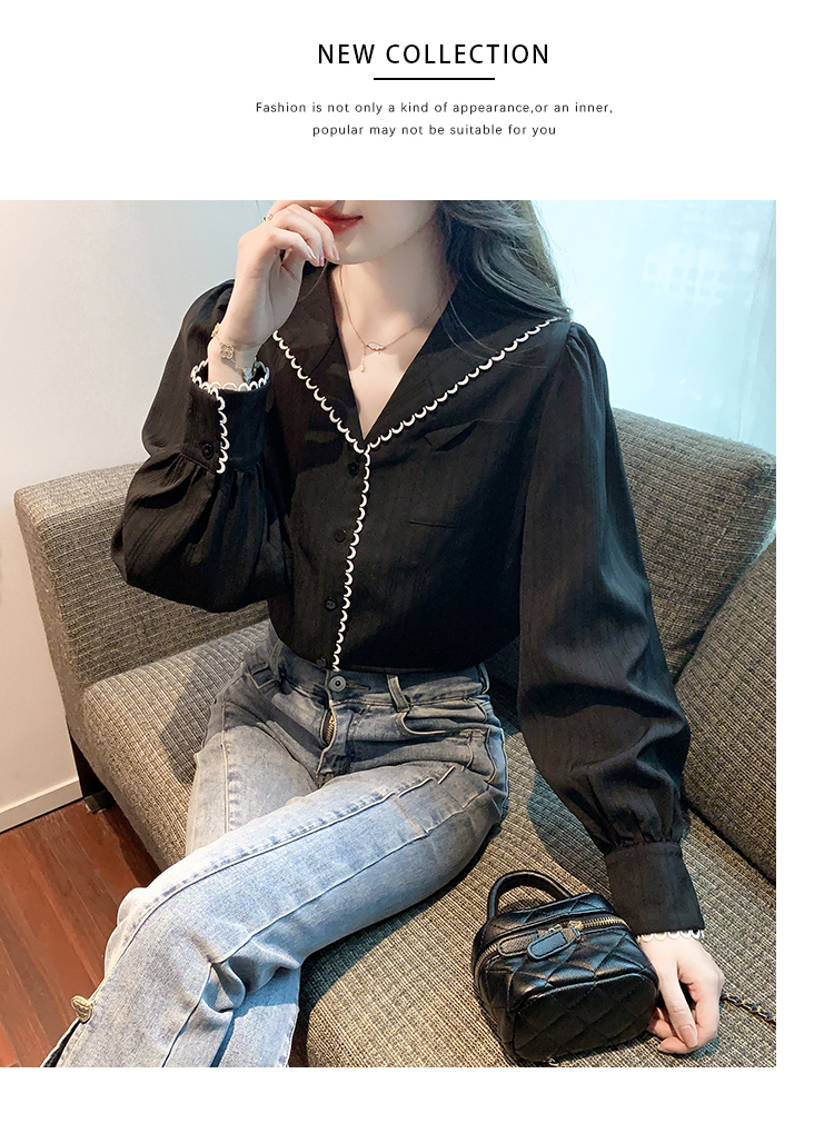 限量特惠|可鹽可甜V領滾邊雪紡衫(02M2469)
