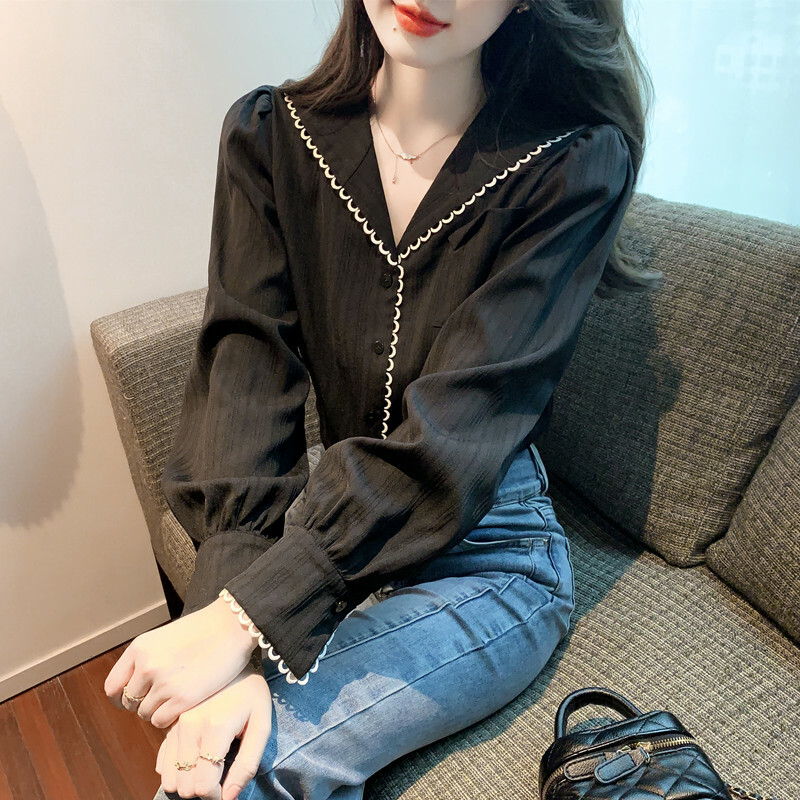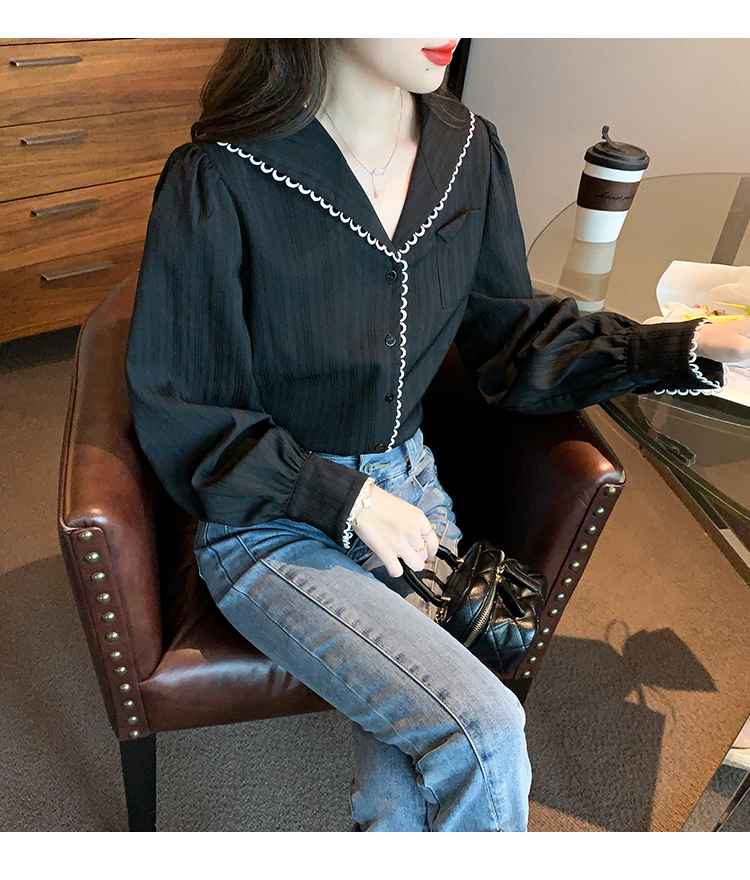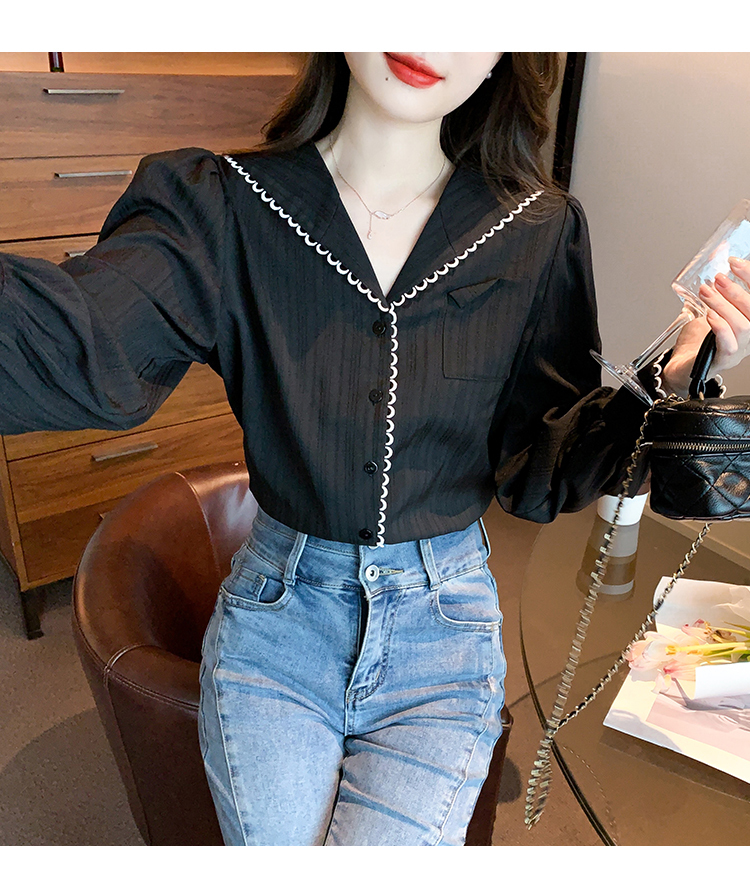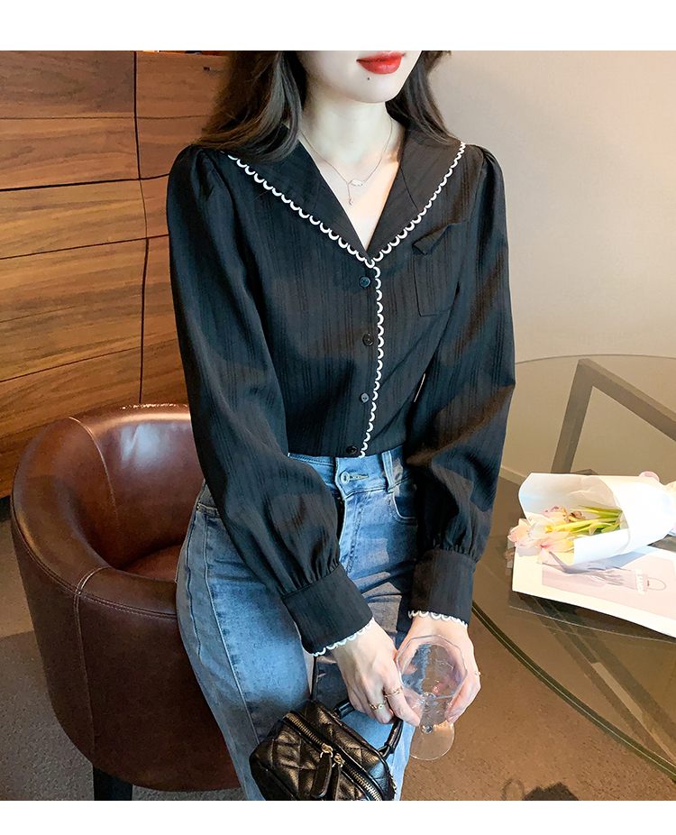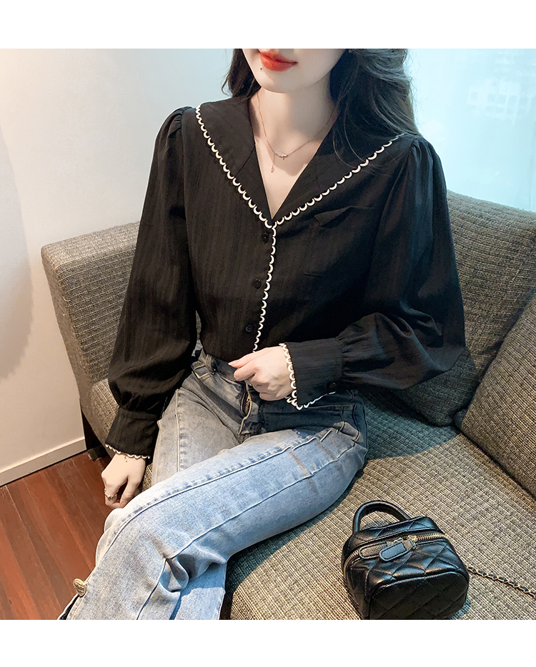 限量特惠|可鹽可甜V領滾邊雪紡衫(02M2469)