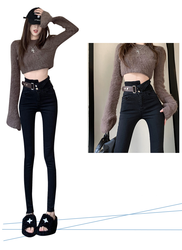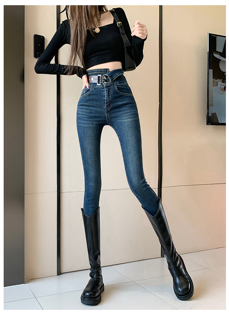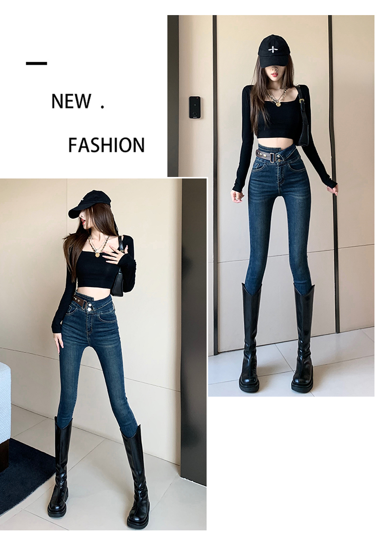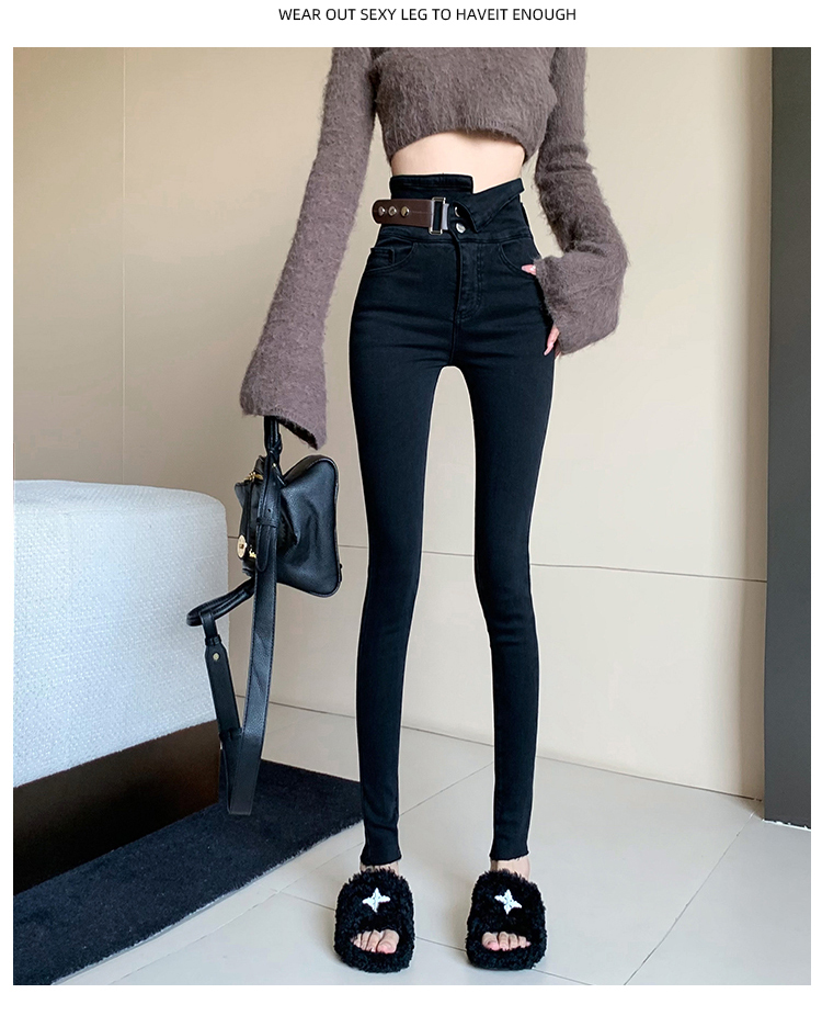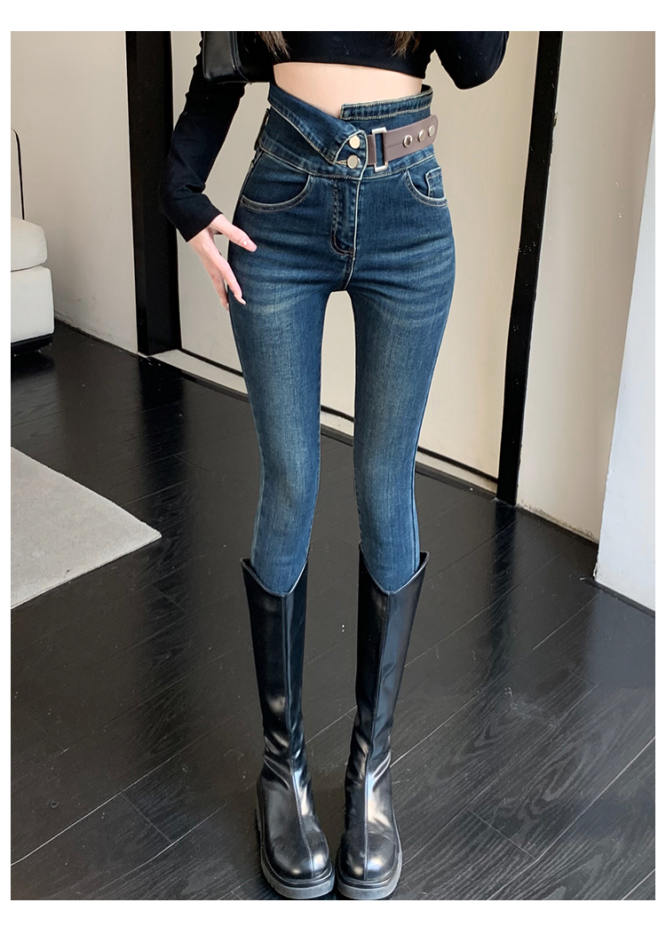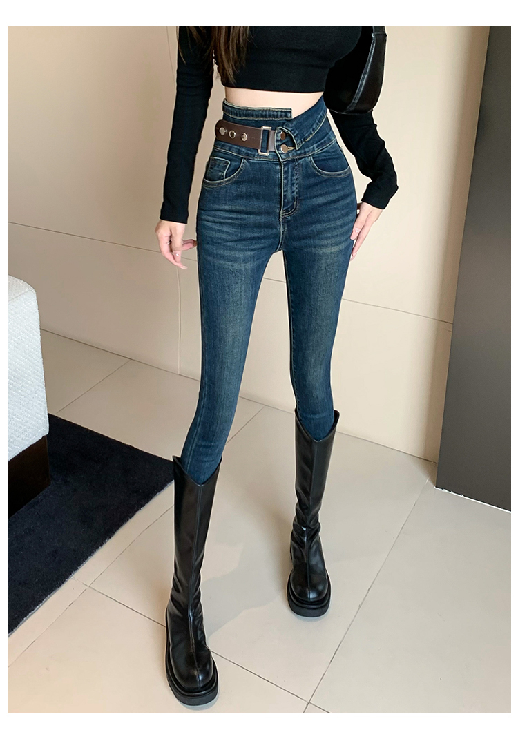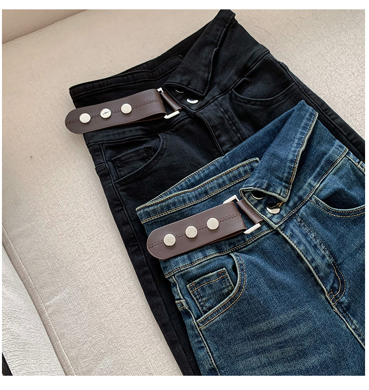 限量特惠|舒適百搭拼接皮帶造型牛仔褲-2色(02M2483)